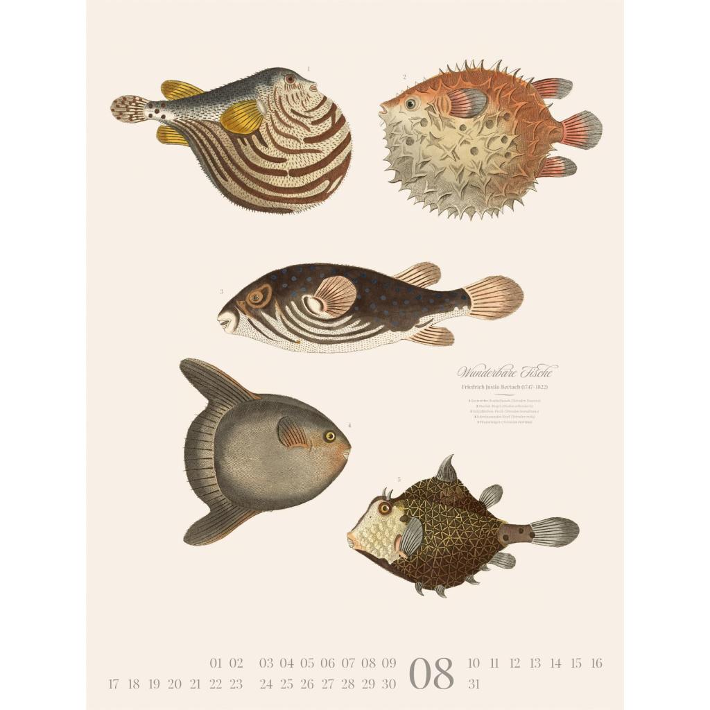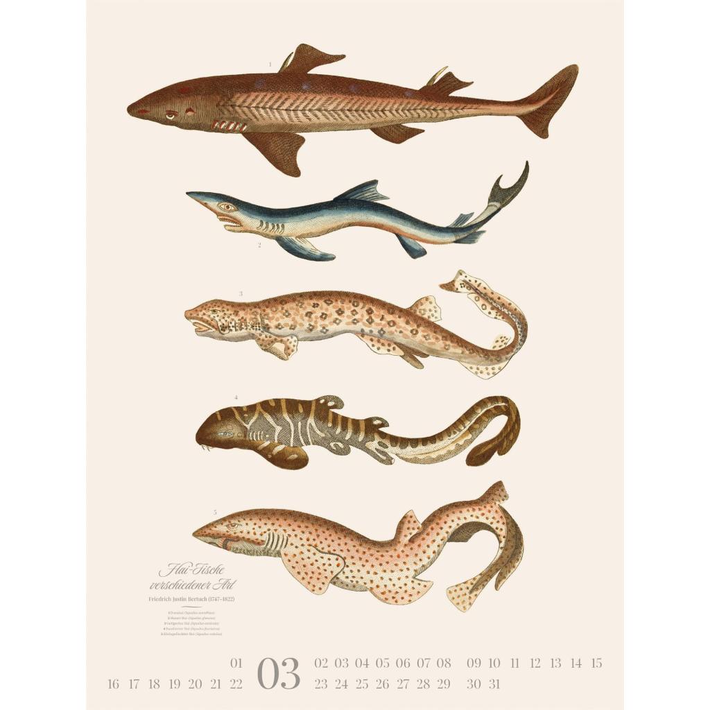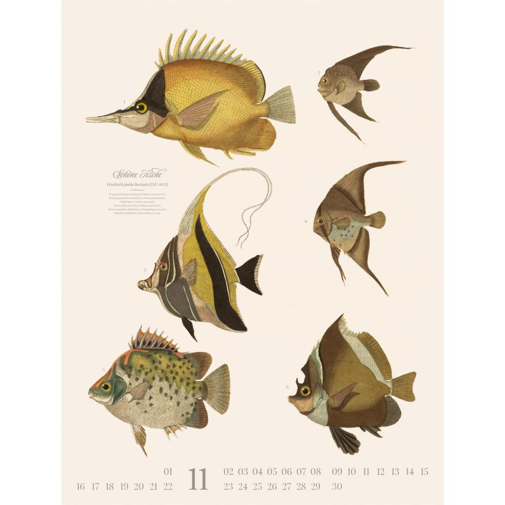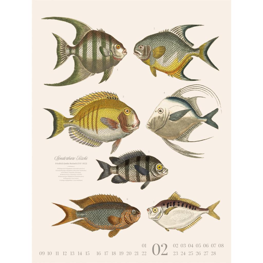 Dekorativer Retro-Kalender im großen Hochformat (50x66 cm) | Historische Tier-Illustrationen von Friedrich Justin Bertuch