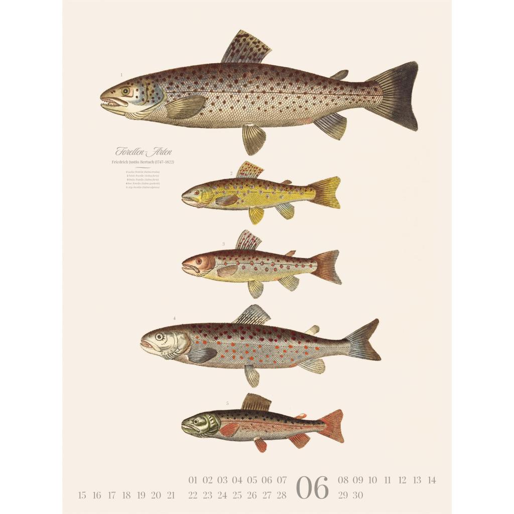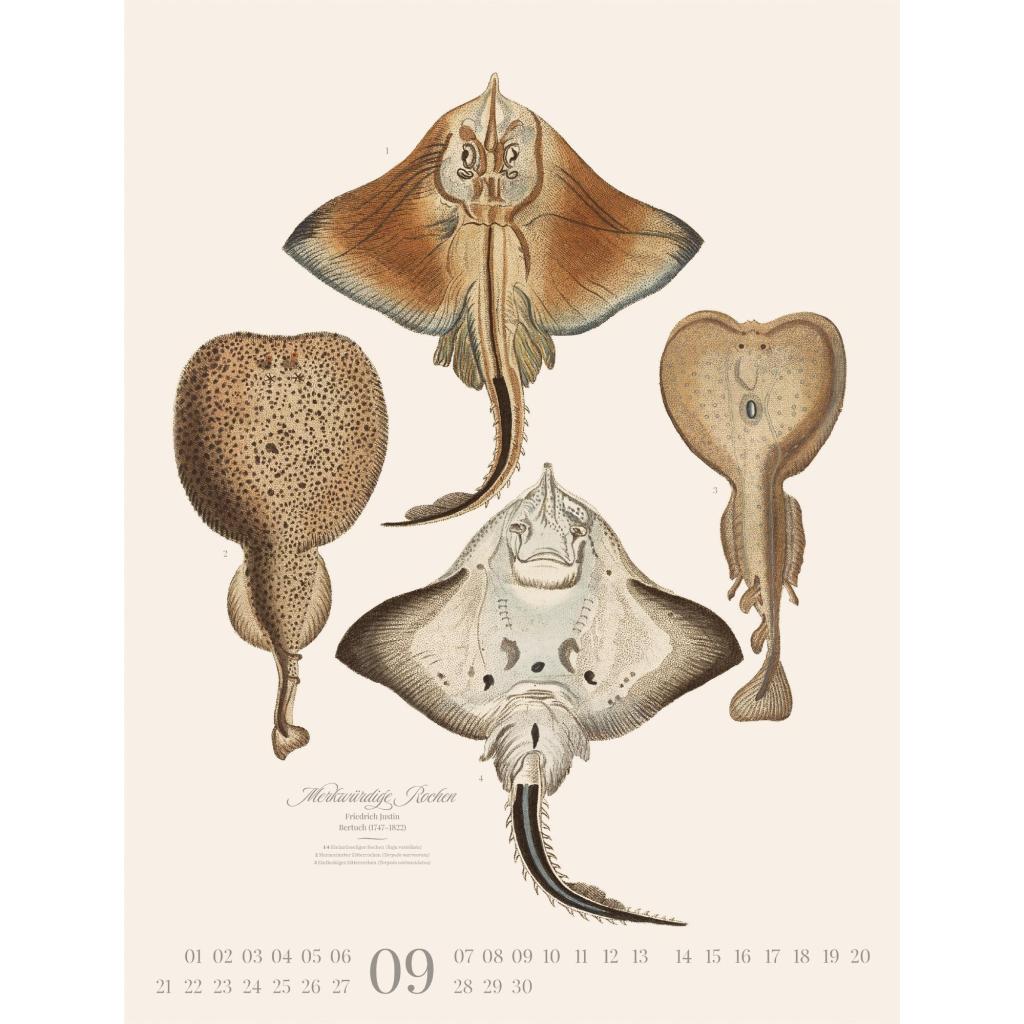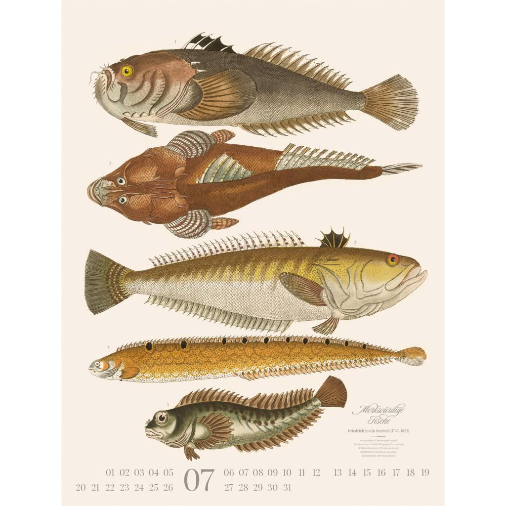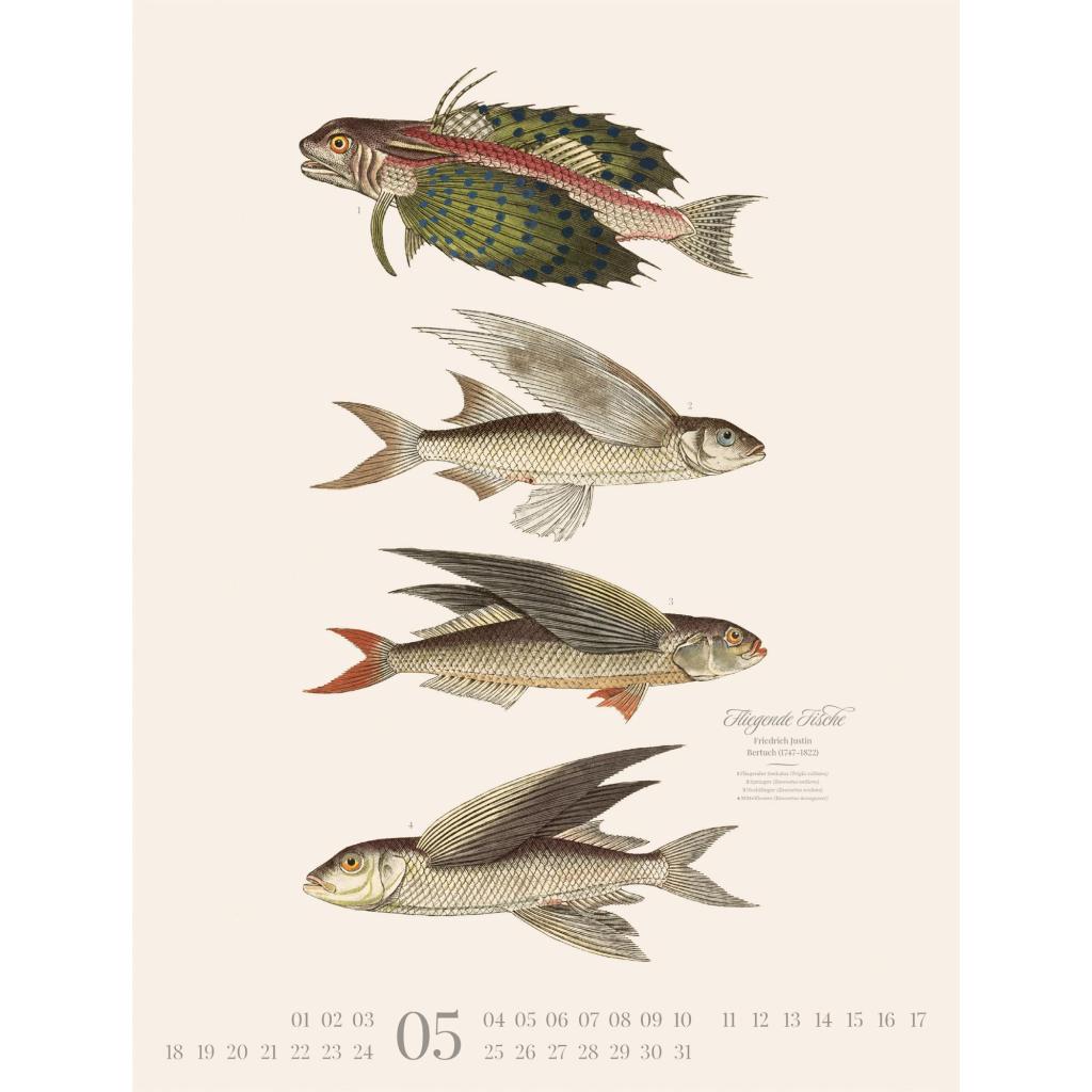 Dekorativer Retro-Kalender im großen Hochformat (50x66 cm) | Historische Tier-Illustrationen von Friedrich Justin Bertuch
