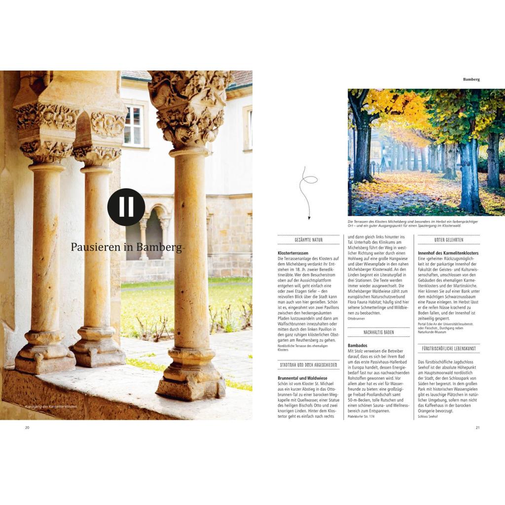 Hamburg, Berlin, München kennst du schon, aber was ist mit Saarbrücken, Lübeck oder Karlsruhe? Mit Regensburg oder Münster? Alle 15 Städte in diesem charmanten Geschenkband sind kleine Wundertüten, denn sie stecken voller Überraschungen. 3 Touren führen dich durch jede Stadt und lassen dich eintauchen in Viertel mit Lokalkolorit, ausruhen in Parks mit Geheimtipcharakter und staunen über spannende Museen, die es auch mit den ganz Großen aufnehmen können. Das ideale Geschenkbuch für alle, die Städtetrips lieben und Neues entdecken wollen! 15 angesagte Städte mit Charakter Sich treiben lassen, schlendern und staunen: Inspirationen für Städtetripps mit Überraschungsgarantie Eintauchen in den verborgenen Charme deutscher Städte in jeweils 3 Touren