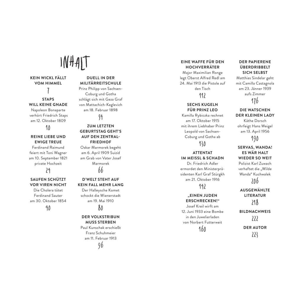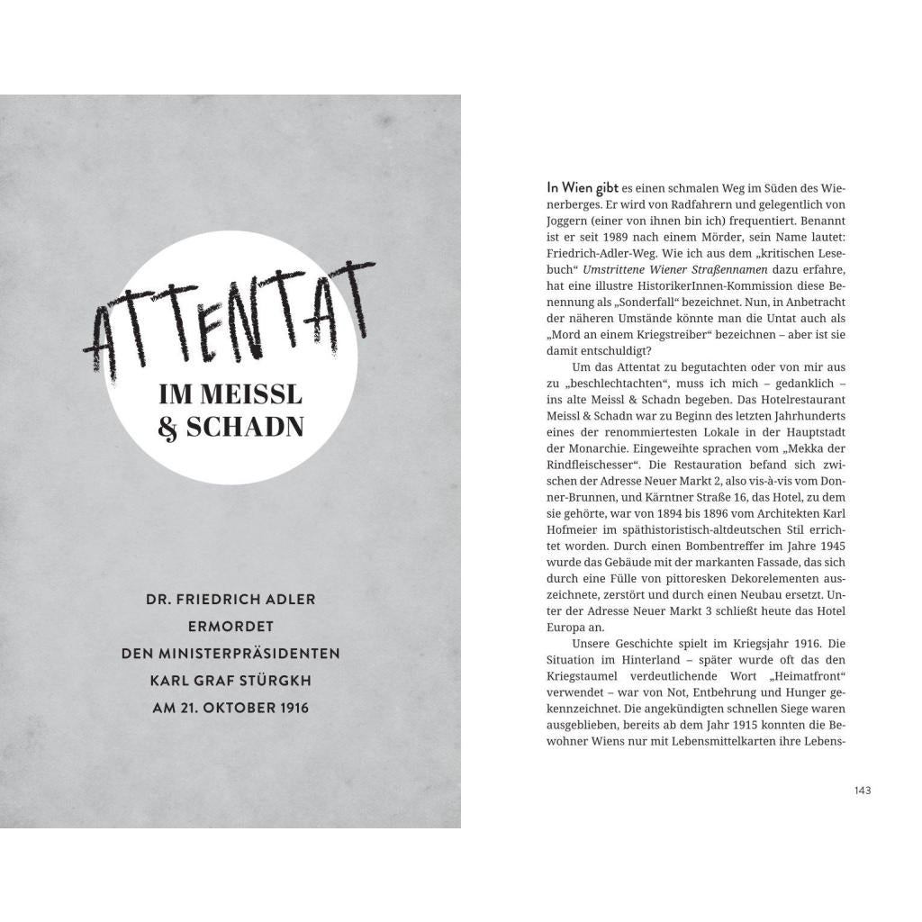 | Keyword: | Attentate; Duelle; Ereignisse in Wien; Geschichten altes Wien; Liebesgeschichten Wien; Raufereien; Streitereien; True Crime Wien; Wien Geschichte; humorvolle Begegnungen in Wien; verhängnisvolle Geschichten; wahre Geschichten aus Wien |