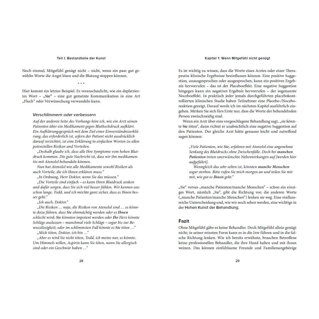 Worte wirken - immer und in jede Richtung: Sie können einen Heilungsverlauf beschleunigen oder eine Symptomverschlechterung verursachen. Wenn Angehörige von Gesundheitsberufen also wüssten, dass es nicht nur darauf ankommt, was sie sagen, sondern auch, wie sie es sagen, könnten sie in ganz besonderem Maße zu Genesung und Gesundheit ihrer Patientinnen und Patienten beitragen. Der erfahrene Notfallmediziner Dr. Steve Bierman hat genau so eine Methode entwickelt und mit ihr in langjähriger praktischer Anwendung erstaunliche Erfolge erzielt: Für die "Hohe Kunst der Behandlung" nutzt er Elemente aus Hypnose und NLP, darunter spezielle Sprachmuster, Suggestionen und therapeutische Metaphern, er macht sich Placebo- und Nocebo-Effekte zunutze, erklärt, warum statistische Informationen aus Studien nicht zwangsläufig auf den individuellen Patienten zutreffen, und liefert zahlreiche Fallbeispiele, die illustrieren und verstehen helfen, wie wirkmächtig Sprache und Kommunikation sind. Und seine hypnotherapeutische Wortwahl sorgt für erstaunliche Ergebnisse: Wunden bluten weniger stark, Herzrhythmusstörungen normalisieren sich schneller, verengte Atemwege erweitern sich. Was nach Wunderheilung klingt, ist tatsächlich nur eine andere Art der Kommunikation, die sich auf positive Weise suggestive Elemente zunutze macht, um den Patienten Zugang zu ihren Selbstheilungskräften zu ermöglichen. Menschen, die in Heilberufen tätig sind, verleiht diese besondere Form der Kommunikation neue Impulse für ihre tägliche Arbeit - und davon profitieren die Patientinnen und Patienten, weil sie schneller und nachhaltiger gesund werden.