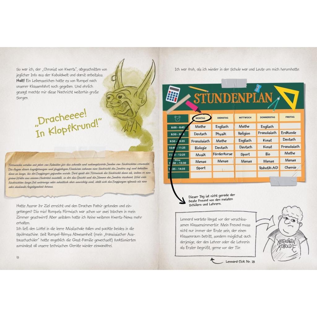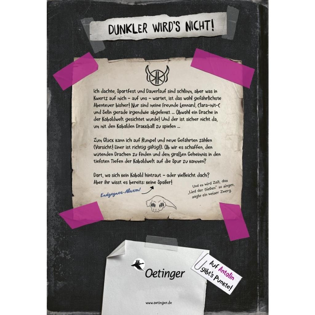 Die neue große Kwest in Kwertz Die Klassenfahrt ist vorbei, doch erholt ist niemand: Dario leidet unter den vielen Klassenarbeiten, das alljährliche Sportfest der Schule steht an und dann ist auch noch die Kreide alle! Immerhin sind die Gefährten aus dem "Lied der Sieben" fast vollzählig - nur ein noch unbekannter Held muss gefunden werden. Doch die Gruppe ist gespalten und auch Rumpel hängt lieber in Klopfkrund ab ... Also machen Dario und Lennard sich allein auf nach Kwertz: Dario will den Drachen Fafnir finden, bevor dieser in Blendheim ankommt und alle in Gefahr bringt, und Lennard forscht nach dem Ursprung der Stimme in seinem Kopf. Sie ahnen nicht, dass ihnen ein unerwarteter Feind folgt ... KoboldKroniken 4. Drachenjagd im Dunkeln: Band 4 der erfolgreichen Kinderbuch-Reihe Koboldstark: Ein fantastisches Abenteuer im Tagebuchstil mit vielen tollen Illustrationen sorgt für monstermäßigen Lesespaß bei Kindern ab 9 Jahren. Leseförderung leicht gemacht: Die kurzen Texthäppchen sind ideal für Kinder, die nicht so viel lesen wollen oder können. Spannende Abenteuer: Die KoboldKroniken verbinden die Themen Freundschaft, Schule, Games, Social Media und Fantasy. Ein geniales Leseerlebnis: Von Daniel Bleckmann im trendigen Tagebuchstil geschrieben und von Thomas Hussung ("Das kleine böse Buch") cool illustriert. Die KoboldKroniken sind witzige Bücher im Tagebuchstil mit wenig Text und coolen Illustrationen für Kinder ab 9 Jahren. Die Geschichten verbinden Lieblingsthemen wie Schule, Monster und Gaming mit Fantasy. Für alle Fans dieser interaktiven Bücher gibt es eine große KoboldKroniken-Welt mit vielen tollen Produkten wie Beschäftigungsbücher, Exit-Abenteuer, Spiele und Adventskalender.