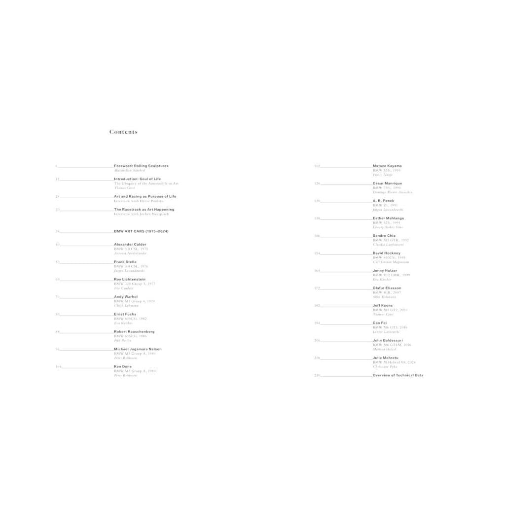 Since its invention, the automobile has fascinated the world of art. The BMW Art Cars play a central role in this: since 1975, twenty artists have designed BMW models, with many "rolling sculptures" proving their worth not only in museums, but also previously on the Le Mans race track. With contributions by: John Baldessari, Alexander Calder, Sandro Chia, Olafur Eliasson, Cao Fei, David Hockney, Jenny Holzer, Jeff Koons, Roy Lichtenstein, César Manrique, Julie Mehretu, A.R. Penck, Robert Rauschenberg, Frank Stella, Andy Warhol and others.