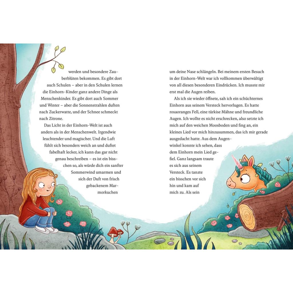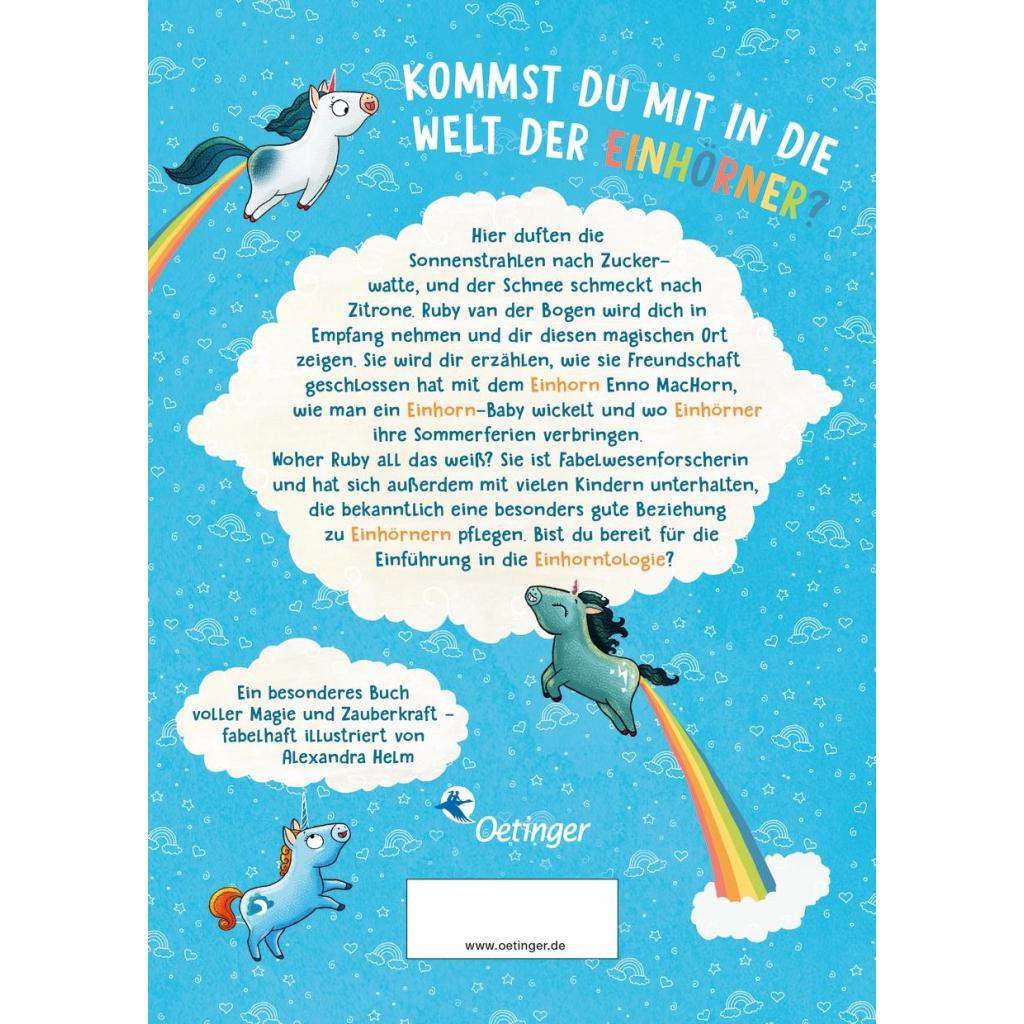 Magische Einhorn-Geschichten Die Welt der Einhörner ist eine fantastische Welt voller Magie. Wie sieht es dort eigentlich aus? Wie freundet man sich mit einem Einhorn an? Und wo machen Einhörner eigentlich Urlaub? All das erzählt die Bestsellerautorin Ruby van der Bogen in ihren zauberhaften Vorlesegeschichten für Kinder ab 4 Jahren. Ob von ihrem besten Freund, dem Einhorn Enno MacHorn, oder von ihrem magischen Häuschen in der Einhornwelt - das Buch steckt voller märchenhafter Geschichten und Bilder, die einen einzigartigen Einblick in das zauberhafte Universum der Einhörner geben. Zusätzlich erfahren Kinder, wie sie selbst zu kleinen Einhorntolog*innen werden und die Einhornwelt ganz einfach selbst erforschen können. Ein wunderbarer Vorlesespaß für große und kleine Einhorn-Fans und eine fantastische Reise in eine Welt voller Wunder! 101 Einhörner und fabelhafte Geschichten zum Vorlesen: Von Einhörnern empfohlen! Die Magie der Einhörner: Zauberhaftes Vorlesebuch mit fantastischen Einhorn-Geschichten und Illustrationen für Kinder ab 4 Jahren. Vorlesen und Wegträumen: Die fantasievollen Geschichten eignen sich perfekt für kuschelige Vorlesestunden. Die wunderbare Welt der Einhörner: Eine unterhaltsame Entdeckungsreise, die kleine Einhorn-Fans zu echten Einhorn-Expert*innen macht. Die Bestseller-Reihe: Mit wunderbaren Geschichten von Ruby van der Bogen und Einhorn-tastischen Bildern von Alexandra Helm. Das zauberhafte Vorlesebuch ist ein Muss für jedes Bücherregal kleiner Einhorn-Fans. Eine einzigartige Reise in die fantastische Welt der Einhörner und ein magisches Vorlesevergnügen für Familien mit Kindern ab 4 Jahren.