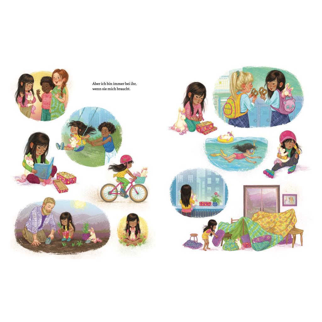 Tierische Freunde in traurigen Zeiten: Dieses Einhorn hilft bei Trennungsschmerz Die schlechte Nachricht kam an einem Donnerstag: Ihre Eltern würden sich scheiden lassen. Und so wurde aus dem Lieblingstag eines jungen Mädchens der schlimmste Wochentag überhaupt. Denn alles lief auf einmal anders. Zum Glück steht dem Mädchen in dieser schweren Zeit ein guter Freund zur Seite. Gemeinsam mit ihrem kuscheligen Einhorn findet das Kind Wege, die Trennung zu verarbeiten. Bis irgendwann Donnerstag wieder ein ganz normaler Tag in der Woche sein kann. Ann Bonwill gibt einen Einblick in die Gefühlswelt von Kindern, deren Eltern sich trennen, und zeigt, wie man diesen Trennungsschmerz mit der Kraft der Freundschaft überwinden kann. Eine feinfühlig und sensibel erzählte Freundschaftsgeschichte, die Trost spendet und Hoffnung schenkt. - Dieses Kinderbuch tröstet und hilft bei Scheidung oder Trennung - Zeigt kindgerechte Strategien, um Emotionen wie Trauer und Verlust zu verarbeiten - Für Kinder ab 3 Jahren, liebevoll illustriert von Kayla Harren - Ein Mutmachbuch für zuhause oder den Kindergarten Kinderbuch über Scheidung: Veränderungen mit der Kraft der Freundschaft begegnen Wenn Eltern sich trennen, bricht auf einmal eine kleine Welt zusammen. Der Alltag ist anders, ein Umzug steht an: In dieser Zeit hilft das Plüsch-Einhorn nicht nur, die Trennung zu verarbeiten, sondern auch, wieder Freude und Zuversicht zu empfinden. "Donnerstag" ist eine sensible Geschichte darüber, wie es Kindern gelingen kann, Tren-nungsschmerzen zu überwinden und neues Vertrauen zu fassen!
