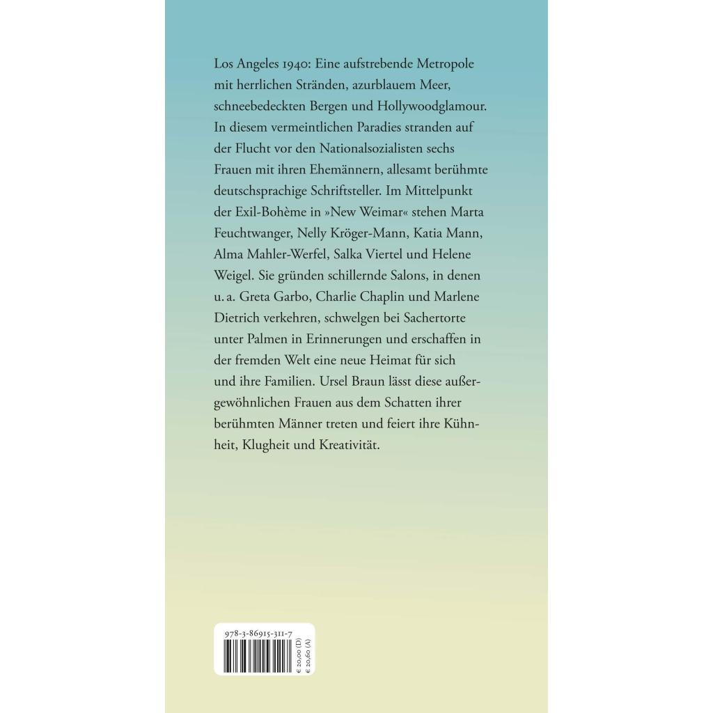 Die Frauen des 'New Weimar' erstmals im Fokus Sachertorte unter Palmen, ein Stück Heimat und Geborgenheit in 'New Weimar' - das fanden die deutschen Emigranten und ihre Frauen bei Salka Viertel in Pacific Palisades. Ihr Salon war einer der wichtigsten Treffpunkte für all, die auf der Flucht vor den Nationalsozialisten in Los Angeles gestrandet waren. Klug und kurzweilig erzählt Ursel Braun die Lebensgeschichten von sechs außergewöhnlichen Frauen und lässt sie aus dem Schatten ihrer berühmten Männer treten: Marta Feuchtwanger, Nelly Kröger-Mann, Alma Mahler-Werfel, Katia Mann, Salka Viertel und Helene Weigel. Mit enormem Einsatz schufen sie ein neues Zuhause für ihre Familien und unterstützten ihre Männer tatkräftig im Alltag und bei ihrer Arbeit. Das Buch nimmt uns mit in eine Stadt voller Kontraste, auf die Cocktailpartys der Filmstars, auf Fahrten in Bertolt Brechts klapprigem Buick entlang der legendären Pazifikküste und unter den festlich geschmückten Weihnachtsbaum bei Familie Mann. Eine facettenreiche Annäherung an das Thema 'Exil'. 'Wir leben hier in den blauen, blühenden Tag hinein und preisen Gott.' Alma Mahler-Werfel ¿ mit zahlreichen s/w-Fotos