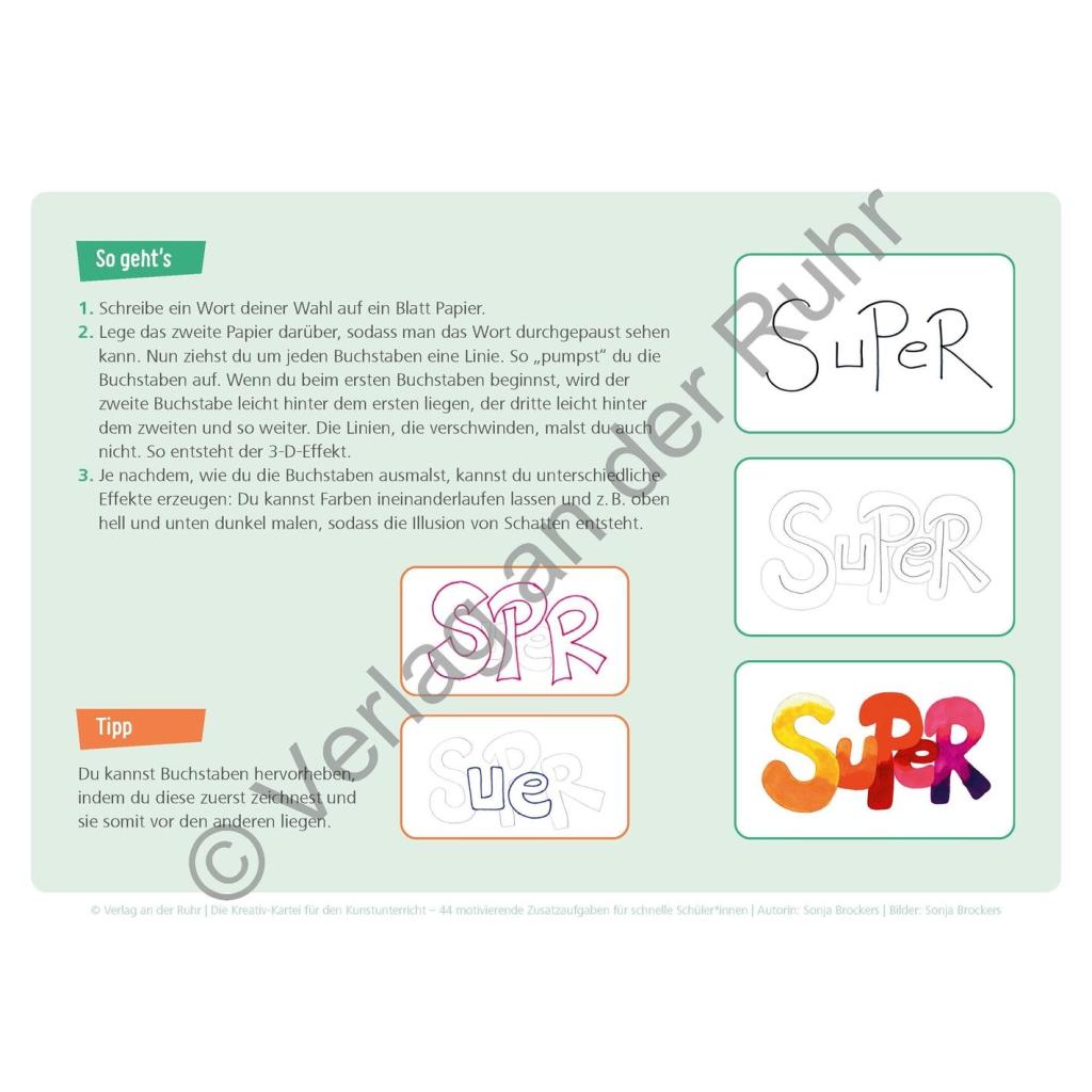 | Keyword: | Kunst; schnelle Kunstideen; Kunstunterricht Klasse 5-8; Kunst Klasse 5-8; Kunstideenkartei; Kunstlehrerin; Kunstlehrer; schnelle Schülerinnen und Schüler; schnelle Erfolge; Lückenfüller Kunst; kreative Kunstideen; Kunst für zwischendurch: Zusatz-Angebote; 10-Minuten Ideen; Kunstwerk |