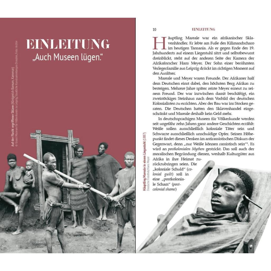 Die deutsche Kolonialgeschichte währte ganze 35 Jahre. Erst 1884 begann das Deutsche Kaiserreich, auf dem afrikanischen Kontinent sogenannte Schutzgebiete zu errichten, verlor diese aber bereits 1919 an die Siegermächte des Ersten Weltkriegs. Mit dem Ende des Kolonialismus jedoch, so wollen uns postkoloniale Aktivisten und ihre universitären oder musealen Stichwortgeber weismachen, kamen Ausbeutung, Kunstraub, Versklavung und Rassismus keineswegs zu einem Ende. Sie leben angeblich im postkolonialen Zeitalter fort, nur raffinierter. Da gibt es viel wiedergutzumachen. Mathias Brodkorb hat sich auf den Weg begeben und die Hotspots der postkolonialen Wiedergutmachung im deutschsprachigen Raum aufgesucht, die ehemaligen Völkerkundemuseen. Statt ihrer Aufgabe des Sammelns, Bewahrens, Erforschens und Ausstellens nachzugehen, sind sie vorrangig mit der Verfertigung des eigenen guten Gewissens beschäftigt. Zu diesem Zweck werden nicht nur Fakten verschwiegen, die nicht ins Bild passen, sondern mitunter auch historische Dokumente verfälscht. Viele Museen sind zu 'Ideologiemaschinen' geworden um den weißen Westen einer ewigen Schuld zu überführen.