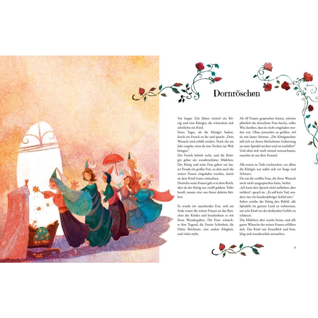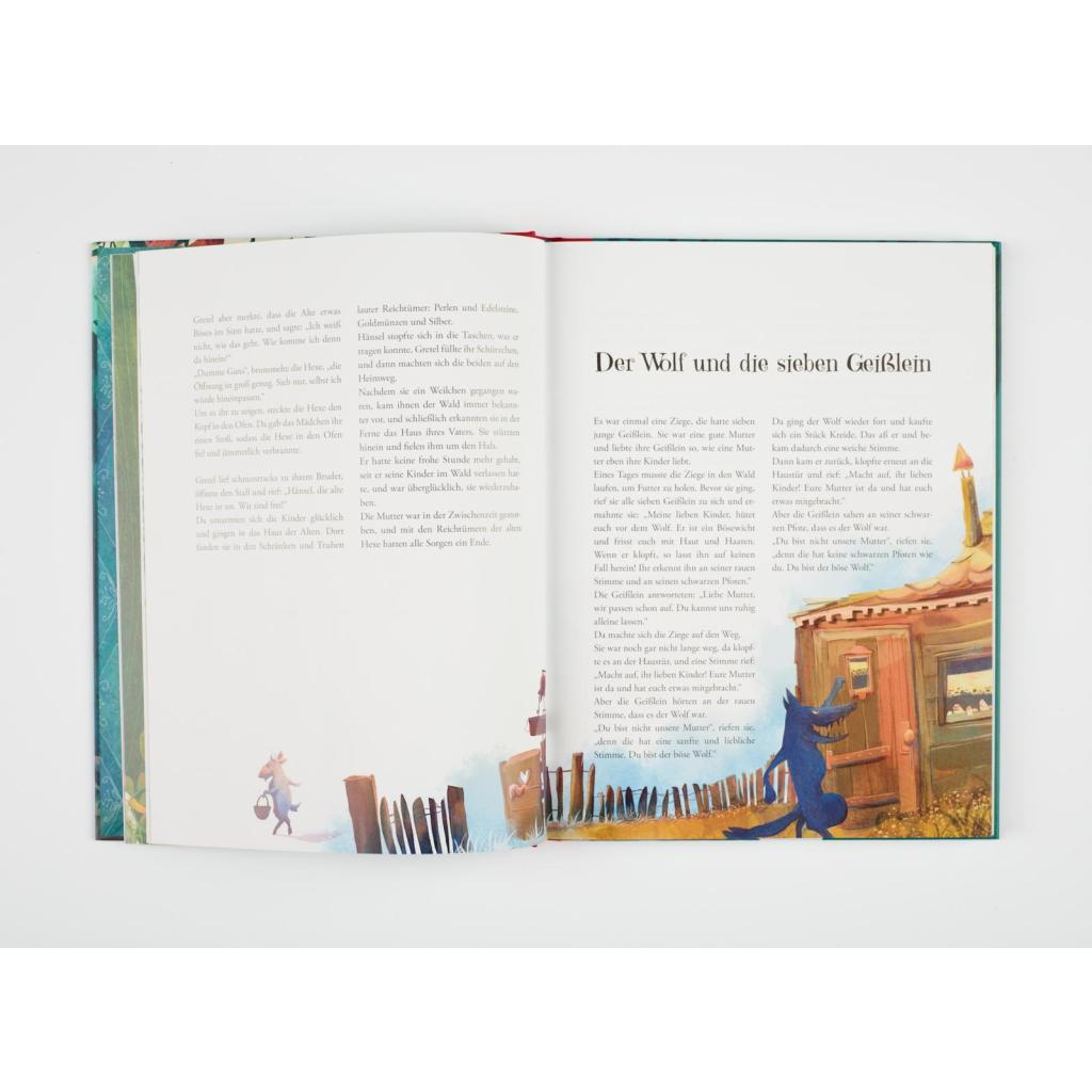 Die schönsten Märchen der Brüder Grimm mit traumhaften Illustrationen! Rapunzel, Rotkäppchen oder Schneewittchen - all diese Märchen gehören seit Generationen zu den bekanntesten und beliebtesten Märchen der Welt! Für diese Ausgabe wurden die Märchen der Brüder Grimm kindgerecht und leicht verständlich nacherzählt, ohne die Geschichten inhaltlich zu verändern. Die moderne Sprache macht die Märchen bereits für Kinder ab 4 Jahren gut verständlich und bereitet auch Erwachsenen beim Vorlesen große Freude. Mit 1-5 Seiten pro Märchen sind die Erzählungen in idealer Länge verfasst - für gemütliche Vorlesestunden zum Einschlafen oder für zwischendurch. Mit über 30 Märchen ist dieses Märchenbuch ein hervorragendes Standardwerk für Ihr Zuhause. Die traumhaft schönen Bilder der Kinderbuchillustratorin Anne Hofmann machen das Buch zu einem echten Märchenschatz für Ihre Familie. Grimms Märchen begeistert mit leuchtenden Farben auf hochwertigem Papier , einem klassischen Halbleineneinband und einem praktischen Lesebändchen . Tauchen Sie gemeinsam mit Ihren Kindern und Enkelkindern ein in Märchen über gute Feen, mutige Prinzessinnen und wilde Riesen, bei denen eines sicher ist: Am Ende siegt stets das Gute!
