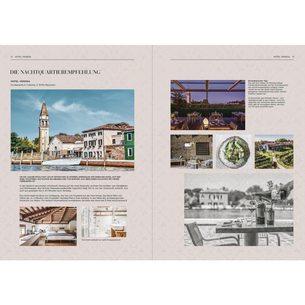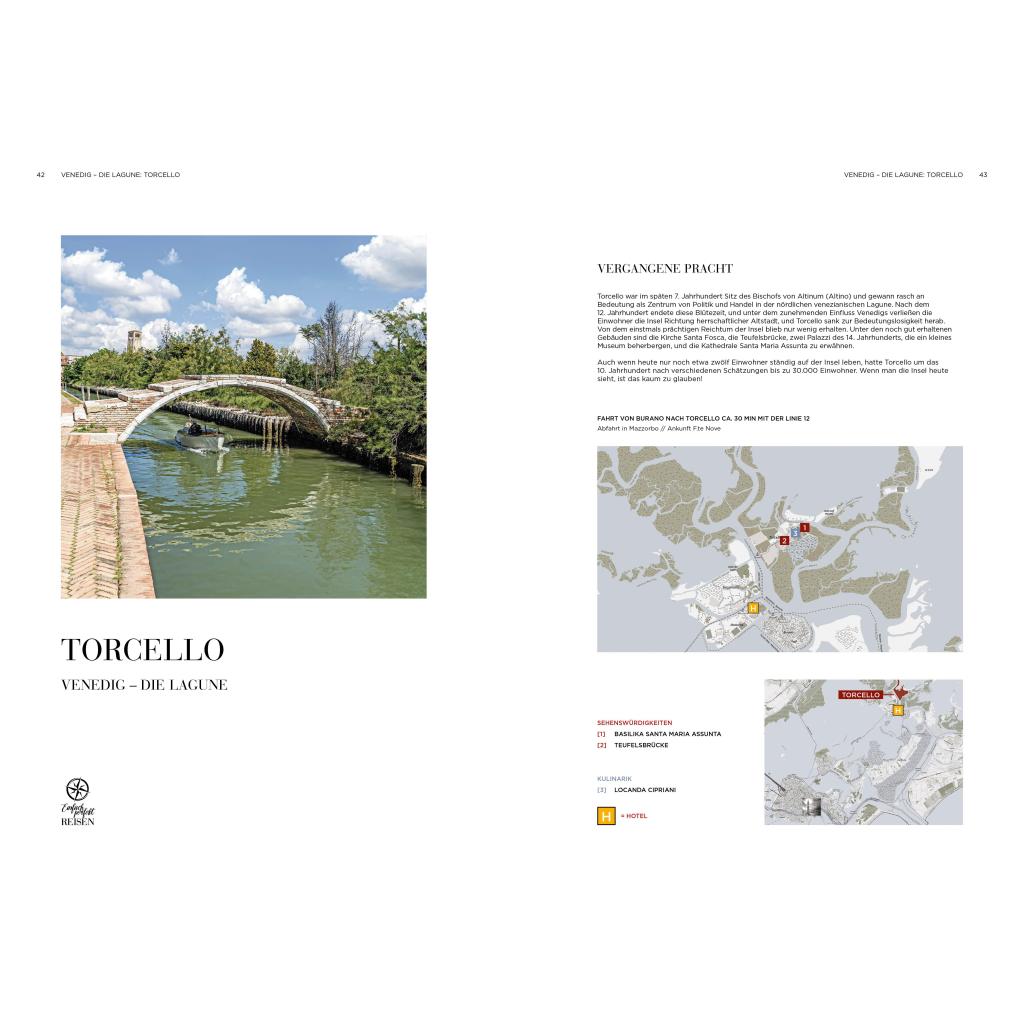 Genussvoll reisen - mit allen Sinnen eine Stadt entdecken! Dieses Buch führt den Reisenden zum Besonderen, zum Authentischen der Stadt, zu faszinierenden Orten (touristisch oder exklusiv), feinen Manufakturen, Hotels, Restaurants, Bars oder Kaffeehäusern mit exquisiter Kulinarik und vielem mehr. San Marco, Rialtobrücke, ... Venedig und seine Lagune haben viel mehr zu bieten. Zahlreiche Inseln in der Lagune wetteifern um die Gunst der Besucher - es ist schwer, eine davon auszuwählen und verlangt somit nach nach einer baldigen Wiederkehr. Und jede der Inseln in der Lagune von Venedig hat ihre Besonderheiten: Burano: mit seinen wundervollen bunten Häusern und seiner über alle Grenzen hinaus bekannten Spitzenstickerei. Torcello: die ruhige, grüne Insel mit ihrer vergangenen Größe. Es ist schwer vorstellbar, dass diese Insel - bevor die Einwohner sie wegen Seuchen und Sturmfluten verließen - einmal Hauptstadt Venetiens war. Murano: die Insel, auf der seit dem 10. Jahrhundert Glas hergestellt wird. Es ist ein Erlebnis, den Handwerkern bei der Ausübung der Glaskunst über die Schulter zu schauen. San Michele: das unter Denkmalschutz stehende Friedhofsareal gilt weltweit als einzigartig in seiner Anlage als Toteninsel.Und natürlich der Lido di Venezia mit seinen Stränden, die von Charme und Eleganz geprägt sind. Eine kleine Auflistung, was Sie erwartet: - Mazzorbo: guter Wein, gutes Essen - Burano: bunte Häuser, bestes Risotto - Torcello: vergangene Pracht - Murano: Kunst aus dem Feuer - Lido: die geheime Perle der Lagune - San Michelle: Rendezvous mit dem Tod und vieles mehr Vergessen Sie niemals zu genießen!