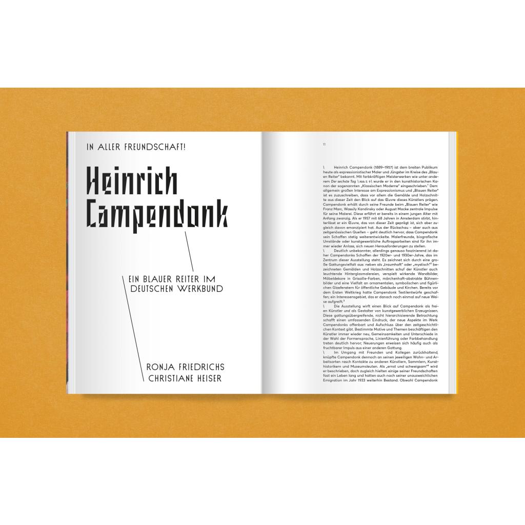 Heinrich Campendonks (1889-1957) Werke aus seiner Zeit als jüngster Künstler im Kreis des von Wassily Kandinsky und Franz Marc gegründeten "Blauen Reiter" sind weltweit bekannt und hochgeschätzt. Doch neben dieser eindrucksvollen malerischen Schaffensphase schuf der Künstler ein uvre, das sich durch eine überraschende Vielfalt an künstlerischen Gattungen auszeichnet. Er entwarf Bühnenbilder, dekorierte Möbel und gestaltete Textilien sowie Plakate. Die Ausstellung im Gustav-Lübcke-Museum setzt diese kunstgewerblichen Arbeiten erstmals in den Kontext seines expressionistischen malerischen Werkes und öffnet damit Blicke auf die tiefgehende Verbindung von Kunst und Leben. Entscheidende Impulse für die eigene künstlerische Arbeit erhielt Campendonk durch seine Künstlerfreundschaften zu bedeutenden Vertretern der Avantgarde, wie Paul Klee, Helmuth und August Macke, Heinrich Nauen oder zu seinem Lehrer Johan Thorn Prikker. Wie er selbst standen viele von ihnen mit dem 1907 gegründeten Deutschen Werkbund in Verbindung. Mit präzise ausgewählten Arbeiten dieser Freunde, Mentoren und Wegbegleiter dokumentieren und würdigen die Ausstellung sowie der begleitend erscheinende Katalog eine bisher wenig beachtete Moderne um Heinrich Campendonk.