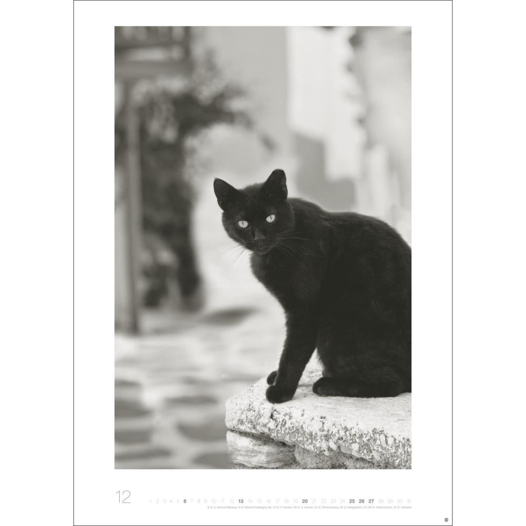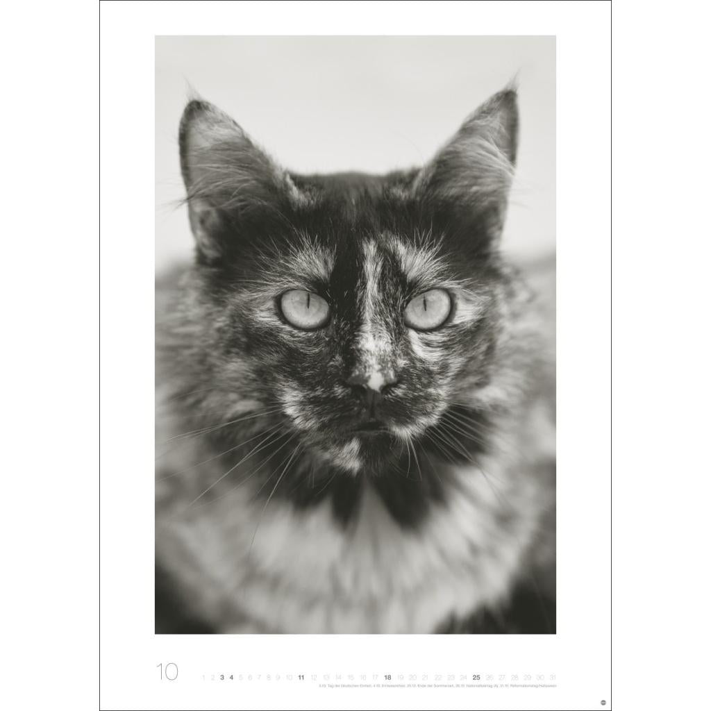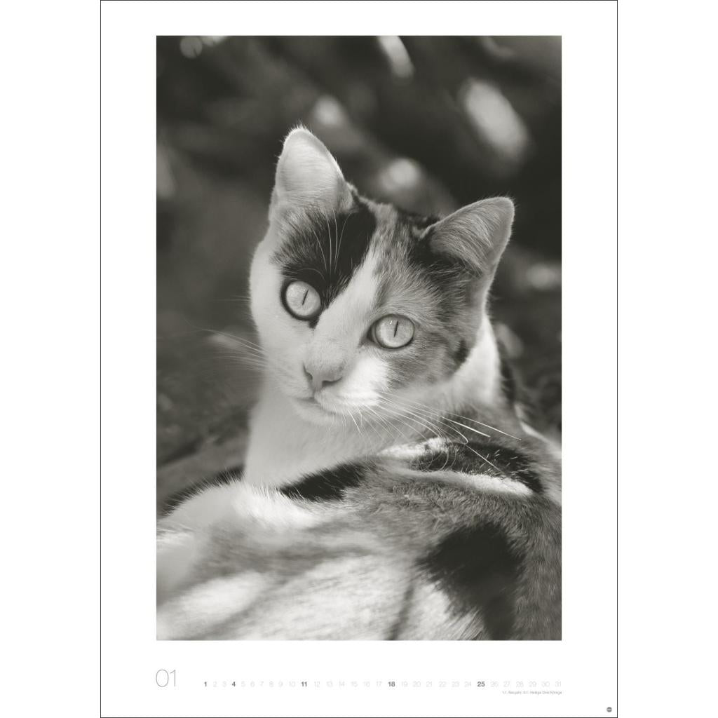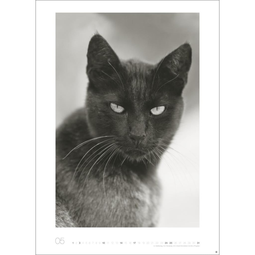 Elegante Samtpfoten in schwarz-weiß in einem XXL-Kalender. Tierkalender 2026 im Großformat. Hochwertiger großer Fotokalender für Katzenfans.
