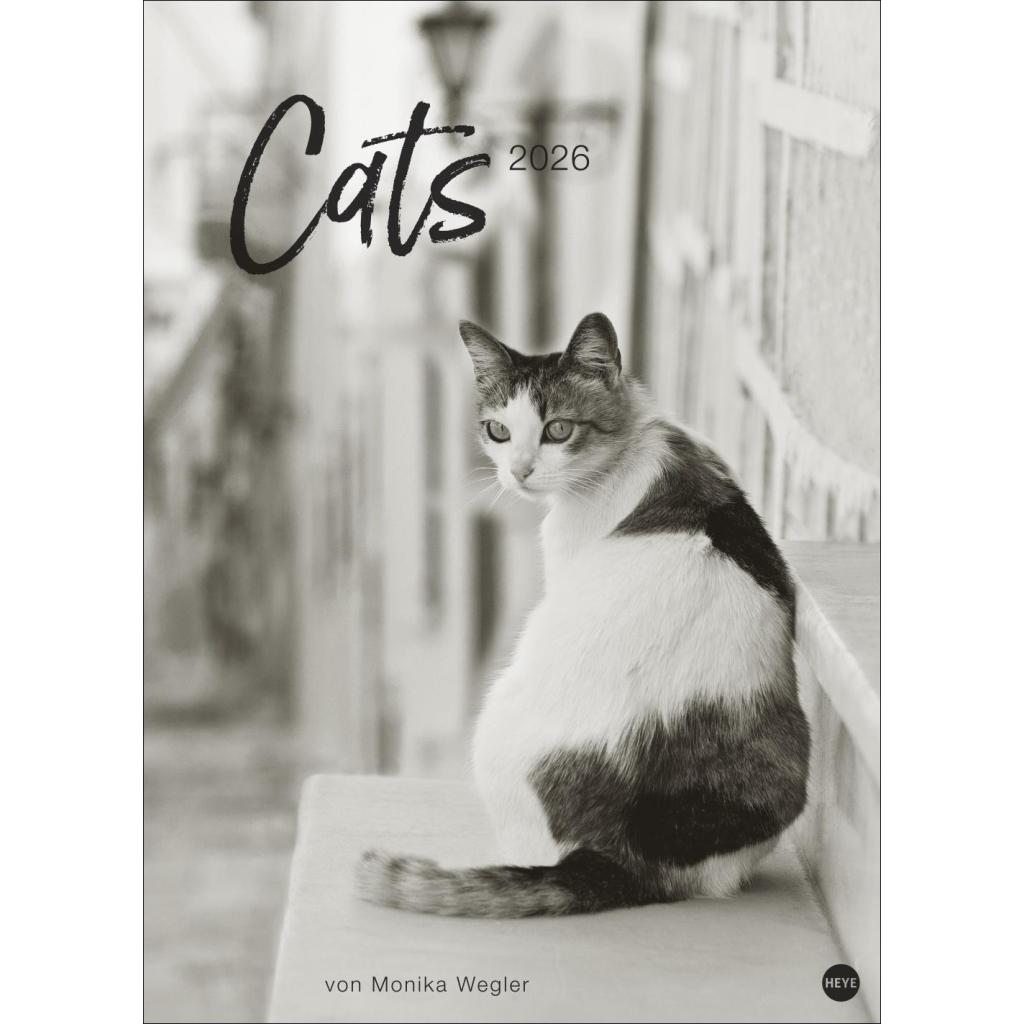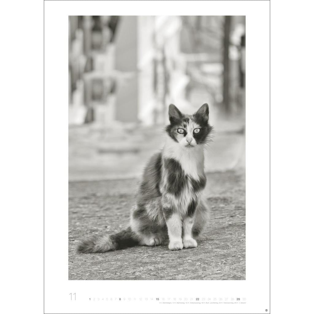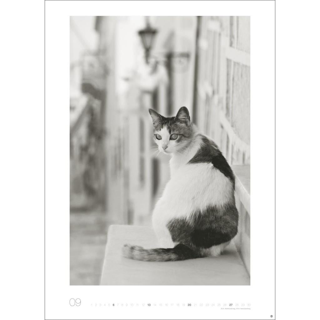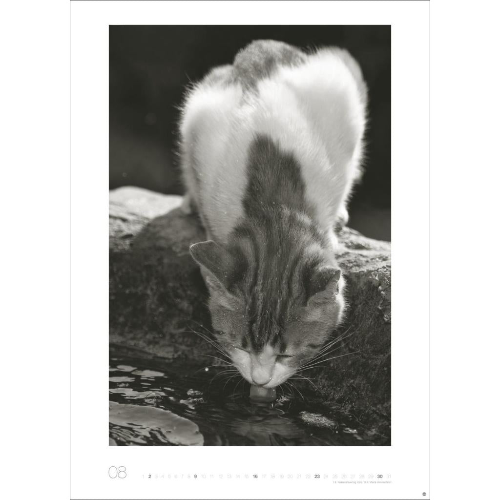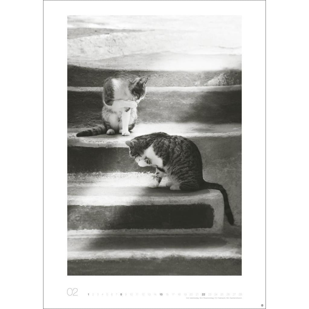 Elegante Samtpfoten in schwarz-weiß in einem XXL-Kalender. Tierkalender 2026 im Großformat. Hochwertiger großer Fotokalender für Katzenfans.