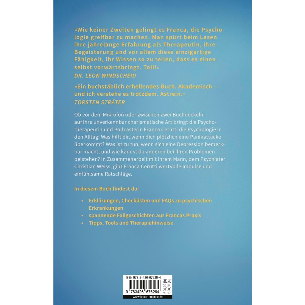 | Keyword: | Alltagspsychologie; Angststörung; Angststörung Behandlung; Angststörungen loswerden; Angststörungen überwinden; Bestseller Franca Cerutti; Bestseller Ratgeber; Buch Sucht; Bücher für die Seele; Cerutti; Christian Weiß; Depression; Depression Buch; Depressionen bekämpfen; Depressionen überwinden; Franca Cerutti; Franca Cerutti Buch; Franca Cerutti Podcast; Hilde bei Depression; Lebenshilfe Ratgeber; Panikattacken überwinden; Podcast Psychologie; Praxisbuch Psychologie; Psychologie Bücher; Psychologie im Alltag; Psychologie to go; Ratgeber Psychologie; Ratgeber Sucht; Sachbuch Depression; Sachbuch Psychologie; Spiegel Bestseller Ratgeber; Spiegel bestseller Franca Cerutti; Sucht |