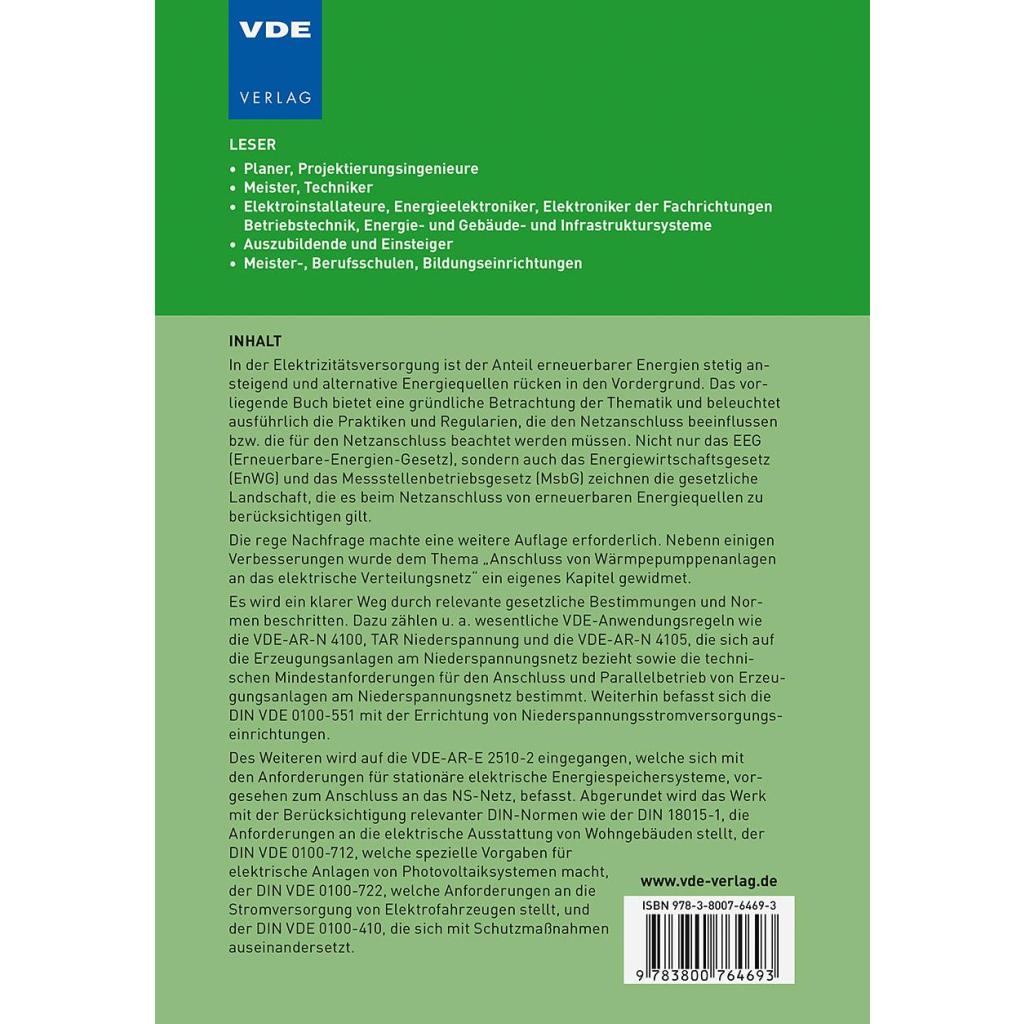 Erneuerbare-Energien-Anlagen und elektrische Anlagen am Niederspannungsnetz, unter Berücksichtigung von DIN VDE 0100-410, DIN VDE 0100-551, DIN VDE 0100-712, DIN VDE 0100-722, VDE-Anwendungsregeln VDE-AR-N 4100, VDE-AR-N 4105, VDE-AR-E-2510-2, DIN 18015-1 und gesetzlicher Vorgaben (EnWG, EEG, Ms