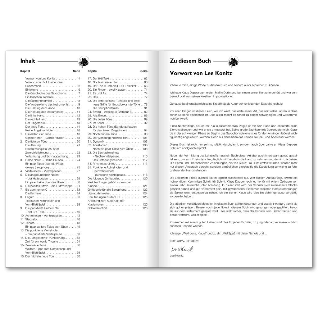 Über 100.000-mal verkauft - und aus gutem Grund! Wer heute Saxophon spielt, will mehr als nur Töne treffen - er will klingen. Ausdrucksstark. Vielseitig. Lebendig. Das Saxophonbuch begleitet dich auf genau diesem Weg. Egal ob du vom mitreißenden Groove des Rock träumst, dich nach der Freiheit des Jazz sehnst, die Energie von Pop spürst oder im Glanz klassischer Konzerte aufgehen willst - dieses Buch öffnet dir all diese musikalischen Türen. Mit 35 Lektionen - ideal abgestimmt auf ein Schuljahr - bringt es Struktur, Klarheit und Motivation in deinen Lernprozess. Vom ersten Ton bis zum Bühnenauftritt. Vom Tanzcombo-Gig bis zur Big Band. Vom Proberaum bis zum Konzertsaal. Du bekommst nicht nur fundierte Übungen für verschiedene Stilrichtungen, sondern auch wertvolle Tipps zu Ansatz, Atmung, Fingertechnik, Tonbildung, Instrumentenpflege und effektivem Üben. Alles, was du brauchst, um dein Spiel auf das nächste Level zu bringen. Und das Beste: Zu den Lektionen gibt's zahlreiche Audio-Tracks und Play-Alongs zum Mitspielen und Eintauchen - ganz einfach per Download. Sogar ausdruckbare Klavierbegleitungen sind dabei, jeweils für Eb und Bb! Jahrelang erprobt und geliebt von Schüler:innen und Lehrer:innen gleichermaßen - dieses Buch ist nicht nur ein Lehrwerk. Es ist dein musikalischer Begleiter. Schritt für Schritt. Ton für Ton. Werde der Saxophonist, der du sein willst - mit Das Saxophonbuch von Klaus Dapper. Empfohlen von: Prof. Rainer Glen Buschmann "Die Lektionen dieses Buchs bauen logisch aufeinander auf. Wer diesem Aufbau folgt, erwirbt die notwendigen Kenntnisse Schritt für Schritt. Dies allein macht es zu einem notwendigen und willkommenen Lehrwerk." Lee Konitz "Eine bemerkenswerte Schule, die durch ihren logischen Aufbau, ihre stilistische Vielfalt bei der Auswahl der Spielstücke und jetzt auch noch durch die Audiotracks (mit ausdruckbarem Notentext!) überzeugt." Günter Priesner, Dozent für klassisches Saxophon, Kammermusik und Fachmethodik an der Hochschule für Musik Nürnberg "Das Saxophon ist auf dem besten Wege, ein Volksinstrument zu werden. Umso erstaunlicher ist es, dass es bisher keine Schule gab, die einerseits den Lehrstoff systematisch und leicht verständlich darbietet, und andererseits ihre Übungsstücke aus allen musikalischen Bereichen nimmt, in denen das Saxophon heute Verwendung findet. Klaus Dapper, selbst gestandener vielseitiger Profi, hat versucht, diese Lücke zu schließen, und er hat das nach meiner Auffassung erfolgreich getan." DIN A4, 160 Seiten, mit praktischer Ringbindung, alle Audio-Tracks und die Klavierbegleitungen für Eb & Bb als Download
