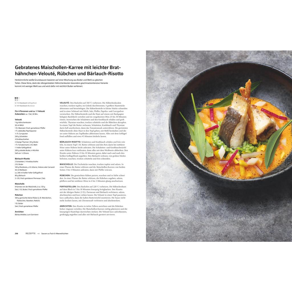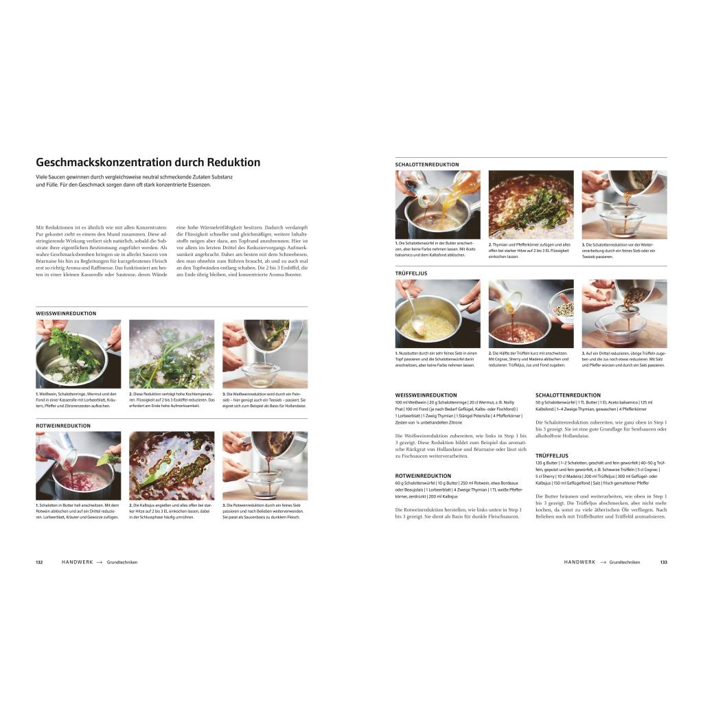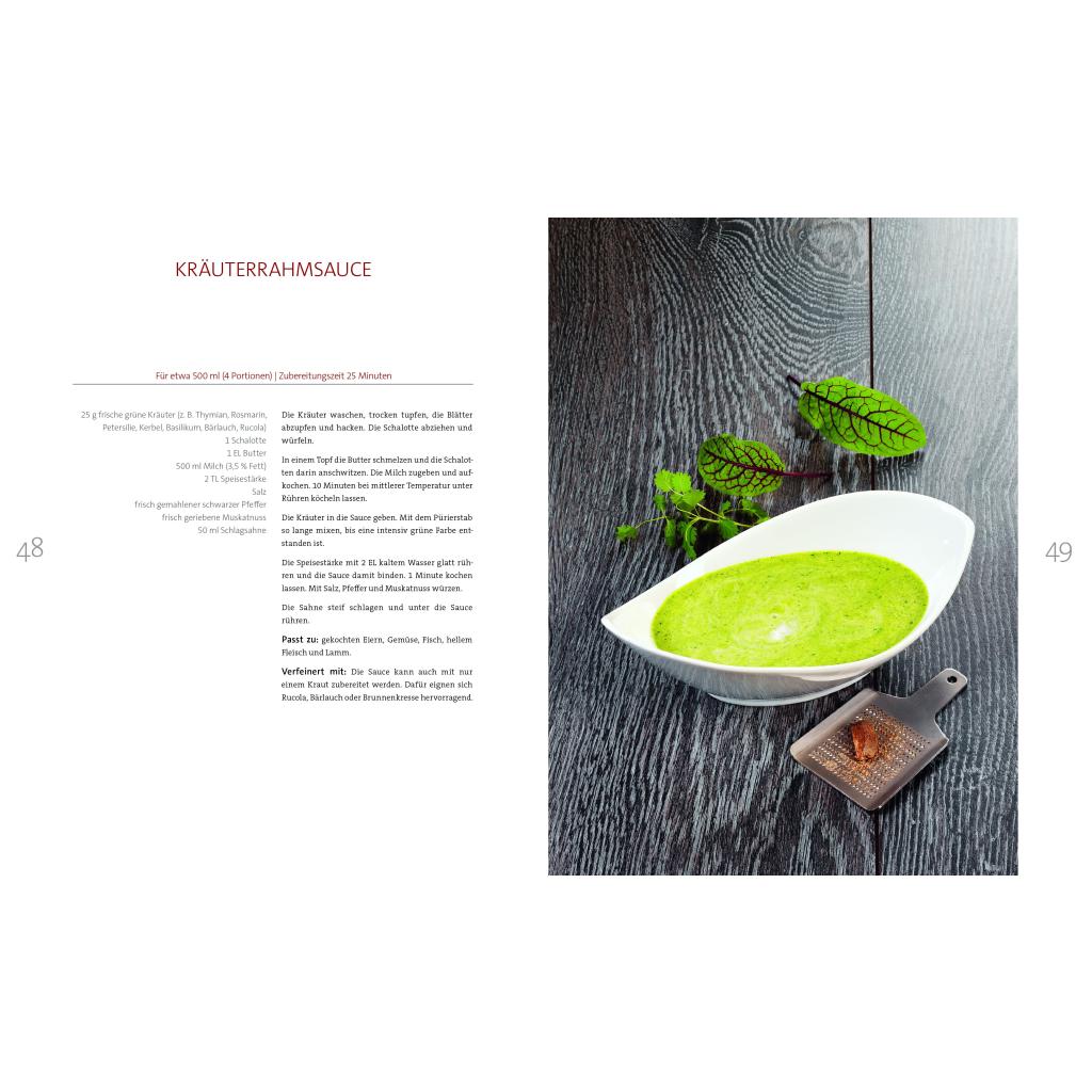 Saucen sind das i-Tüpfelchen vieler Gerichte und die Herausforderung schlechthin in der Küche - für Profis und Hobbyköche. Saucen machen ein einfaches Gericht zum einzigartigen Gaumenschmaus und runden besondere Speisen hervorragend ab. Wesentlich sind die Wahl der richtigen Sauce und die gekonnte Zubereitung! Beste Ausgangsprodukte Finden Sie in der Warenkunde alle Infos über die wichtigsten Zutaten für die Saucenzubereitung. Von Knochen, Gräten und Karkassen über Gemüse, Pilze, Kräuter und Gewürze sowie Milchprodukte, Öle und Fette bis hin zu Wein und Spirituosen sowie Süßungs- und Bindemitteln. Perfektes Handwerk Kennen Sie eine der wichtigsten Saucenzutaten? Zeit! Die Zubereitung der Saucenbasis - Fonds, Jus, Glace - erfordert neben den besten Zutaten reichlich Zeit und Geduld, damit so viele Aromen wie möglich in die Sauce kommen. Aber auch Küchentechniken wie das Aufschlagen von Saucen, für eine luftige Konsistenz, die verschiedenen Möglichkeiten der Bindung für samtig-sämige Ergebnisse sowie die ganze Welt des Würzens und Aromatisierens werden hier vorgestellt. Und natürlich auch die Zubereitung der Grundsaucen. Lernen Sie das Saucenhandwerk vom Profi und erfahren Sie seine Tricks und Kniffe. Großartige Rezepte Lassen Sie sich verführen und tauchen Sie ein in die wunderbare Welt der Saucen: Ob Gebrannte Auberginensauce zu Kaninchen, Erbsen-Minzvinaigrette zu Graupenrisotto, Parmesanschaum zu Tortellini oder Orangen-Marzipan-Sauce mit Rosmarin zu Crêpes - neun Spitzenköche verraten ihre besten Rezepte zu Fleisch, Fisch und Gemüse, aber auch zu Pasta und süßen Gerichten. Und auf speziellen Workshop-Seiten gibt es viel Wissenswertes zu Klassikern aus der Saucenküche, aber auch zu neuen, ungewöhnlichen Saucen-Kreationen. Blättern, lesen, nachkochen - dieses Buch ist ein Fest für alle Sinne!