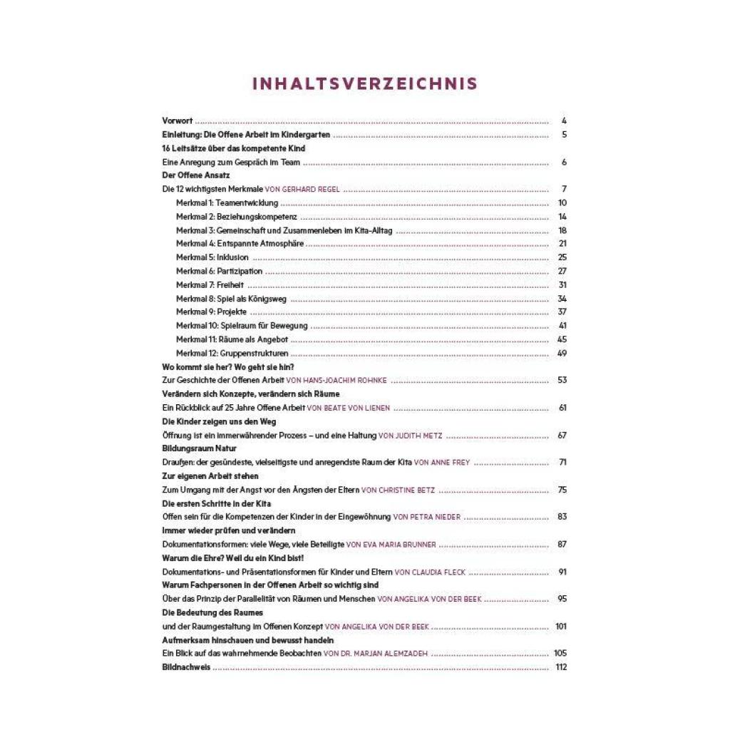 Im Mittelpunkt der Offenen Arbeit steht das Kind als Selbstgestalter seiner Entwicklung. Dafür brauchen Kinder differenziert gestaltete Räume, in denen sie selbstbestimmt ihren Interessen und Bedürfnissen nachgehen können. Dieses Praxisbuch führt in die grundlegenden Ideen und Methoden der Offenen Arbeit ein und stellt die 12 wichtigsten Merkmale vor. Erfahrene Pädagoginnen und Pädagogen berichten in Praxisartikeln aus ihrer pädagogischen Arbeit und geben Impulse, wie der Weg zur Öffnung gelingen kann: Wie gehen wir den Prozess an und wie nehmen wir Hürden gemeinsam im Team? Wie holen wir die Eltern ins Boot? Müssen Gruppenstrukturen komplett aufgelöst werden? Welche Rolle kommt den Fachfrauen und -männern zu? Mit zahlreichen Praxistipps und Denkanstößen ist dieses Buch der perfekte Begleiter - ob in der Ausbildung oder für Teams, die sich neu orientieren wollen.