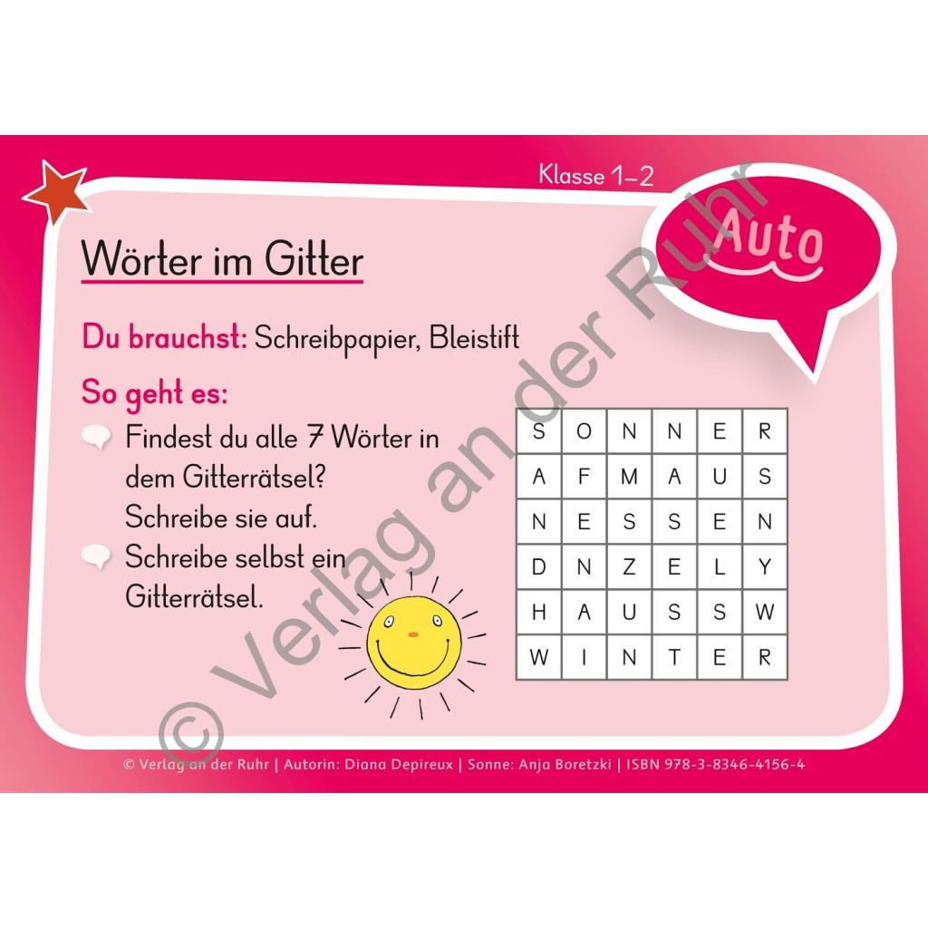 | Keyword: | Aufgaben für gute Schüler; Aufgaben für schnelle Schüler; Buchstaben; Deutsch-Lehrer; Differenzierung im Unterricht; Differenzierungsmaterial; Eigene Texte; Freiarbeitsmaterial; Grammatik; Gute Zusatzaufgaben für schnelle Schüler; Ich bin fertig - was jetzt?; Ideensammlung; Karteikarten; Lehrer; Schnell einsetzbare Zusatzaufgaben; Schule; Schüler; Sinnvolle Aufgaben für gute Schüler; Sinnvolle Zusatzaufgaben für gute Schüler; Sätze; Trainingsmaterial; Unterricht; Unterrichtsmaterial; Unterrichtsorganisation Deutsch-Unterricht; VadR Zusatzaufgaben; Verlag an der Ruhr Zusatzaufgaben; Wörter; Zusatzaufgaben; Übungsmaterial |
