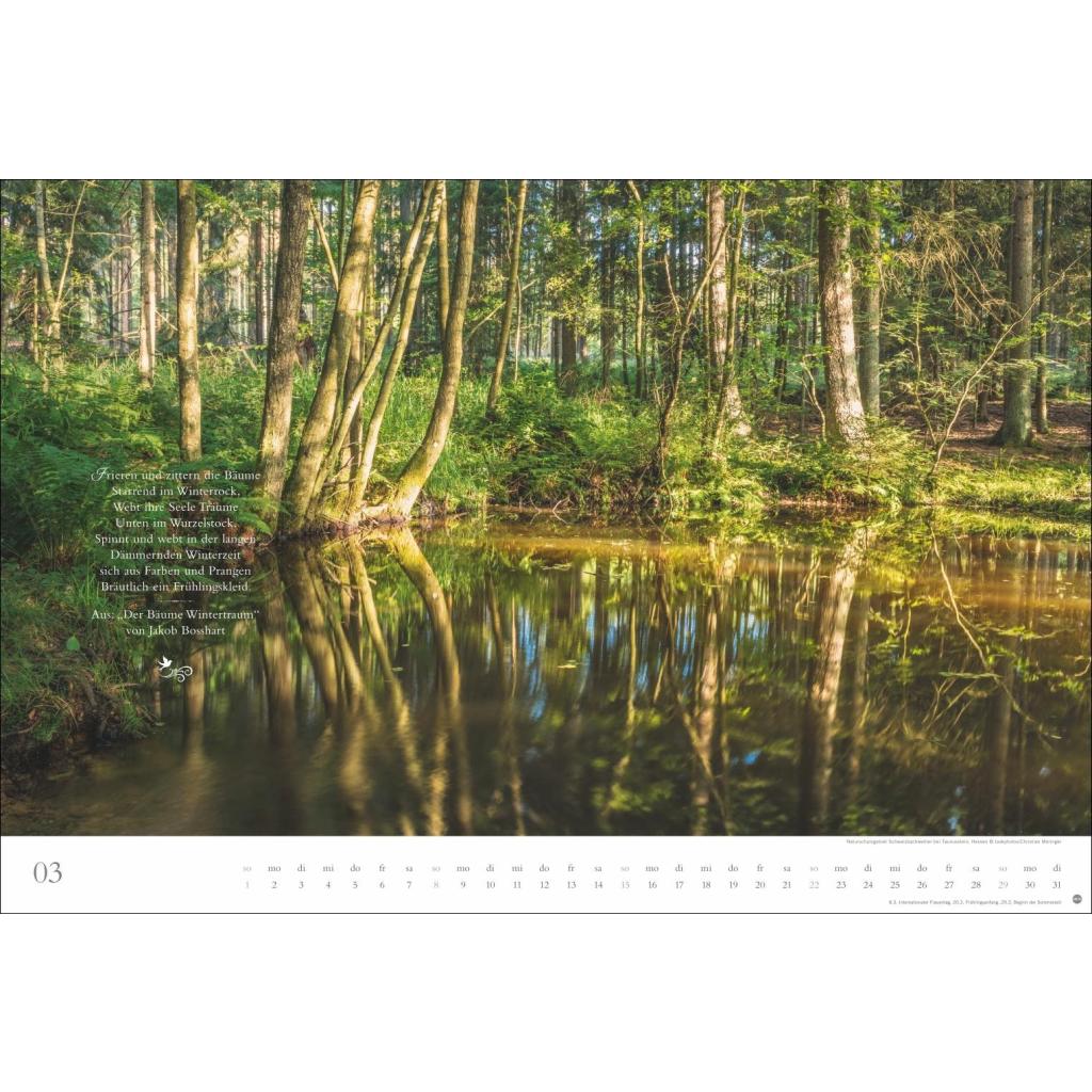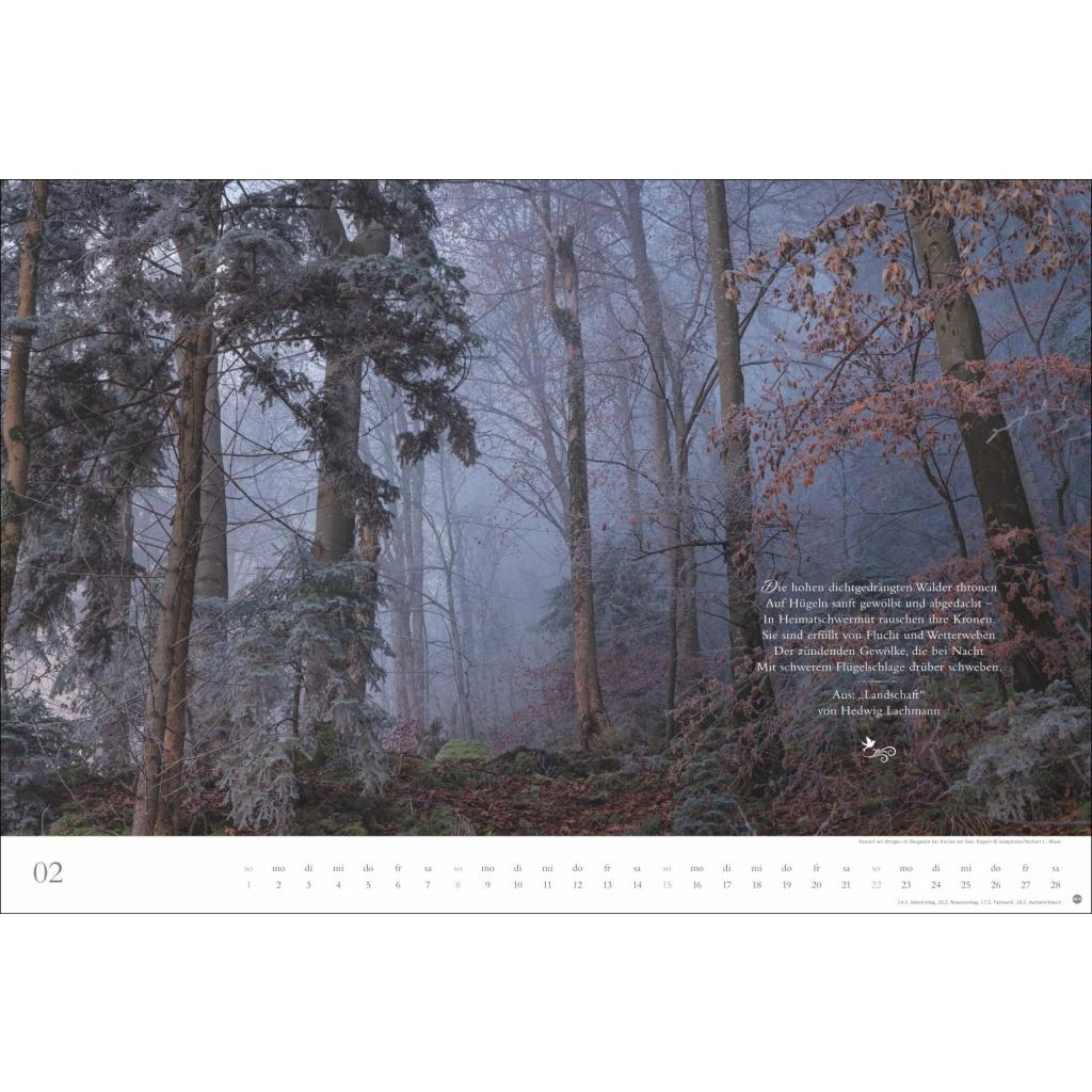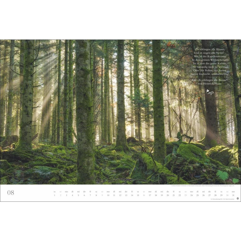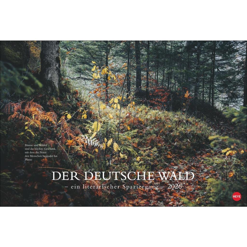 Inspirierende Fotos deutscher Wälder mit Zitaten bekannter Klassiker. Großer Wandkalender 2026.