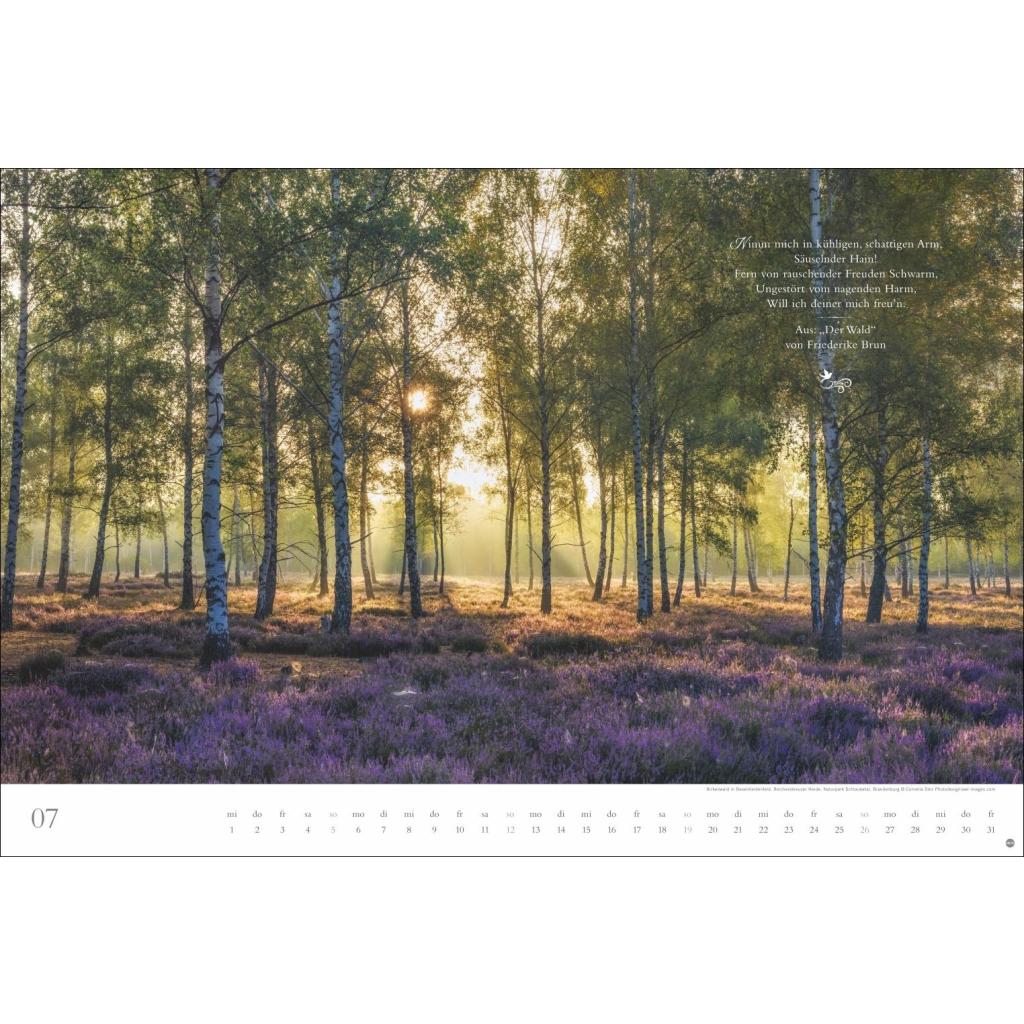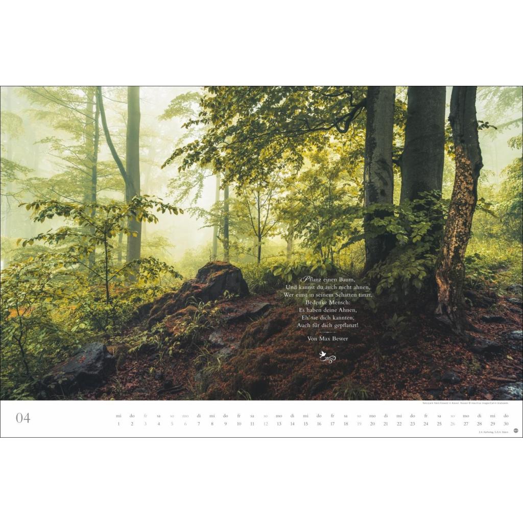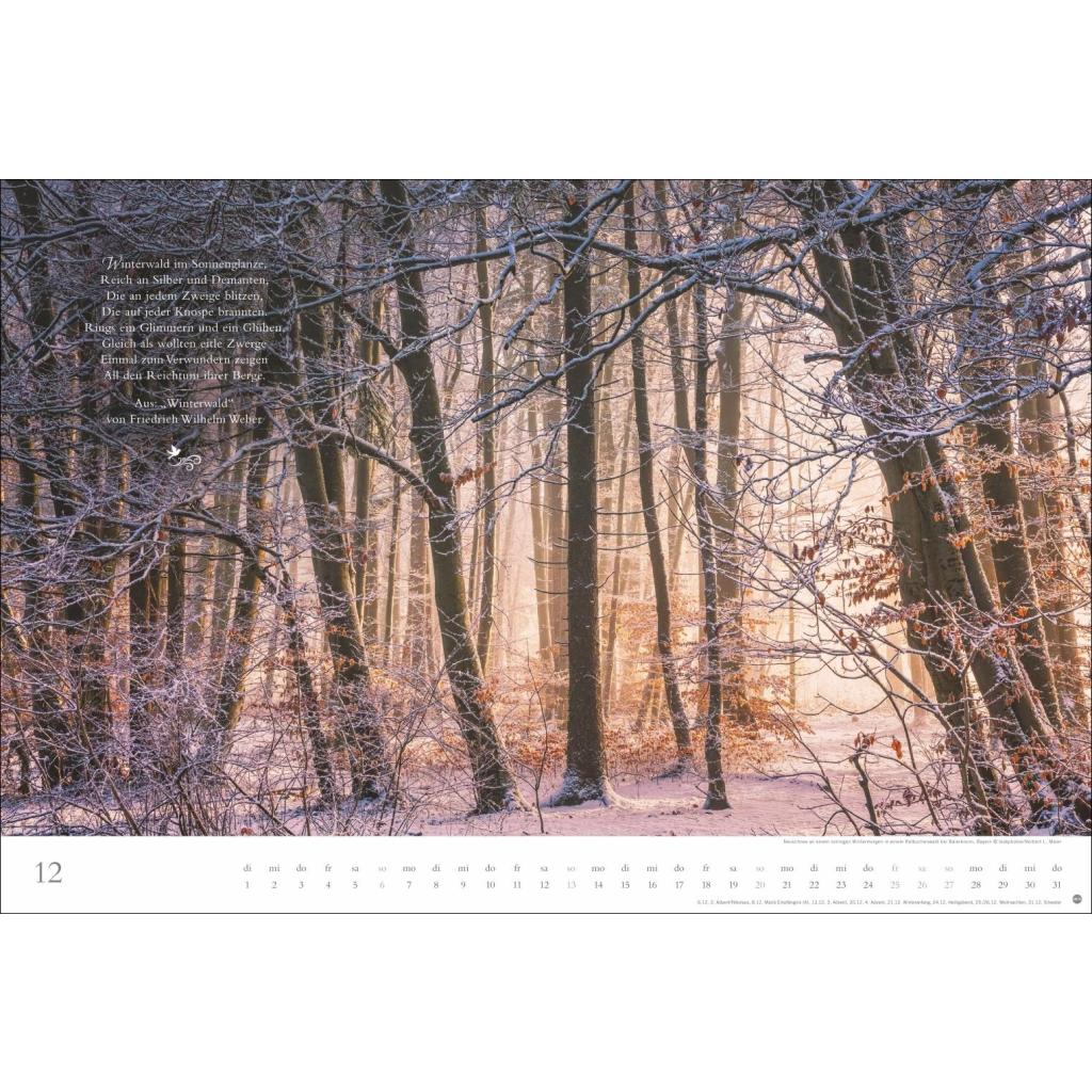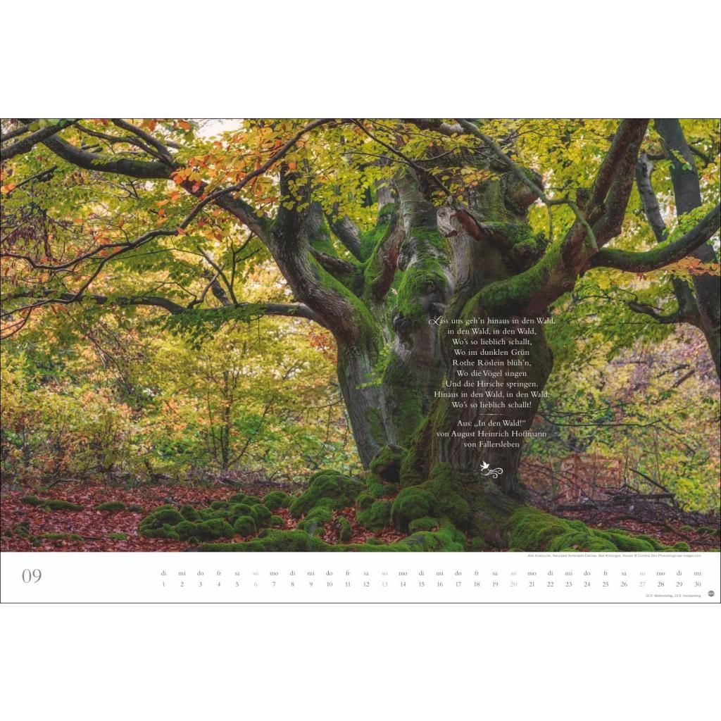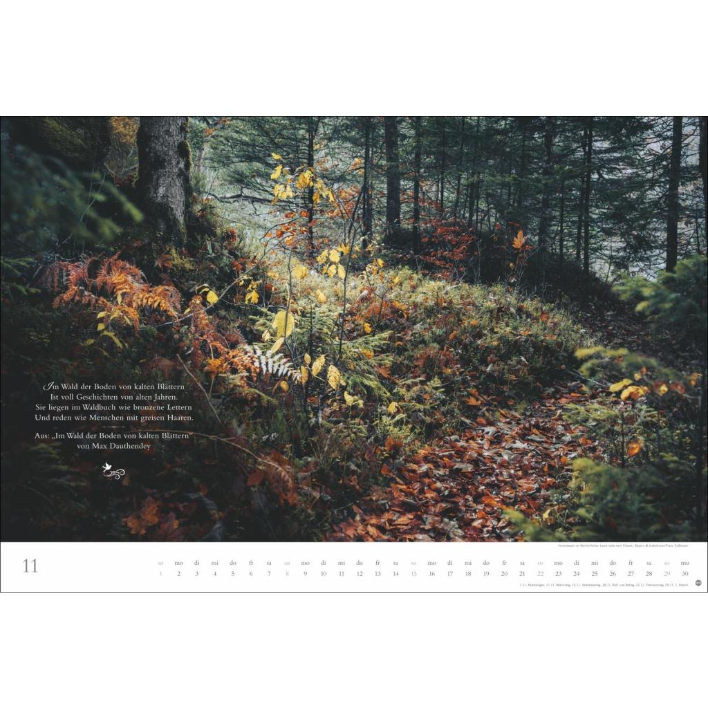 Inspirierende Fotos deutscher Wälder mit Zitaten bekannter Klassiker. Großer Wandkalender 2026.