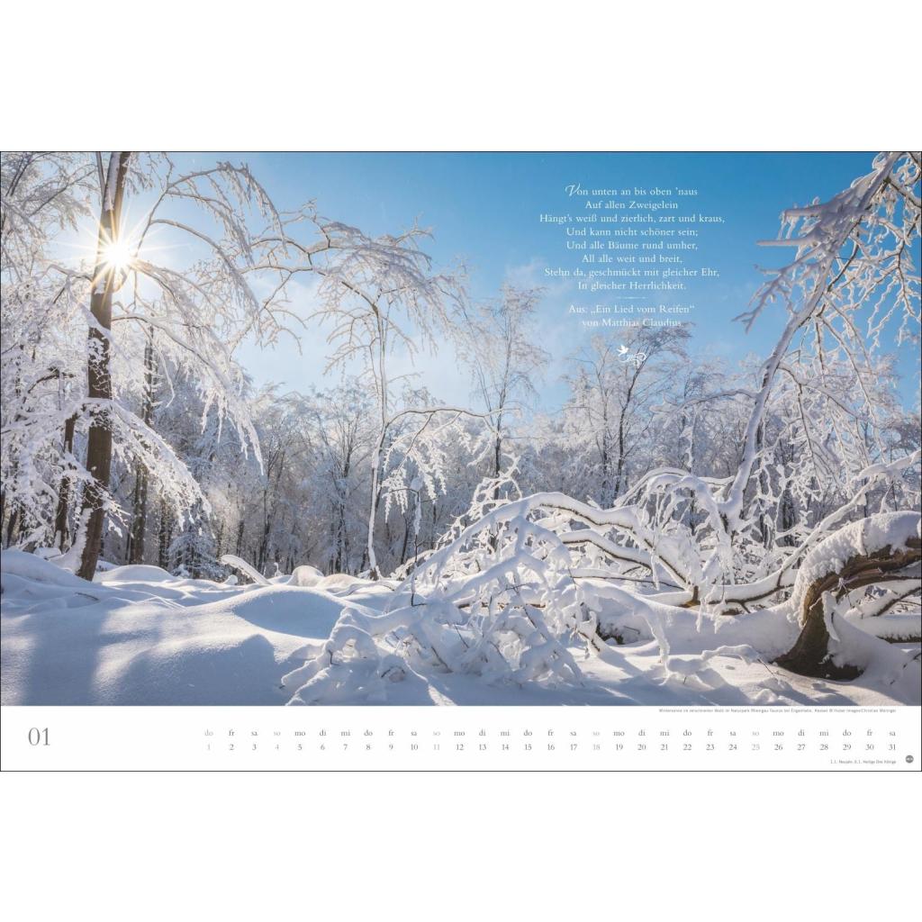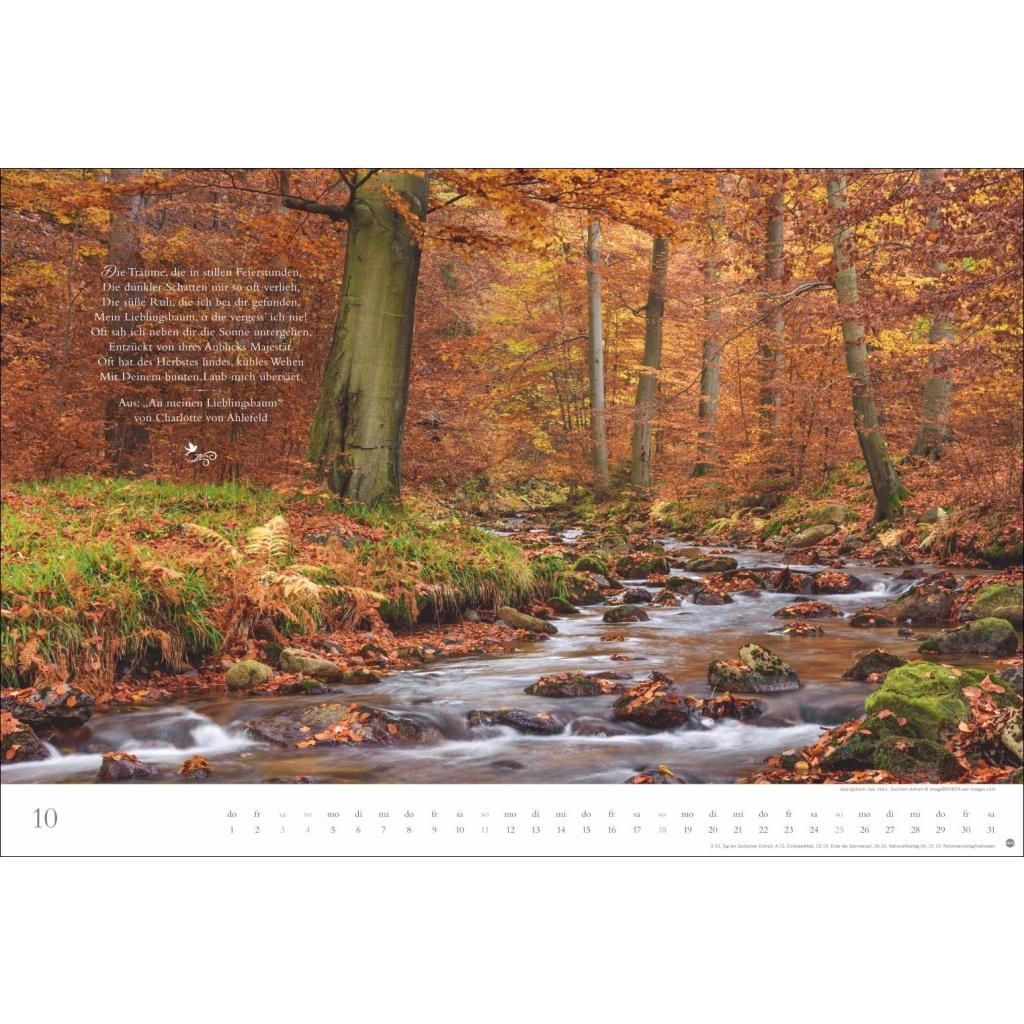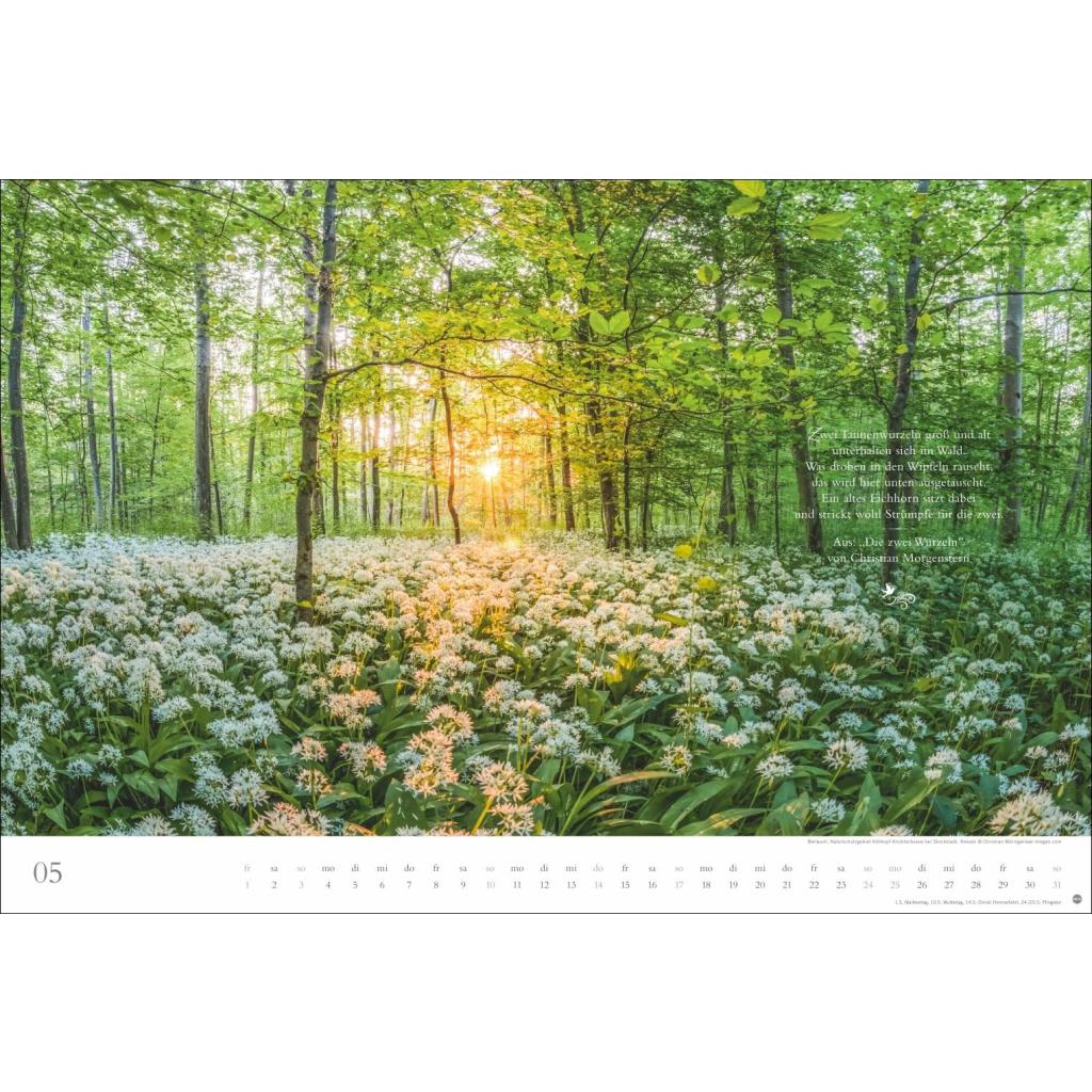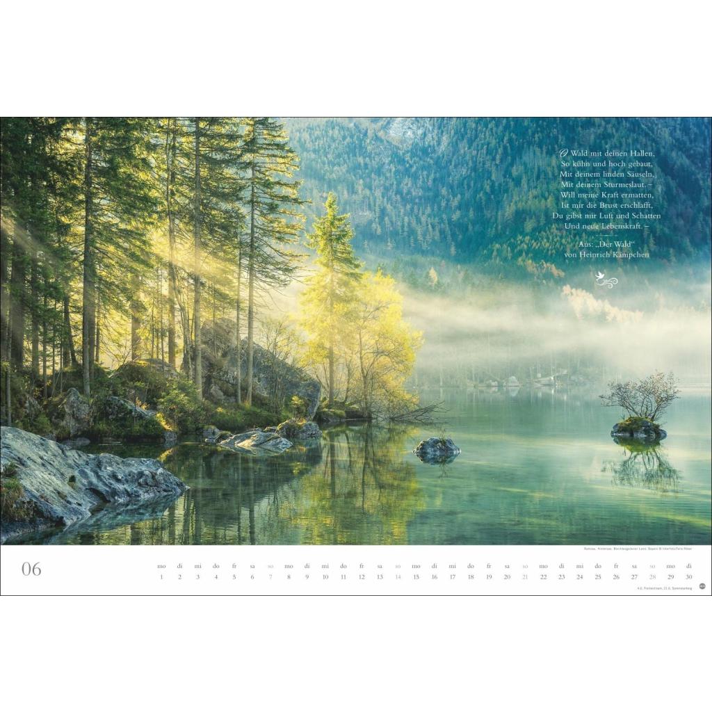Inspirierende Fotos deutscher Wälder mit Zitaten bekannter Klassiker. Großer Wandkalender 2026.