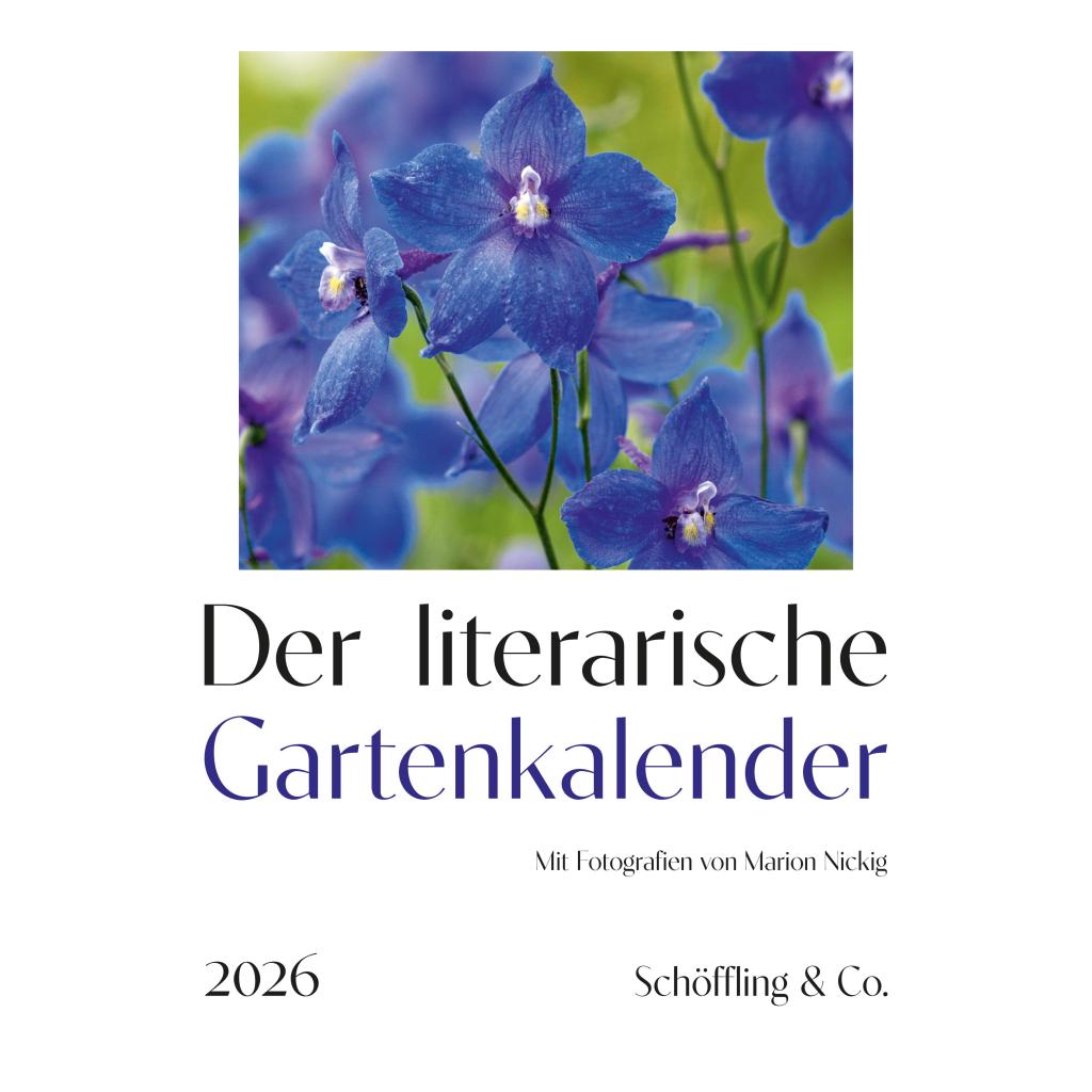 Jetzt schon vorbestellen und auf 2026 freuen! Hier können Sie einen Blick in den Kalender werfen. Zahlreiche Schriftsteller*innen waren passionierte Gärtner*innen, und viele haben über ihre Liebe zu Blumen, Bäumen, Gärten und Parks geschrieben: fasziniert und liebevoll, begeistert oder ratsuchend, immer aber voller Enthusiasmus. Der literarische Gartenkalender sammelt für das Jahr 2026 wieder Woche für Woche Zitate berühmter Schriftsteller*innen über das Gärtnern im praktischen wie im literarischen Sinn und erfreut mit den traumhaft schönen Fotografien von Marion Nickig. Mit Texten u.a. von: Johann Wolfgang von Goethe, Frank Kafka, Bertolt Brecht, Robert Walser, Antoine de Saint-Exupéry, Friedrich Nietzsche, Wilhelm Busch, Elizabeth von Arnim, Albert Einstein, Hoffmann von Fallersleben, Stefan George, Erich Mühsam, Oscar Wilde, Edith Wharton, Marie Curie, Rudyard Kipling, Anton Tschechow, Kurt Tucholsky, Karoline von Günderrode, Laotse, Heinrich Hoffmann, Meister Eckhart Den literarischen Gartenkalender für das laufende Jahr können Sie hier bestellen.