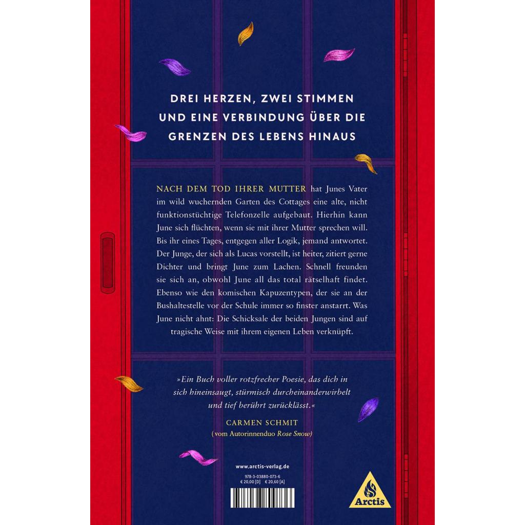 Unvergessliche Liebesgeschichte mit wunderschönem Motivfarbschnitt Nach dem Tod ihrer Mutter hat Junes Vater im wild wuchernden Garten des Cottages eine alte, nicht funktionstüchtige Telefonzelle aufgebaut. Hierhin kann June sich flüchten, wenn sie mit ihrer Mutter sprechen will. Bis ihr eines Tages, entgegen aller Logik, jemand antwortet. Der Junge, der sich als Lucas vorstellt, ist heiter, zitiert gerne Dichter und bringt June zum Lachen. Schnell freunden sie sich an, obwohl June all das total rätselhaft findet. Ebenso wie den komischen Kapuzentypen, der sie an der Bushaltestelle vor der Schule immer so finster anstarrt. Was June nicht ahnt: Die Schicksale der beiden Jungen sind auf tragische Weise mit ihrem eigenen Leben verknüpft. DREI HERZEN, ZWEI STIMMEN UND EINE VERBINDUNG ÜBER DIE GRENZEN DES LEBENS HINAUS