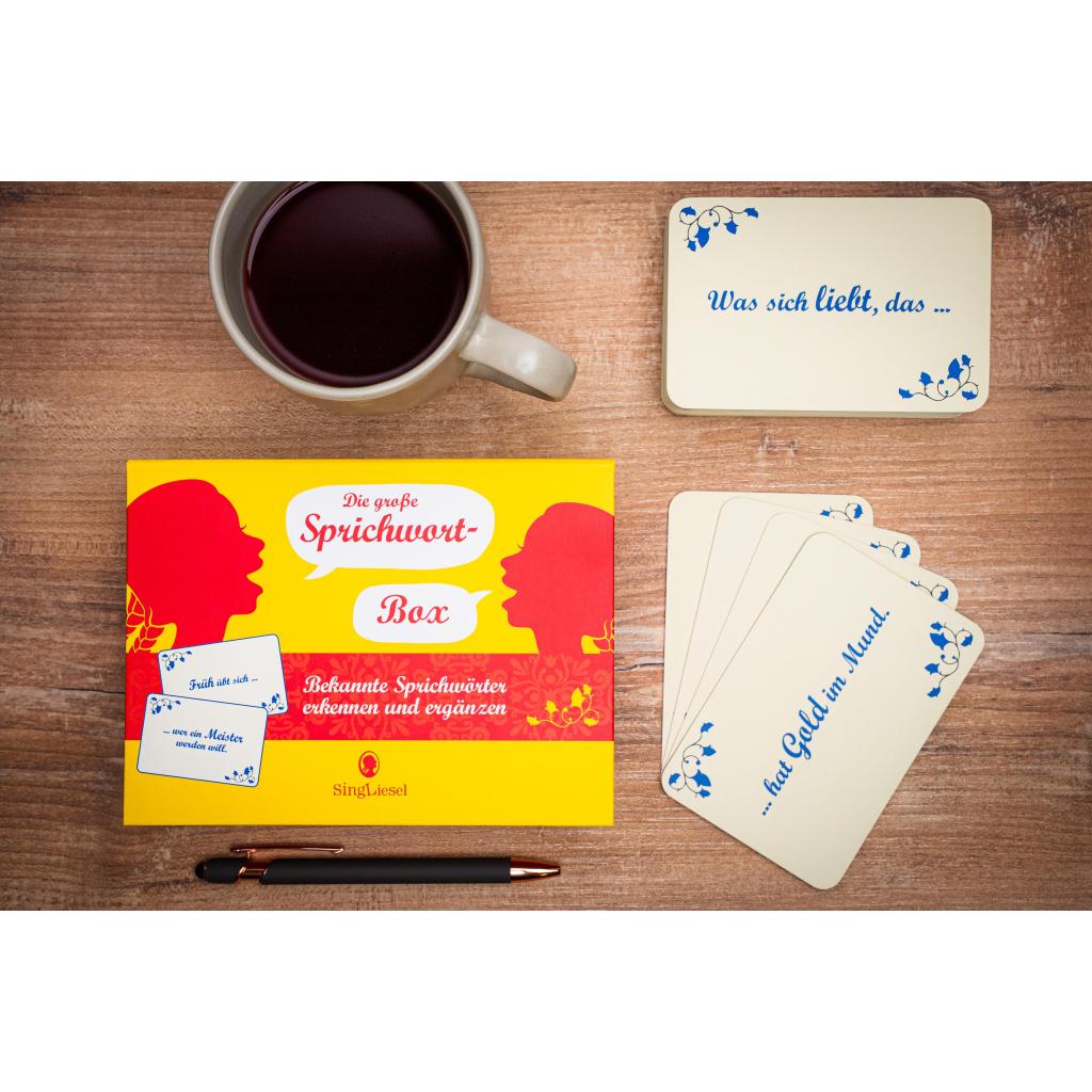 | Keyword: | Alzheimer; Gedächtnistraining; Geschenk; Geschenk Oma; Geschenk Opa; Großeltern; Mitbringsel; Quiz; Ratespiel; Rentner; Senioren Spiele; Spiel; Sprichwort; Sprichwörter; Umgang mit Demenz |