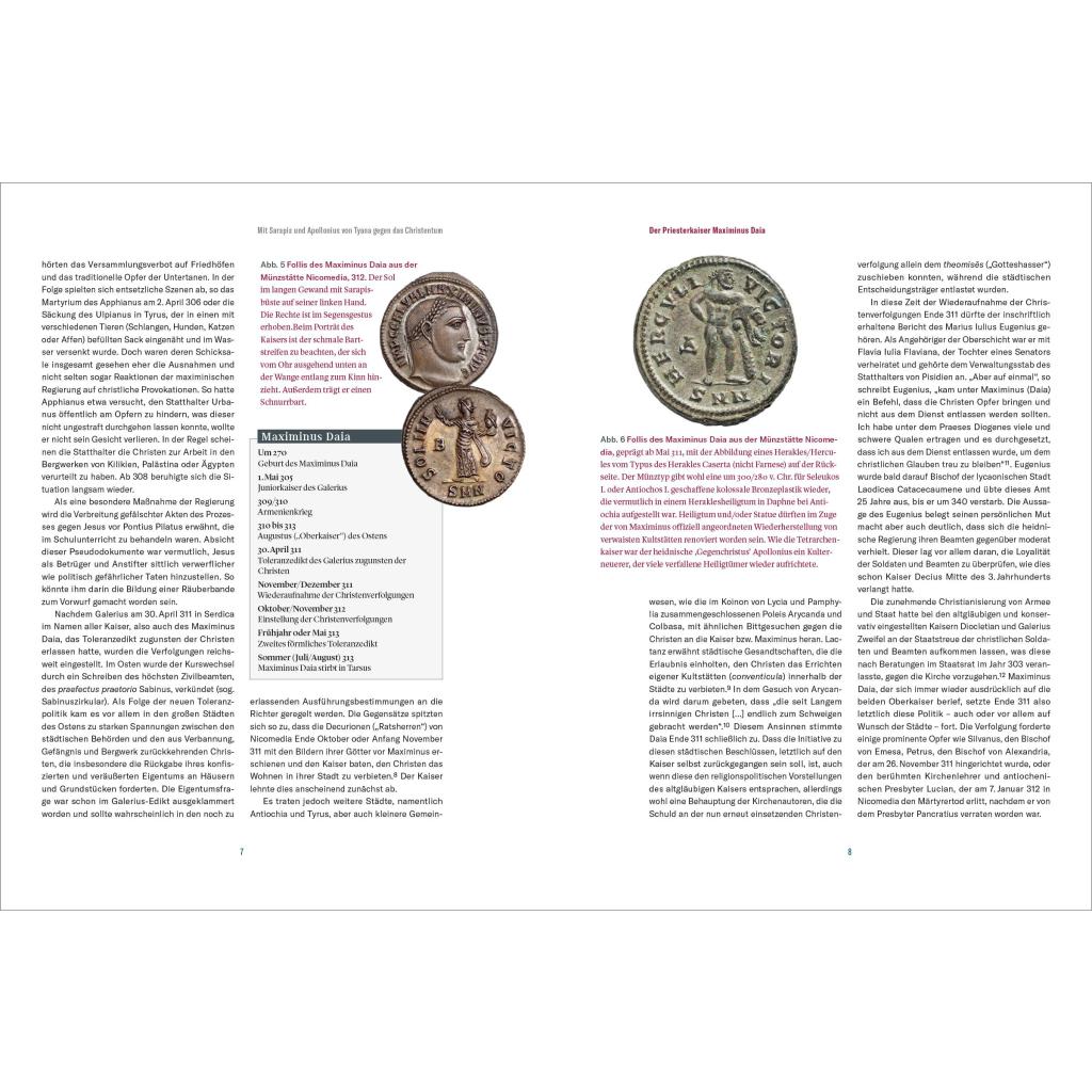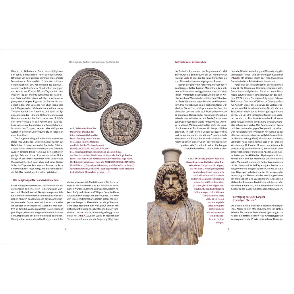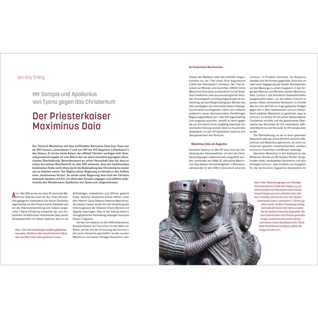 | Keyword: | Antoninus Pius; Arcadius; Augustus; Biografien Bücher; Caligula; Caracalla; Claudius; Commodus; Constantius II.; Diocletian; Elagabal; Gallienus; Gordian III.; Hadrian; Heraclius; Justinian I.; Konstantin der Große; Marc Aurel; Maximinus Daia; Nero; Philippus Arabs; Römische Kaiser; Römische Kaiserzeit; Römisches Reich; Septimius Severus; Text-Bildband; Theodosius I.; Tiberius; Titus; Traian |