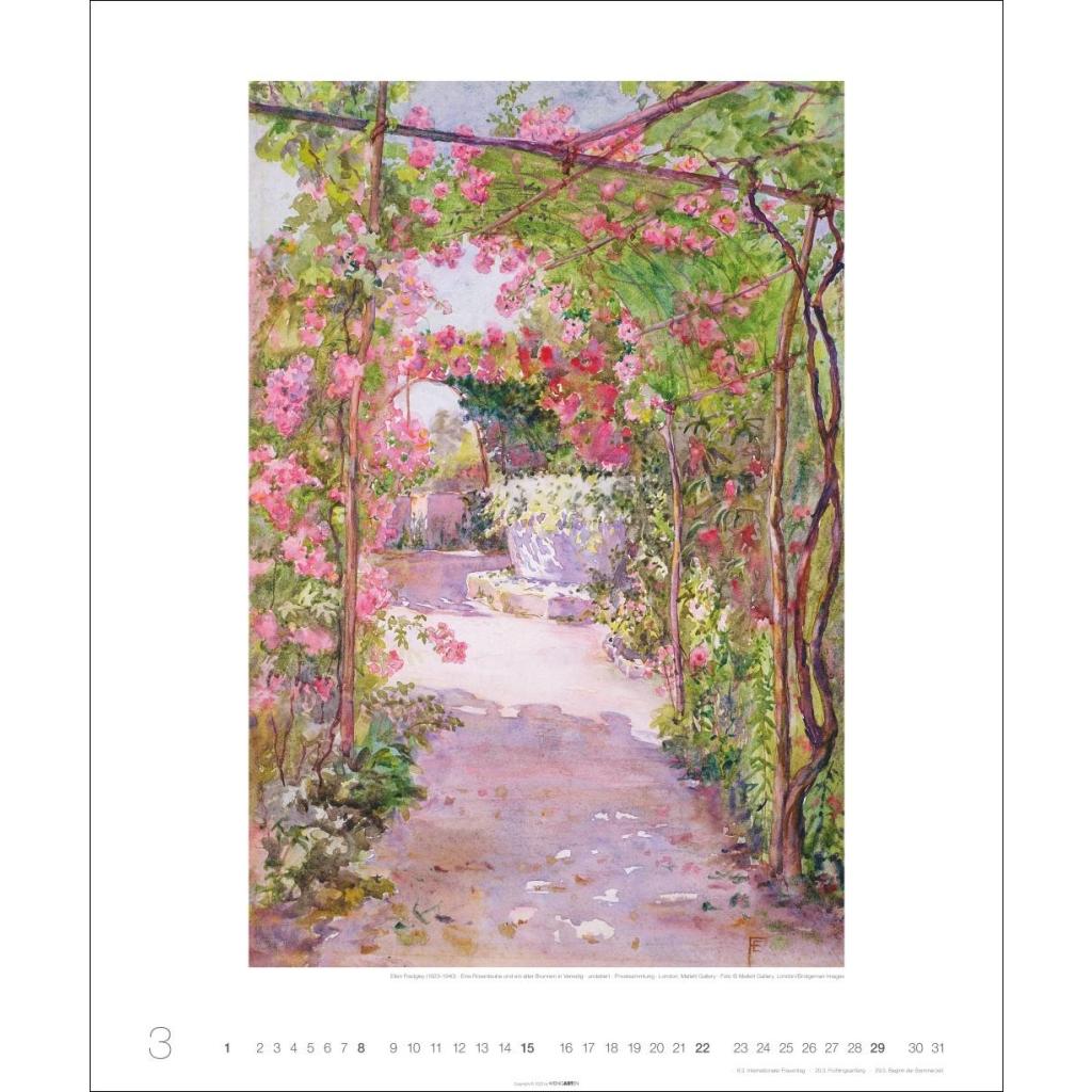 Kunstvoller Wandkalender mit zauberhaften Gemälden von Gartenidyllen. Großer Kunst-Kalender 2026.
