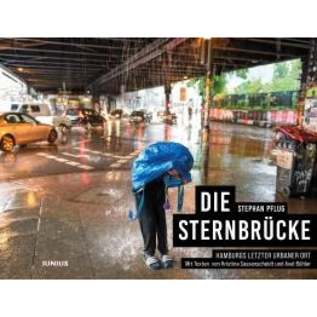 Vier Bahngleise und zwei Hauptstraßen kreuzen sich, die Wohlers Allee mündet hier ein. Die sternförmige Verkehrsführung gibt der Stahlbrücke von 1925/26 ihren Namen. Seit fast einem Jahrhundert fließt hier der Verkehr durch Hamburg: Mit S-Bahnen, Regional- und Fernzügen, mit Bussen, zu Fuß und mit dem Fahrrad passieren jeden Tag viele Tausend Menschen diesen Ort. Über die Kreuzung gelangt man von Altona nach Eimsbüttel, aus der Innenstadt in den Hamburger Westen. Die Verbindungsbahn ist eine der am meisten befahrenen Bahnstrecken Deutschlands. Laut, eng und hartem Verkehr ausgesetzt, hat sich gleichzeitig rund um die Sternbrücke ein kulturelles Biotop entwickelt - sehr geliebt, manchmal umstritten und höchst lebendig. Seit den späten 1990er Jahren fanden vor allem in den Kasematten unterhalb der Brücke Clubs, Bars und Kioske ihre Räume. Zu Beginn nur als Zwischennutzung gedacht, blieben sie viele Jahre: Waagenbau, Fundbureau, Astra Stube, Brückenkiosk, Beat Boutique, Bar 227 und das Künstlerhaus Faktor. Der Hamburger Fotograf Stephan Pflug hat diese Welt ab 2018 bis 2023 fotografiert, wohl in dem Wissen, dass er etwas dokumentiert, das es bald nicht mehr geben würde. Auf zurückgenommene und unprätentiöse Weise zeigen seine Aufnahmen die Akteur*innen und den Alltag unter der Brücke in diesen Jahren. Begleitet werden die Bilder durch Texte von Kristina Sassenscheidt und Axel Bühler, die über die denkmalgeschützte Brücke und den Protest der Anwohner*innen gegen deren geplanten Abriss schreiben.