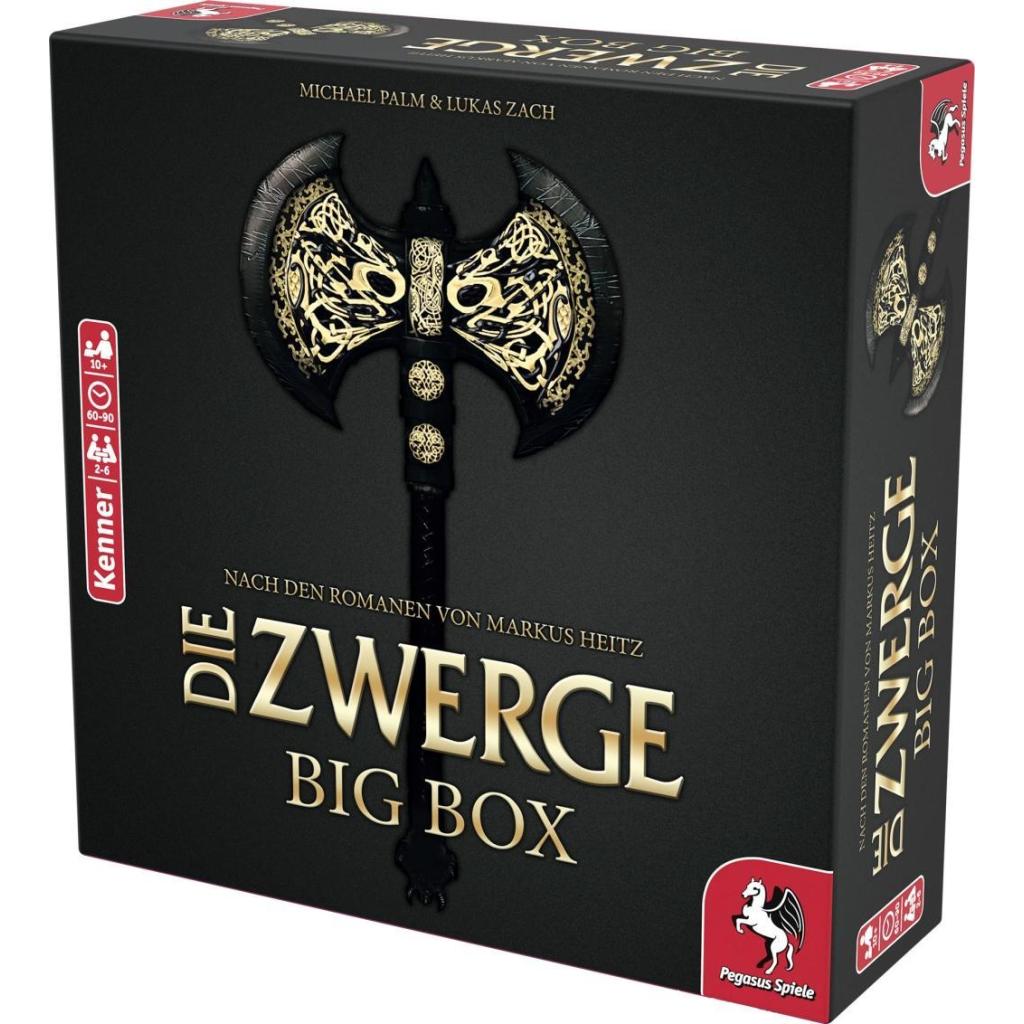 In Die Zwerge tauchen die Spieler in die Welt von Markus Heitz? gleichnamigen Bestsellerroman ein. Sie schließen sich zusammen, um gemeinsam das Geborgene Land gegen böse Orks, Trolle und Albae zu verteidigen. Dabei greift jedes Szenario die Inhalte aus einem anderen Band der fünfteiligen Romanreihe auf. So können die Spieler die komplette Saga spielerisch erleben. Jeder Spieler übernimmt die Rolle eines der Helden aus den Die Zwerge-Büchern. Dabei hat jeder Held andere Attribute und Sonderfähigkeiten. Sind die Spieler am Zug, bewegen sie sich über die Karte, führen Aufträge aus, schicken Nachrichten zum Rat oder bekämpfen die Armeen des Bösen. Die Spieler müssen eine festgelegte Anzahl an Szenario- oder Sagakarten erfolgreich erfüllen, bevor ihnen die Zeit ausgeht oder die feindlichen Armeen das Geborgene Land eingenommen haben. Die Zwerge: Big Box enthält alles, was bisher von Die Zwerge erschienen ist: - Das Grundspiel - Die Albae-Erweiterung - Die Charakter-Erweiterung - Die Saga-Erweiterung - Die Mini-Erweiterung Der Triumph der Zwerge (aus Die Zwerge - Das Duell) - Die Mini-Erweiterung Mit vereinten Kräften