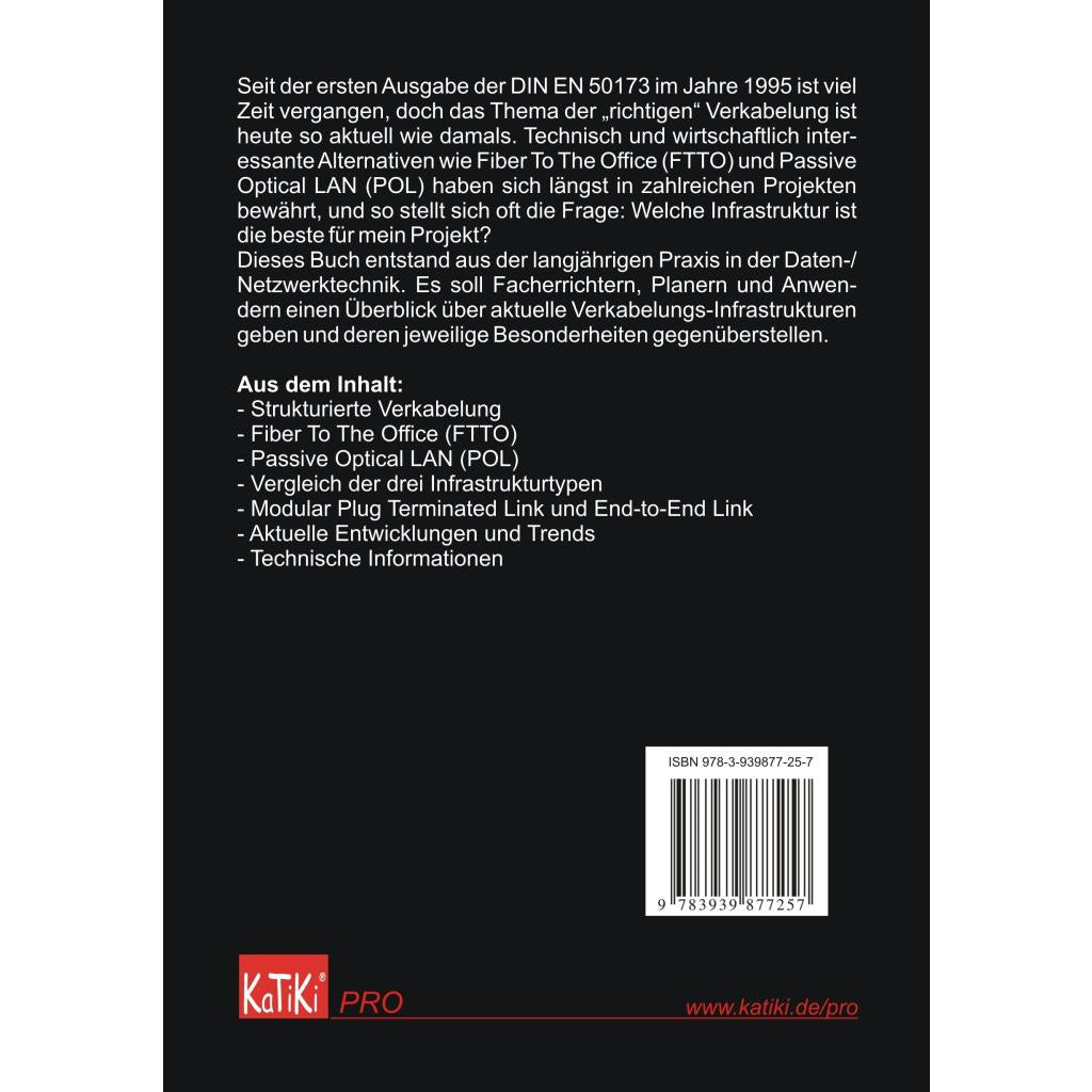 Seit der ersten Ausgabe der DIN EN 50173 im Jahre 1995 ist viel Zeit vergangen, doch das Thema der "richtigen" Verkabelung ist heute so aktuell wie damals. Technisch und wirtschaftlich interessante Alternativen wie Fiber To The Office (FTTO) und Passive Optical LAN (POL) haben sich längst in zahlreichen Projekten bewährt, und so stellt sich oft die Frage: Welche Infrastruktur ist die beste für mein Projekt? Dieses Buch entstand aus der langjährigen Praxis in der Daten-/Netzwerktechnik. Es soll Facherrichtern, Planern und Anwendern einen Überblick über aktuelle Verkabelungs-Infrastrukturen geben und deren jeweilige Besonderheiten gegenüberstellen. Aus dem Inhalt: - Strukturierte Verkabelung - Fiber To The Office (FTTO) - Passive Optical LAN (POL) - Vergleich der drei Infrastrukturtypen - Modular Plug Terminated Link und End to End Link - Aktuelle Entwicklungen und Trends - Technische Informationen
