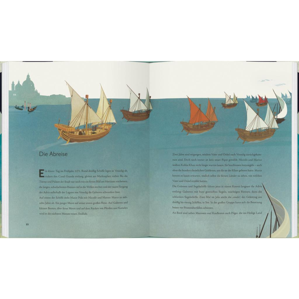 'Kaiser, Könige und Fürsten, Ritter und Bürger - und ihr alle, ihr Wissbegierigen, die ihr die Mannigfaltigkeit der Länder dieser Welt kennenlernen wollt - nehmt dieses Buch und lasst es euch vorlesen. Merkwürdiges und Wunderbares findet ihr darin ...' So beginnt eines der ganz großen Werke der Reiseliteratur: Il Milione - Die Wunder der Welt. Und wunderbare Dinge sind es in der Tat, von denen der große Reisende Marco Polo berichtet: Er besucht die Kreuzfahrerstädte Akko und Jerusalem, reist über Bagdad zum Persischen Golf und kommt schließlich an den Hof Kublai Khans. In dessen Auftrag bereist er China und Indien, bis er endlich auf abenteuerlichen Wegen reich begütert nach Venedig zurückkehrt. Die unglaublichen Erlebnisse des berühmtesten Reisenden aller Zeiten werden in diesem opulent ausgestatteten Buch farbig nacherzählt. Die atmosphärisch dichten, durch die orientalische und asiatische Kunst inspirierten Illustrationen der Künstlerin Claudia Lieb und die Fülle von Sachinformationen über die mittelalterliche Welt zwischen Venedig und Peking nehmen uns mit auf diese wunderbare Lese-Reise!