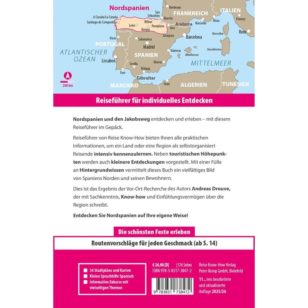 Von den Pyrenäen Navarras im Nordosten und La Rioja im Osten über das Baskenland, Kantabrien und Asturien bis hin zu Galicien im Nordwesten besticht Nordspanien mit seiner Landschaft und Kultur. Berge und der Atlantik, Weingärten und Wälder, kleine Dörfer und eine abwechslungsreiche Kulinarik zeigen die Vielseitigkeit der Region und die unzählbaren Möglichkeiten für Reisende - egal ob Entspannung, Kultur oder Action gewünscht sind. Das steckt in unserem Reiseführer Nordspanien mit Jakobsweg: - Übersichtsseiten mit Beschreibungen aller Regionen: Pyrenäen und Nord-Navarras, Baskenland, Astrurien, Kantabrien, Galiciens Norden, La Rioja, Santiago de Compostela - Eine Jahresübersicht zu Festen und Veranstaltungen - Routenvorschläge und Inspiration für einzigartige Reiseerlebnisse durch persönliche Top-Tipps des Autors - Informationen zu allen Sehenswürdigkeiten - Reisewissen von A-Z - Zauberhafte Orte entdecken - Bergkloster San Salvador de Leyre, Salinas de Añana, Monte Urgull in San Sebastián, Kap Fisterra - Tipps für Wanderungen und andere Outdoor-Aktivitäten sowie viel Wissenswertes über das Pilgern auf dem Jakobsweg - Besonders gute und typische Restaurants, interessante Shopping-Adressen, Hotspots für die Abendgestaltung - Aktuelle Empfehlungen für typisch spanische Unterkünfte in allen Preisklassen - Exkurse mit zahlreichen Hintergrundinformationen zur Geschichte und Kultur der Region Nordspanien - Tipps zu naturnahem und nachhaltigem Reisen sowie zum Reisen mit Kindern für die individuelle Urlaubsplanung - Mit Tipps für Gourmets: Nordspanische Spezialitäten und kulinarische Köstlichkeiten probieren - Eine kleine Sprachhilfe Spanisch Mit dem Reise Know-How Verlag die Welt entdecken Der Reise Know-How Verlag ist ein unabhängiger Verlag für unabhängig Reisende und eines der letzten Familienunternehmen der Reisebuchbranche. Mehr als 40 Jahre Erfahrung und das Wissen landeskundiger Autoren und Autorinnen stecken in den Büchern, Sprachführern und Landkarten des Verlags. Sie sollen Reisenden eines ermöglichen: Auf ganz eigene, individuelle Weise die Welt zu entdecken. Dieser Reiseführer wurde regional in Deutschland produziert.