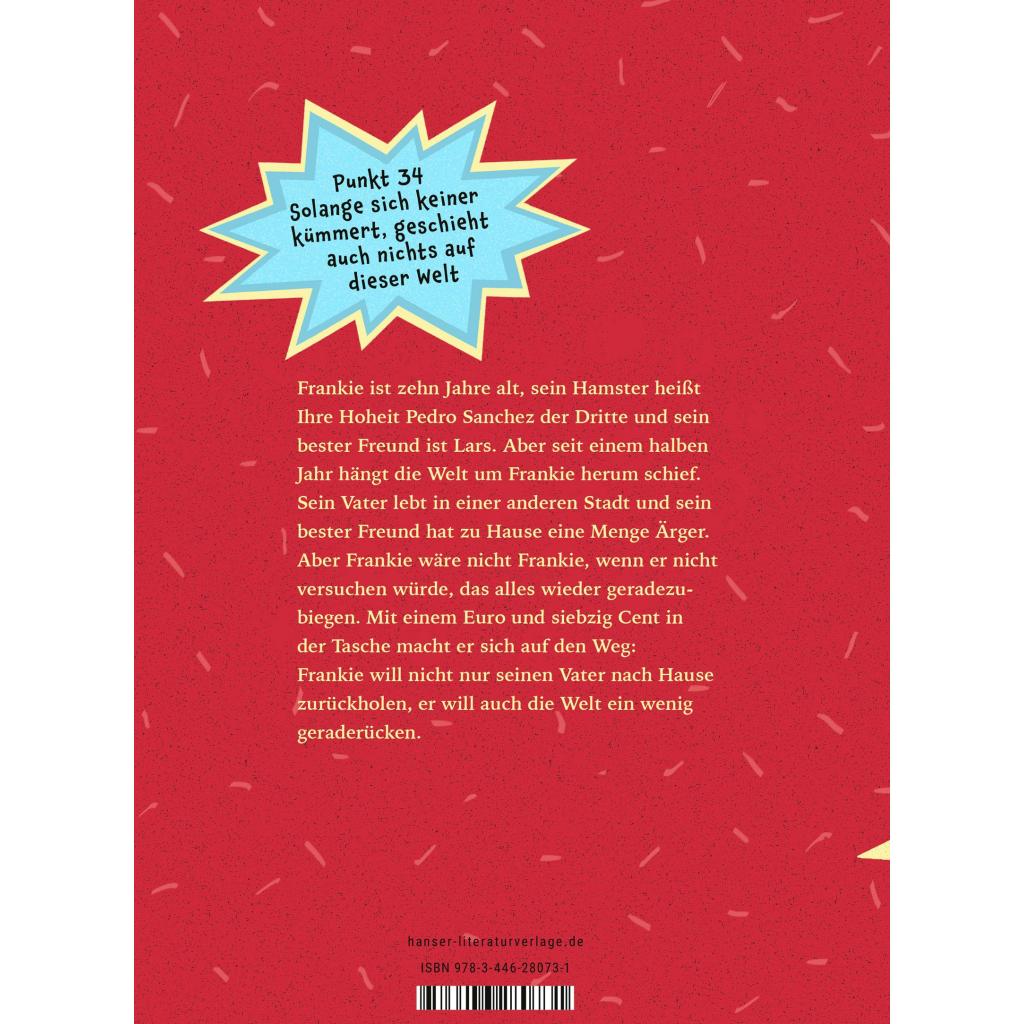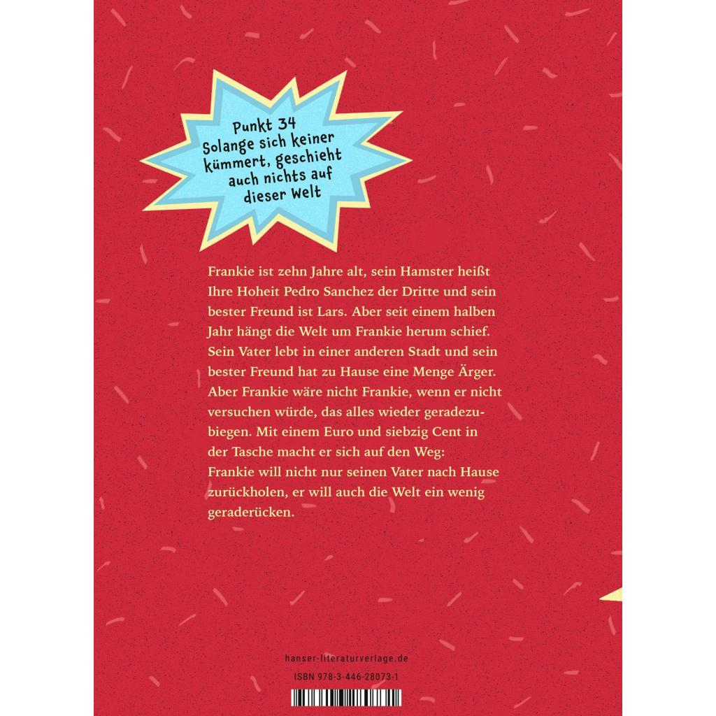 Frankie ist zehn Jahre alt, sein Hamster heißt Ihre Hoheit Pedro Sanchez der Dritte und sein bester Freund ist Lars. Aber seit einem halben Jahr hängt die Welt um Frankie herum schief. Sein Vater lebt in einer anderen Stadt und Lars hat zu Hause eine Menge Ärger. Frankie reicht es. Er macht sich kurzerhand auf den Weg von Berlin nach Venedig, um seinem Vater die Meinung zu sagen - mit nur einem Euro siebzig in der Tasche. Wie Frankie alles bewegt, um die Welt wieder gerade zu rücken, ist eine wunderbare Geschichte von Zuversicht und Mut, die Zoran Drvenkar so lakonisch-überzeugend erzählt, dass wir ihm und seinem Frankie alles glauben.