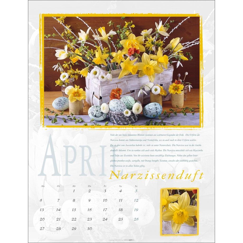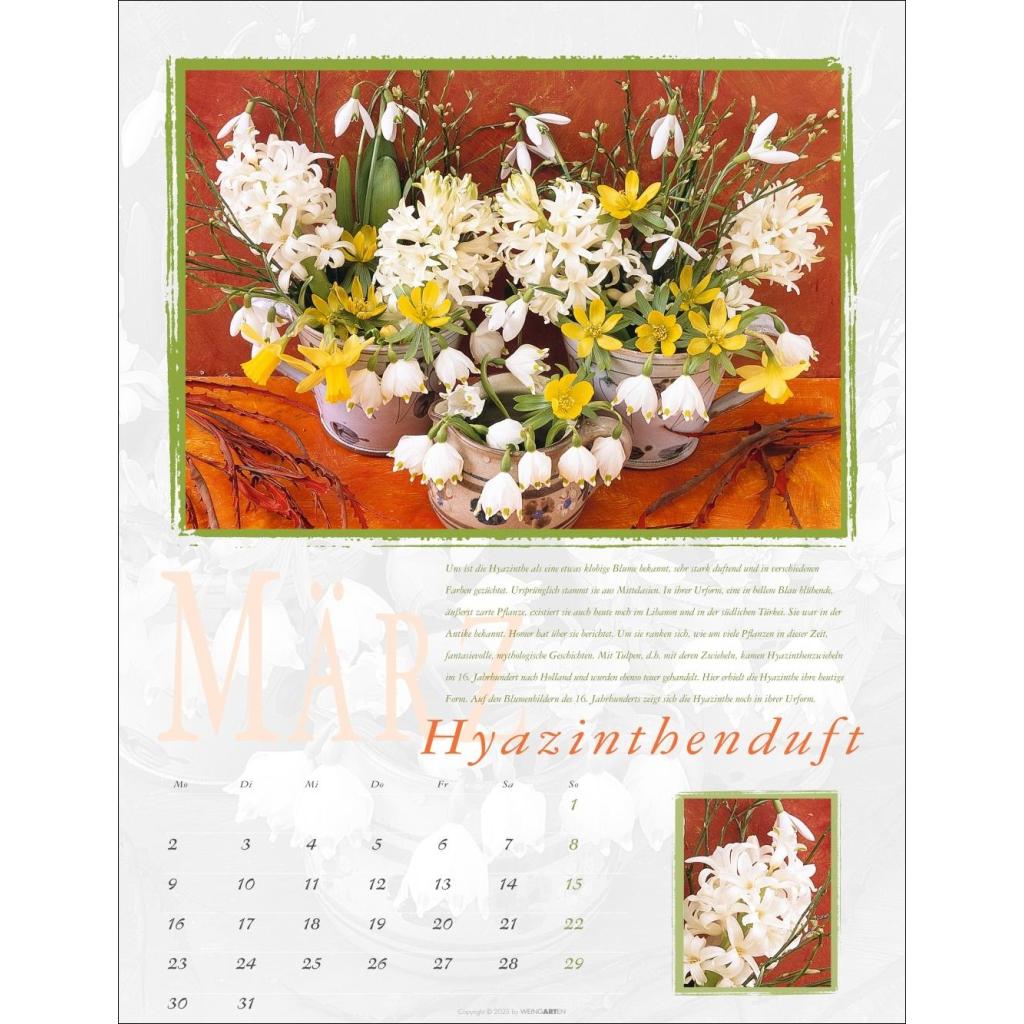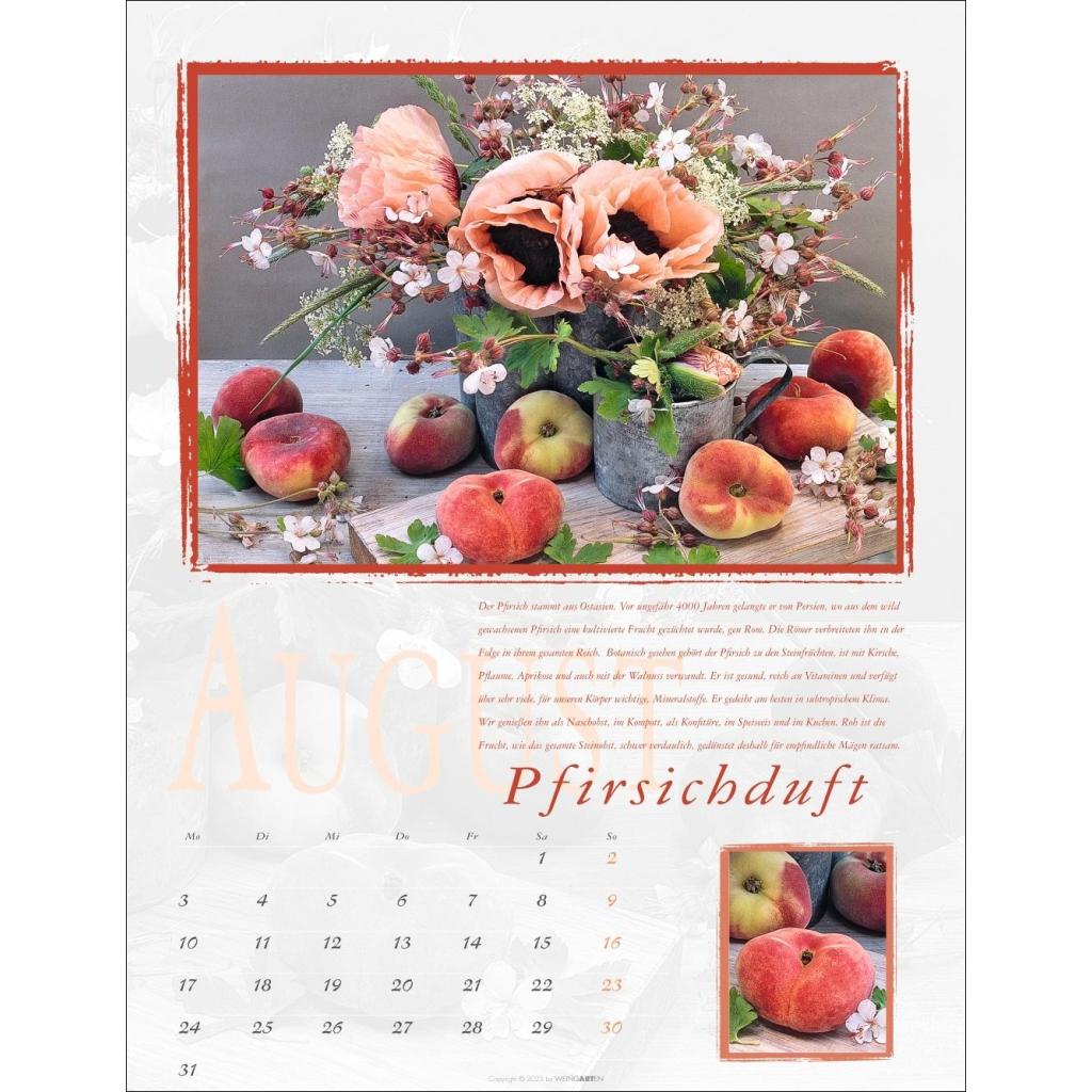 Hochwertiger Wandkalender mit zauberhaften Blumen-, Kräuter- und Früchtearrangements und wissenswerten Informationen. Besonderer Kalender mit zarten Düften. 30x39 cm