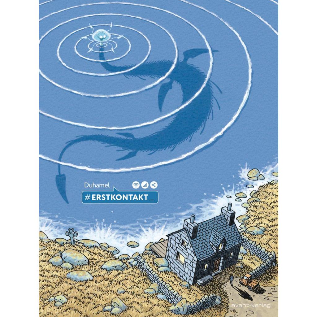 Doug, ein ehemaliger Fotograf mit großen Selbstzweifeln, lebt von der Öffentlichkeit zurückgezogen in den schottischen Highlands. Doch dann fotografiert er durch Zufall am See vor seiner Haustür ein seltsames Wesen - und teilt den Schnappschuss im sozialen Netzwerk "Twister". Mit dieser harmlosen Geste löst er eine Lawine an Ereignissen aus, deren Folgen niemand ahnen konnte. Auf einmal stürmen Journalist*innen, Umweltschützer*innen, misstrauische oder auch einfach nur neugierige Menschen in die Region, um die geheimnisvolle Kreatur zu sehen. Die Hysterie der sozialen Medien verwandelt die abgeschiedene Idylle in ein Tollhaus. "#Erstkontakt_" ist eine Geschichte über die Gefahren der modernen Welt, und wie soziale Netzwerke diese befeuern können. Mit viel Humor und Witz nimmt Duhamel sich wieder einmal eines ernsten Themas an.
