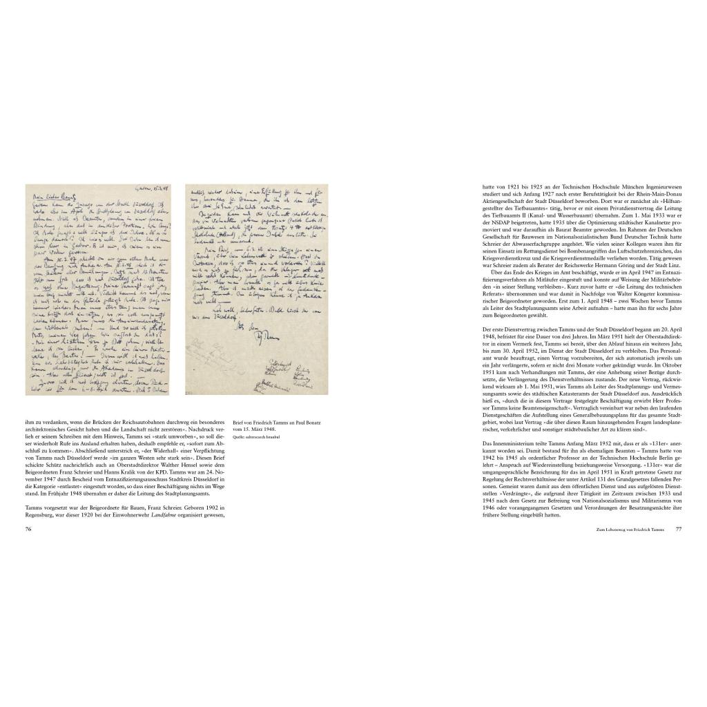 Friedrich Tamms (1904¿-¿1980) war einer der erfolgreichsten deutschen Architekten im zwanzigsten Jahrhundert. Nach dem Studium in München und Berlin kam er rasch mit dem Brückenbau für das Großvorhaben Reichsautobahn in Berührung. Wie kaum ein Zweiter prägte er mit seinen Entwürfen kleiner und großer Brücken, Tankstellen und Straßenmeistereien die Architektur des Gesamtkunstwerks Autobahn. Weitgehend unbekannt sind hingegen seine im Rahmen der Neugestaltung Berlins entstandenen Entwürfe für neue Reichsministerien und weitere Projekte. Singulär sind die in den Kriegsjahren von ihm konzipierten Flaktürme in Berlin, Hamburg und Wien. Jörn Düwel und Niels Gutschow gehen den spezifischen Merkmalen der Architektur von Tamms im Nationalsozialismus nach und beziehen Veröffentlichungen ein, in denen der Architekt sein Selbstverständnis kundtat. Drei Jahre nach Kriegsende übernahm Tamms in Düsseldorf das Stadtplanungsamt. Maßgeblich prägte er in verschiedenen Rollen den Aufbau der nordrhein-westfälischen Landeshauptstadt. Dazu gehören auch die von ihm entworfenen Rheinbrücken. Tamms gab sich in Düsseldorf Rechenschaft über sein Handeln. Düwel und Gutschow fragen nicht nur nach Kontinuitäten über den Nationalsozialismus hinaus bis in die Bundesrepublik, sondern heben den Einstellungswandel als Prozess heraus. Mühsam löste sich Tamms von vermeintlich ehernen Gewissheiten und strebte, so wie der Großteil der Profession, nach neuen 'Gesetzmäßigkeiten'. Wenngleich Friedrich Tamms hier im Mittelpunkt steht, erhellt dieses Buch en miniature mehrere Facetten von Architektur und Städtebau der jüngeren konfliktreichen und widersprüchlichen Geschichte Deutschlands.