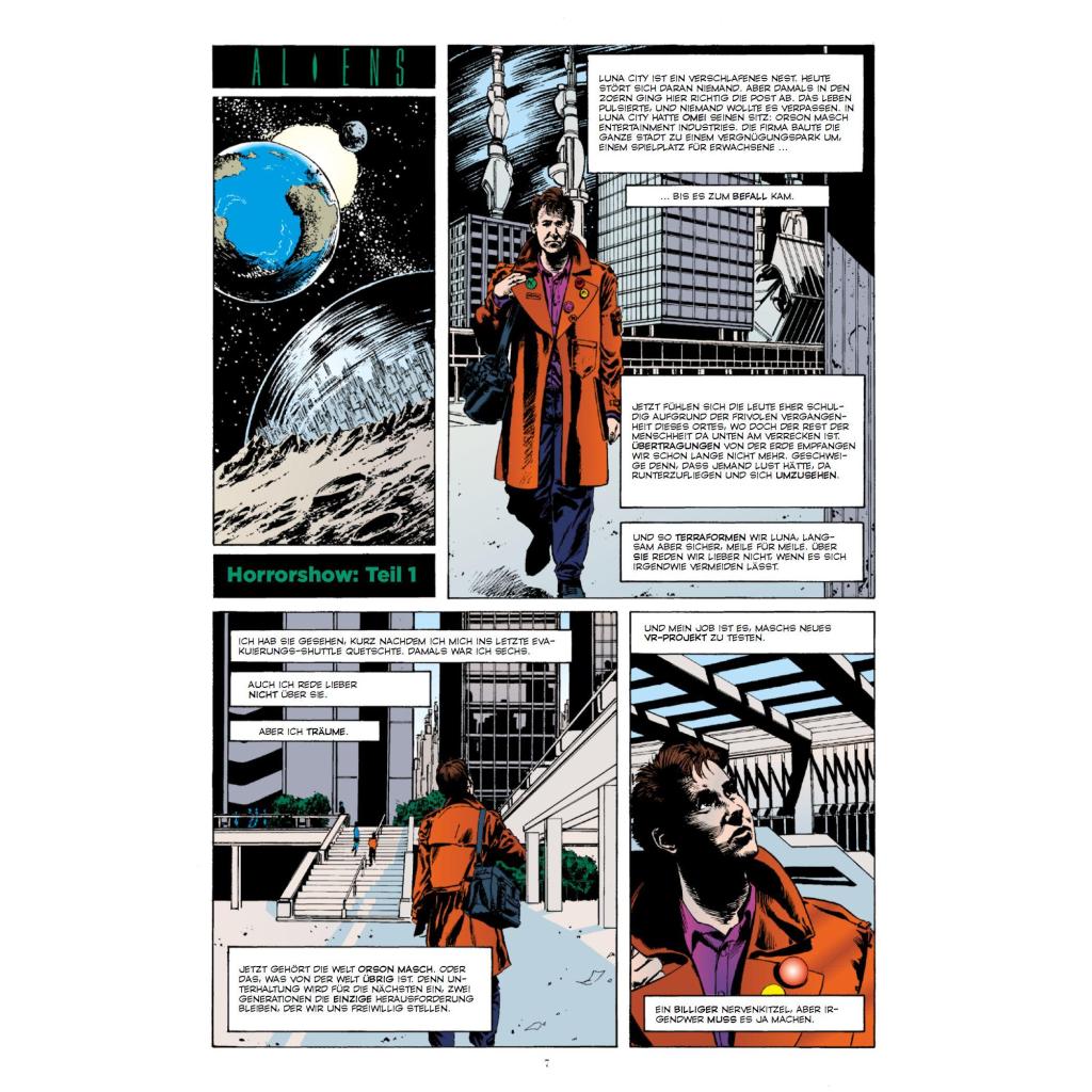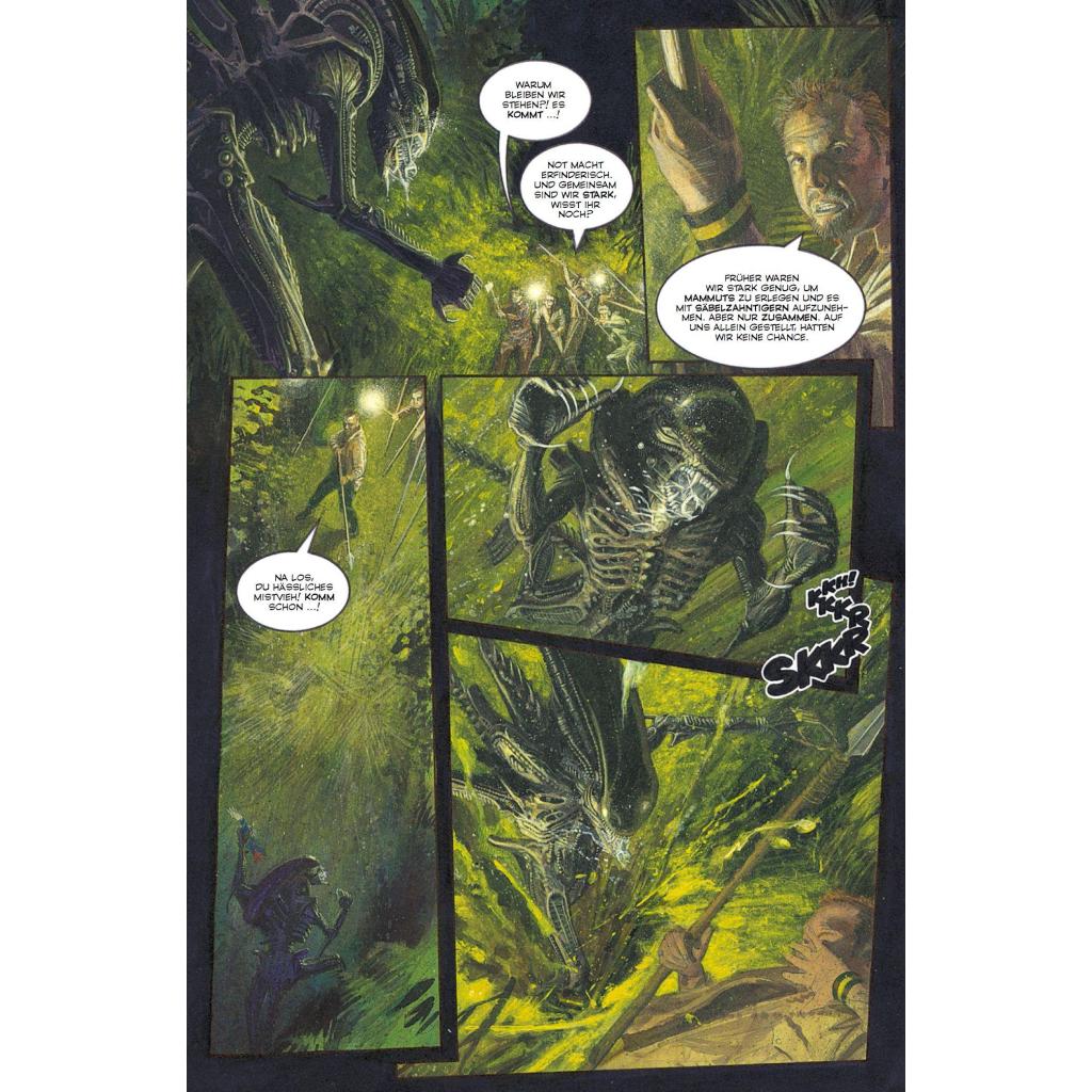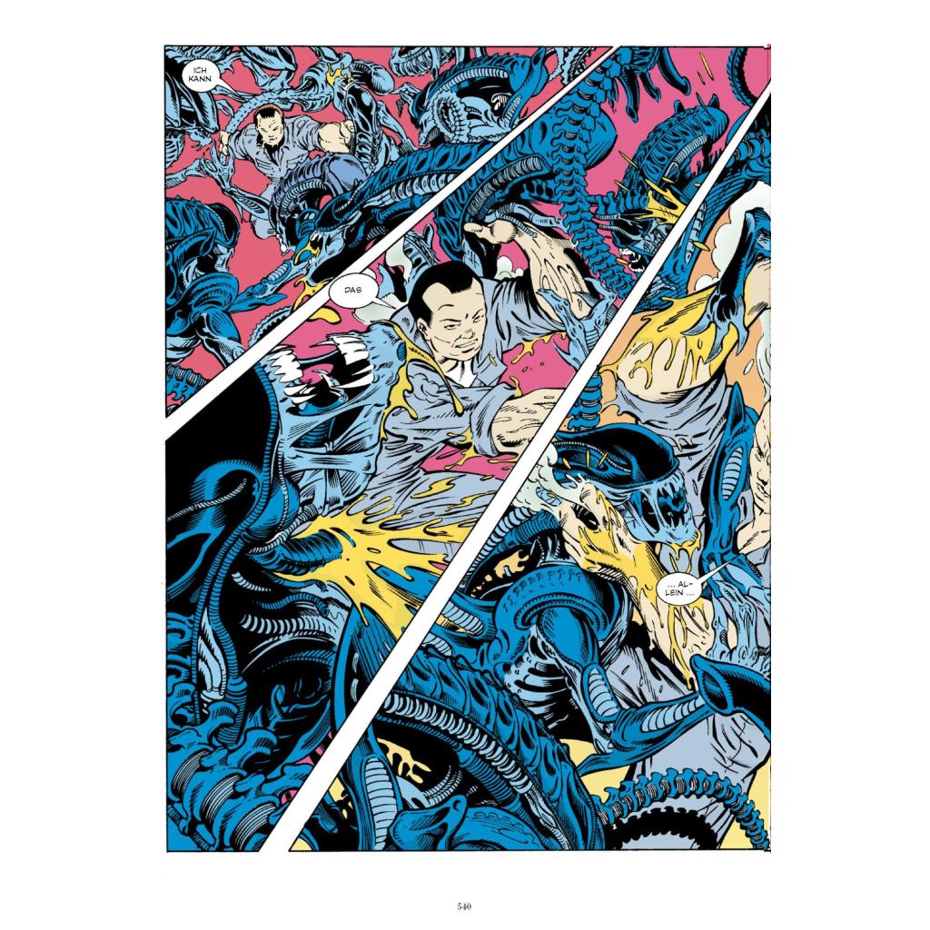 SIE KOMMEN AUS DEN WÄNDEN GEKROCHEN! Aus den dunkelsten Tiefen des Weltraums setzen die Xenomorphe ihr Werk der Zerstörung und Vermehrung der Spezies fort! Die in diesem Band gesammelten Geschichten, die ihre Wurzeln im Filmmythos haben, aber auch bisher ungesehene und weiterentwickelte Formen des unbarmherzigsten Monsters der Fiktion enthalten, bieten albtraumhafte Szenarien der Erde und des Weltraums. Die Menschheit wird erneut auf die Probe gestellt, um ihren Heimatplaneten - und vielleicht das gesamte Universum - in einem neuen Überlebenskampf zu retten. Dieser wird diesmal auch gegen einen Feind geführt, der sich noch tückischer und gefährlicher als der Xenomorph erwiesen hat: der Mensch selbst. Ein Zyklus klassischer Geschichten, von denen viele im Laufe der Jahre zu wahren Kult-Storys geworden sind, erdacht und in Szene gesetzt von einigen der größten Namen der internationalen Comic-Welt der Vergangenheit und Gegenwart, und präsentiert in einer ungekürzten und chronologischen Ausgabe, die man auf keinen Fall verpassen sollte. ENTHÄLT: ALIENS: ROGUE 1-4, ALIENS: LABYRINTH 1-4, ALIENS: COLONIAL MARINES 1-10, ALIENS: SALVATION, ALIENS: MUSIC OF THE SPEARS 1-4, ALIENS: STRONGHOLD 1-4 und Material aus DARK HORSE COMICS 3-5, 11-13 und 15-19; PREVIEWS (1993) 1-12; PREVIEWS (1994) 1, ALIENS MAGAZINE (1992) 9-20. Leseempfehlung an 16 Jahren!