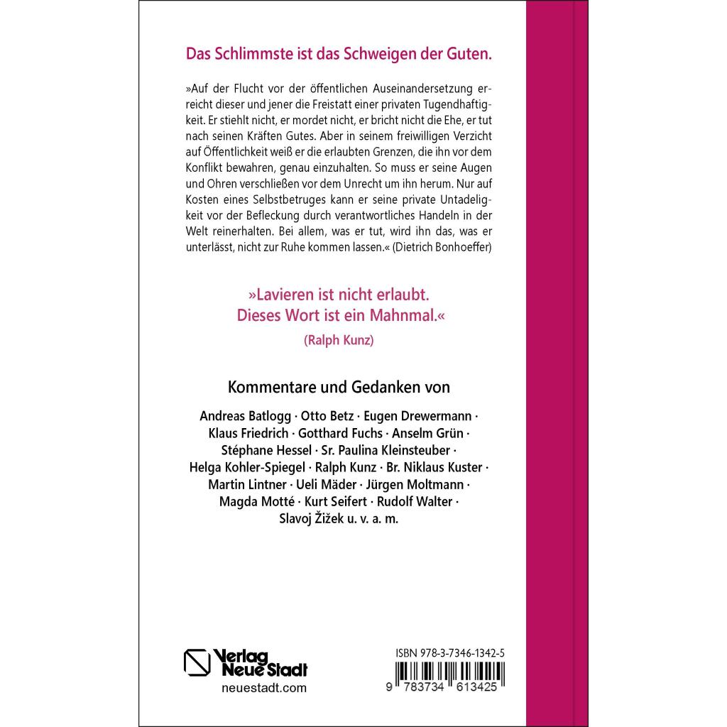 Das Schlimmste ist das Schweigen der Guten! Bedenkenswerte Reflexionen und Anstöße zu Bonhoeffers Worten mit 'Weckruf-Qualität': 'Auf der Flucht vor der öffentlichen Auseinandersetzung erreicht dieser und jener die Freistatt einer privaten Tugendhaftigkeit. Er stiehlt nicht, er mordet nicht, er bricht nicht die Ehe, er tut nach seinen Kräften Gutes. Aber in seinem freiwilligen Verzicht auf Öffentlichkeit weiß er die erlaubten Grenzen, die ihn vor dem Konflikt bewahren, genau einzuhalten. So muss er seine Augen und Ohren verschließen vor dem Unrecht um ihn herum. Nur auf Kosten eines Selbstbetrugs kann er seine private Untadeligkeit vor der Befleckung durch verantwortliches Handeln in der Welt reinerhalten. Bei allem, was er tut, wird ihn das, was er unterlässt, nicht zur Ruhe kommen lassen ...' (Dietrich Bonhoeffer) 'Der Stachel sitzt.' (Rudolf Walter) Was Dietrich Bonhoeffer schreibt, hat auch heute nichts von seiner Brisanz verloren. Viele Menschen spüren: Wir können, dürfen nicht schweigen angesichts von Entwicklungen, die verunsichern, oft auch Angst machen. Zugleich merken wir, wie schwierig eine gemeinsame Vergewisserung dessen ist, was unser Leben und Zusammenleben tragen soll. Die Beiträge dieses Lesebuchs loten unterschiedliche Aspekte aus. Impulse in unübersichtlicher Zeit, in der einfache Antworten versagen und die Komplexität dennoch (auch ganz persönlich) bewältigt werden will. Mit Beiträgen von: Andreas Batlogg SJ, Otto Betz, Eugen Drewermann, Gotthard Fuchs, Anselm Grün, Stéphane Hessel, Helga Kohler-Spiegel, Ralph Kunz, Br. Niklaus Kuster, Martin Lintner, Ueli Mäder, Jürgen Moltmann, Rudolf Walter, Slavoj iek u. v. a. m.
