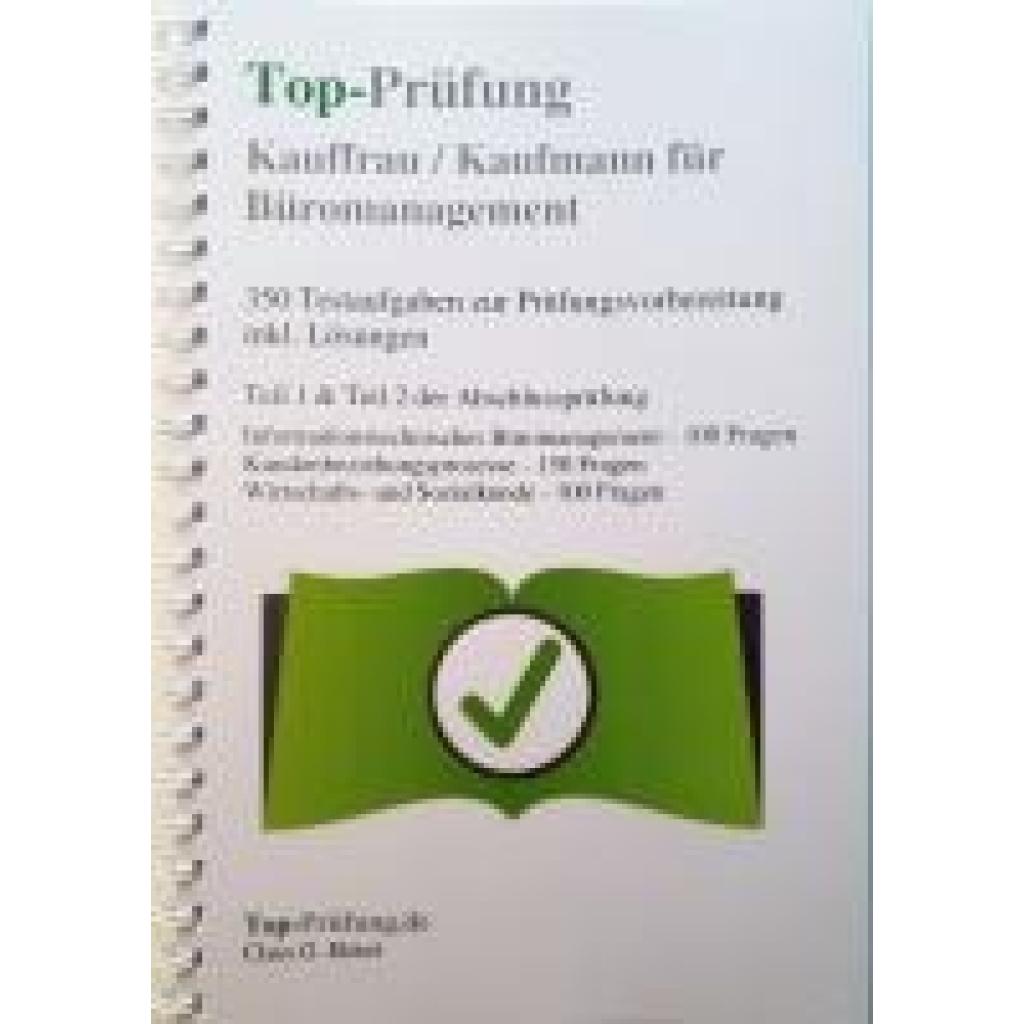 Top Prüfung Kauffrau/-mann für Büromanagement mit praktischer Ringbindung dient zur Vorbereitung auf die IHK Abschlußprüfung . Die Fragen sind - wie bei der schriftlichen Prüfung - in programmierter und in offener Form gestellt. Sie können sich mit diesem Buch gezielt und effektiv auf mögliche Fragen vorbereiten. Inhalt: I. Informationstechnisches Büromanagement II. Kundenbeziehungsprozesse III. Wirtschafts- und Sozialkunde Kurz und Knapp: Alle Testfragen zur schriftlichen IHK Prüfung sind inkl. Lösungen. Alle Prüfungsthemen inkl. Wirtschafts- und Sozialkunde werden abgedeckt. Kein unnötiger Ballast, ideal für eine gezielte und effektive Prüfungsvorbereitung.