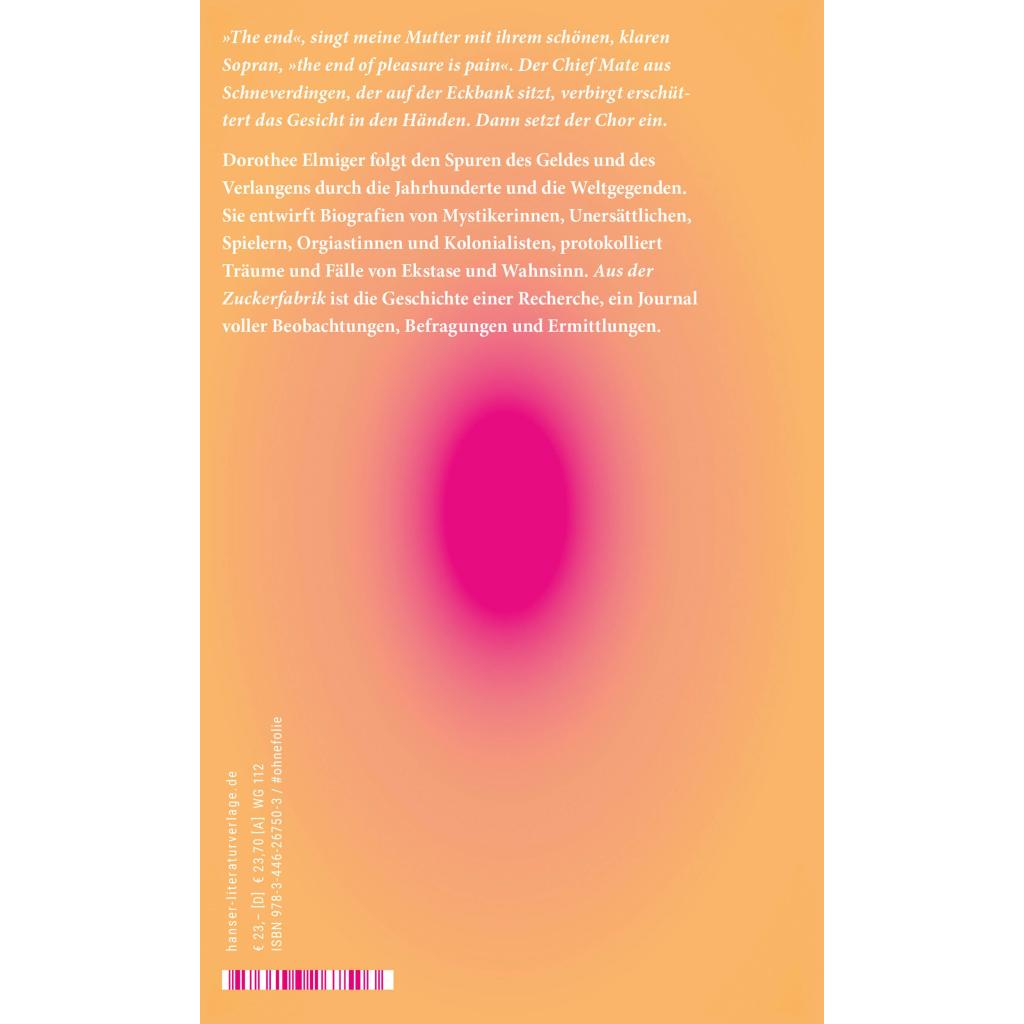 Sollten die Zusammenhänge dieser Welt einmal aufgelöst sein, man wäre froh, das Buch "Aus der Zuckerfabrik" von Dorothee Elmiger zu finden, um zu verstehen, was in der Vergangenheit vor sich ging. 'My skills never end' steht auf dem T-Shirt eines Arbeiters, der gerade seinen Lohn ausbezahlt bekommt. Am Strand einer karibischen Insel steht der erste Lottomillionär der Schweiz und blickt aufs Meer hinaus. Nachts drängen sich Ziegen am Bett der Autorin. Dorothee Elmiger folgt den Spuren des Geldes und des Verlangens durch die Jahrhunderte und die Weltgegenden. Sie entwirft Biographien von Mystikerinnen, Unersättlichen, Spielern, Orgiastinnen und Kolonialisten, protokolliert Träume und Fälle von Ekstase und Wahnsinn. Aus der Zuckerfabrik ist die Geschichte einer Recherche, ein Journal voller Beobachtungen, Befragungen und Ermittlungen. Ein Text, der den Blick öffnet für die Komplexität dieser Welt.