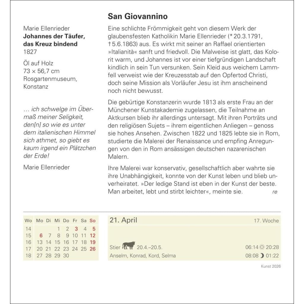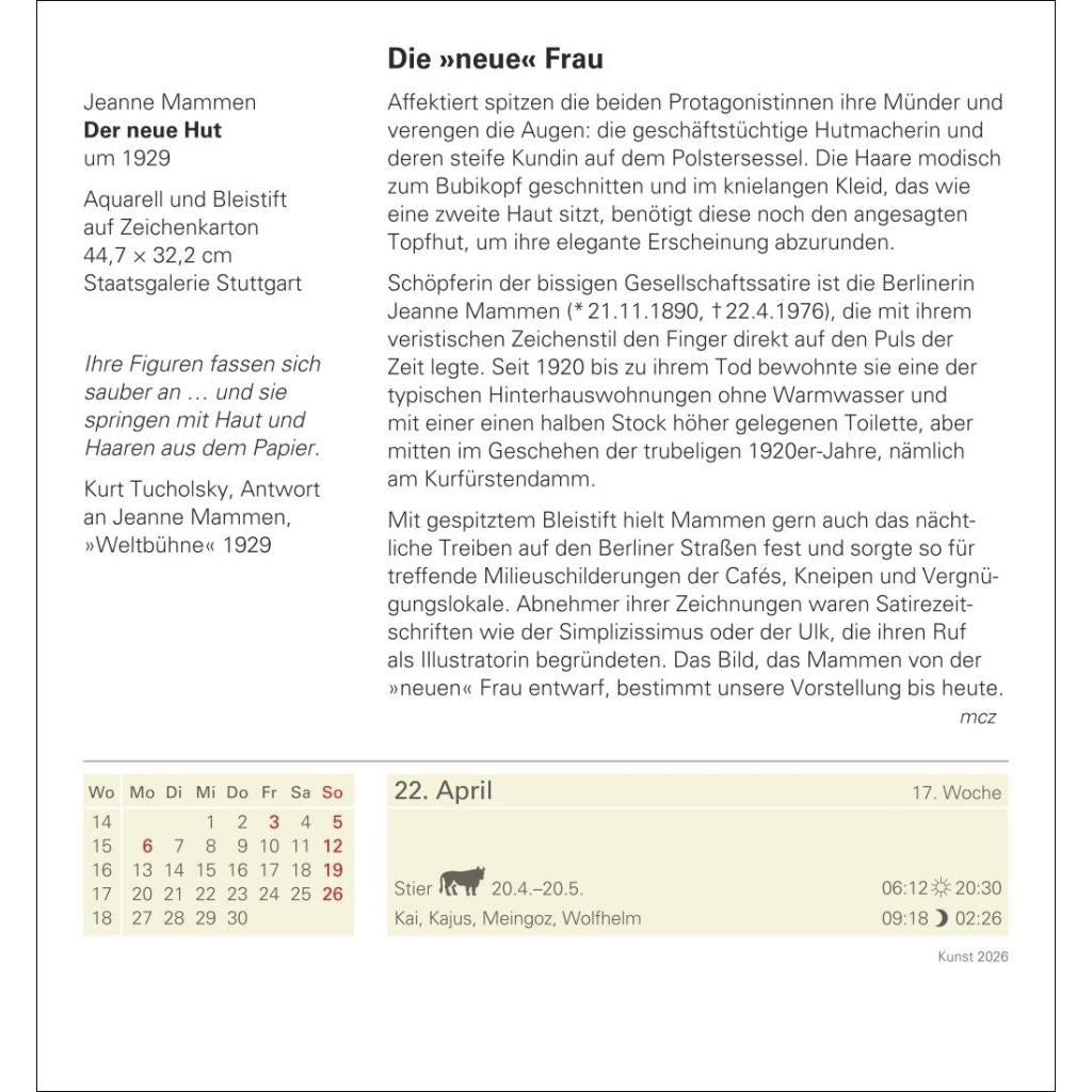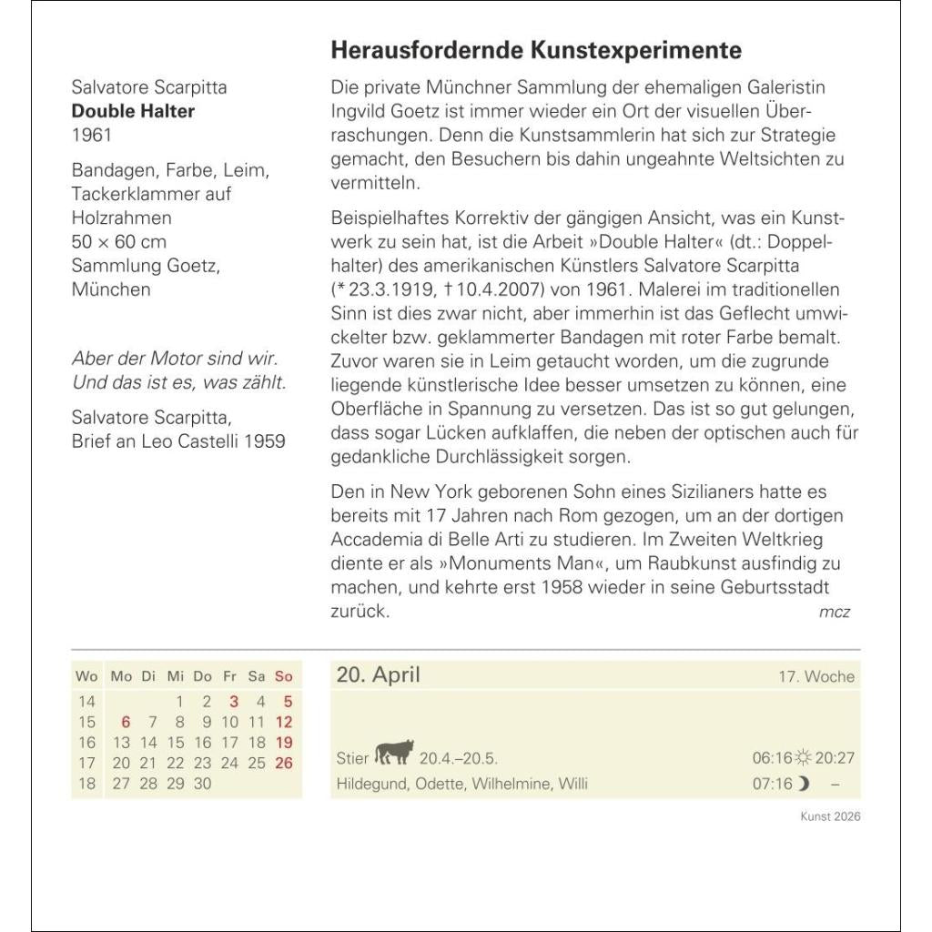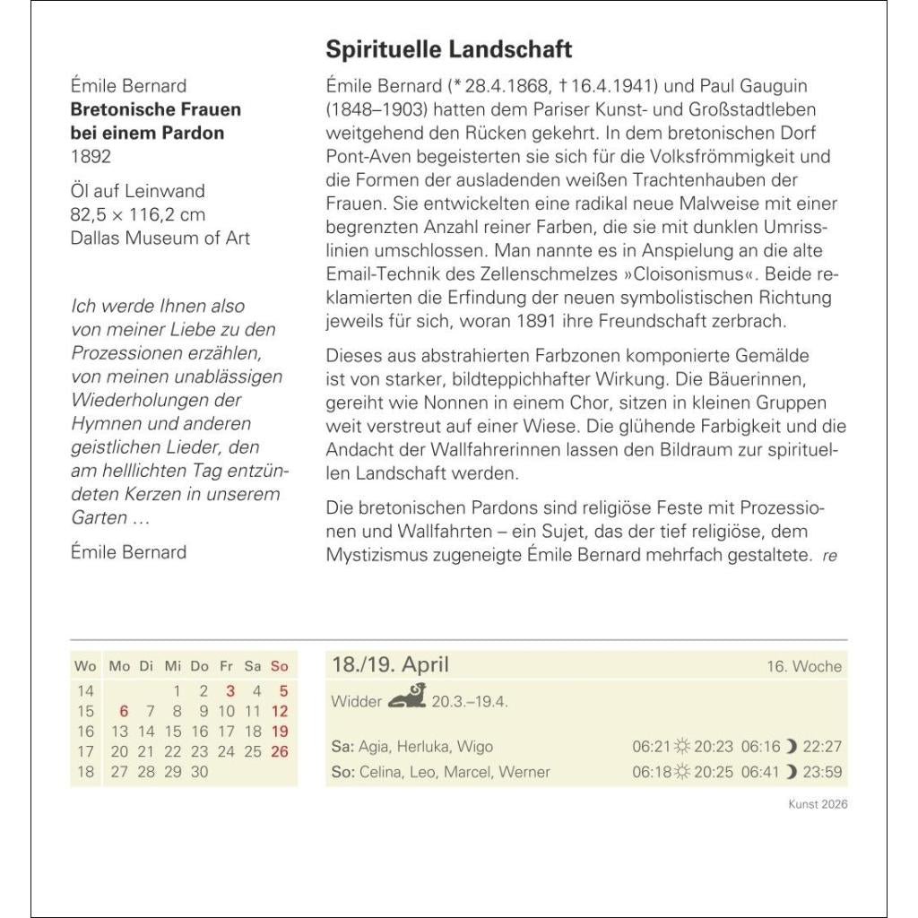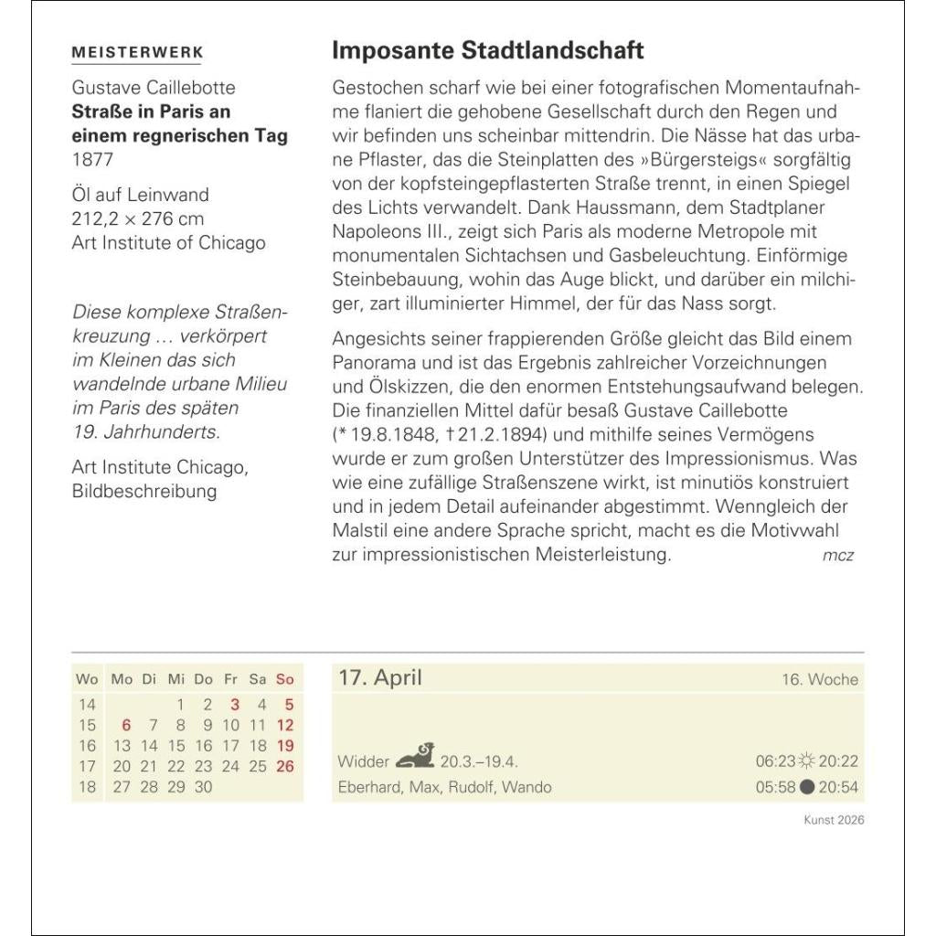 Kunstvoller Tageskalender 2026 zum Abreißen. Kultur-Kalender mit hochkarätigen Kunstwerken aus Galerien und Museen aller Welt