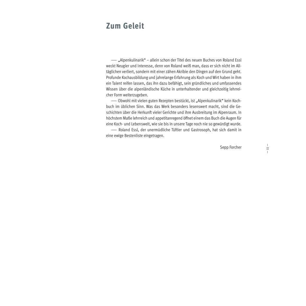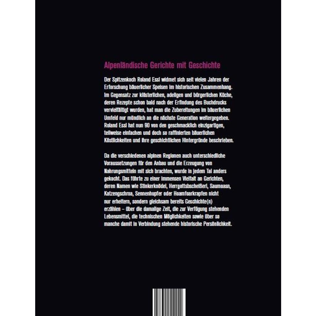 Alpenländische Gerichte mit Geschichte Wer Roland Essl kennt, weiß, dass der Spitzenkoch ein besonderes Faible für die besonderen Rezepte der alpinen Küche hat. Essl widmet sich seit vielen Jahren der Erforschung der bäuerlichen Speisen im historischen Zusammenhang. Solche Rezepte sind nicht einfach zu finden. Im Gegensatz zur klösterlichen, adeligen und bürgerlichen Küche, deren Rezepte schon bald nach der Erfindung des Buchdrucks vervielfältigt wurden, hat man die Rezepte im bäuerlichen Umfeld noch lange meist nur mündlich an die nächste Generation weitergegeben. Und in jedem Tal wurde anders gekocht, weil die verschiedenen alpinen Regionen auch unterschiedliche Voraussetzungen für den Anbau und die Erzeugung von Nahrungsmitteln mit sich brachten. Das führte aber umgekehrt zu einer immensen Vielfalt an Gerichten, deren Namen wie etwa Stinkerknödel, Herrgottsbscheisserl, Saumoasn, Katzengschroa, Sennenhupfer oder Hoamfoarkrapfen nicht nur erheitern, sondern gleichsam bereits Geschichte(n) erzählen - über die damalige Zeit, die zur Verfügung stehenden Lebensmittel und technischen Möglichkeiten sowie über so manche damit in Verbindung stehende historische Persönlichkeit wie Anna von Österreich, Josef Wenzel Radetzky, Giuseppe Cipriani, Georg Lahner, Ignatz Mautner von Markhof, Martin Luther oder auch Karl den Großen. "Was das Werk besonders lesenswert macht, sind die Geschichten über die Herkunft vieler Gerichte und ihre Ausbreitung im Alpenraum. In höchstem Maße lehrreich und appetitanregend öffnet einem das Buch die Augen für eine Koch- und Lebenswelt, wie sie bis in unsere Tage noch nie so gewürdigt wurde. - Roland Essl, der unermüdliche Tüftler und Gastrosoph, hat sich damit in eine ewige Bestenliste eingetragen." Sepp Forcher Ausgezeichnet mit dem Deutschen Kochbuchpreis 2021, Bronze!