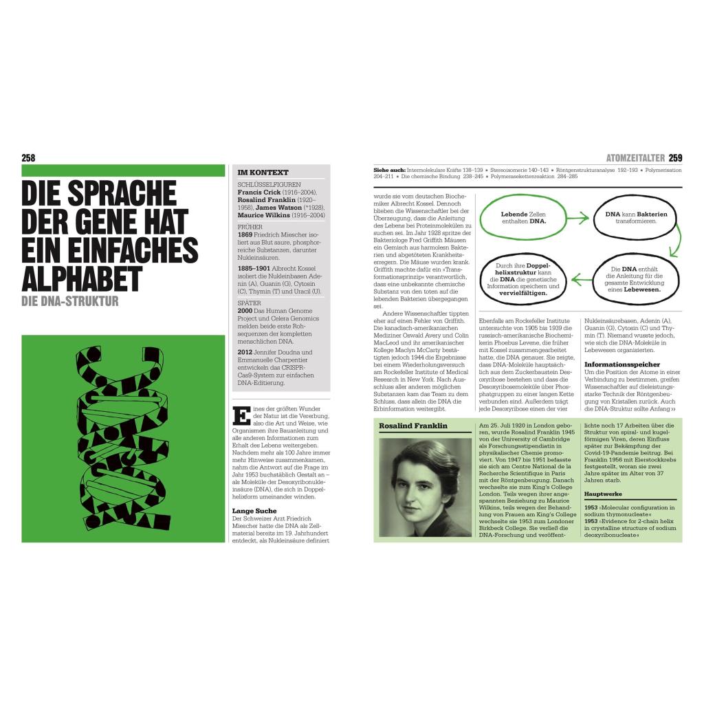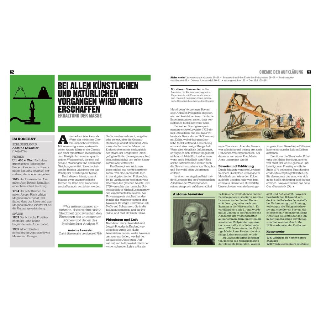 | Keyword: | Chemie; Chemiker; Chemie Grundlagen; Big ideas; Geschichte der Chemie; Sauerstoff; Sa¿uren und Basen; Wasserstoff; Periodensystem; Alchemie; Praktische Chemie; Isotope; Kohlenstoff, Polymerisation; Polymere; Atome; feste Ko¿rper; Elemente; Reaktionen; Radioaktivität; Elektronen; Elektrochemie; Edelgase; Mol; Genom-Editierung; Impfstofftechnologien; Erdöl; chemische Bindung; Big ideas |