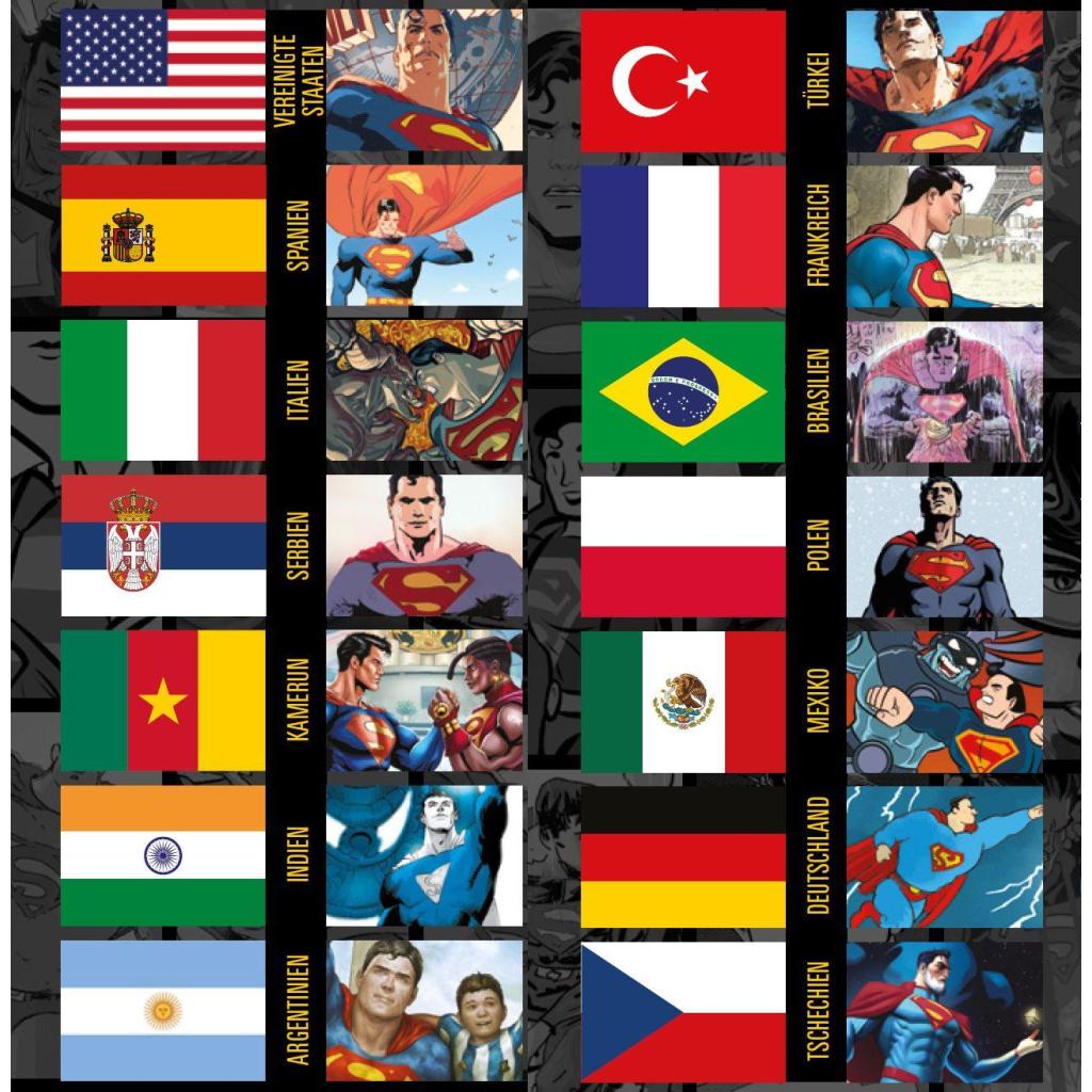 SUPERMAN IN ALLER WELT Das Erwachen eines mythischen Winterwesens in Polen oder alter Götter in Mexiko, ein Trip in die Hölle im italienischen Florenz oder Hai-Alarm in der Stadt der Liebe Paris ... was für Normalsterbliche Grund zur Stornierung aller Reisepläne wäre, ist für Superman, den Mann aus Stahl, gerade mal ein spannender Tagesausflug! Der legendäre Held verbreitet in vielfältigen Storys der besten Künstler aus 14 Ländern wie Kamerun, Serbien, Indien und den USA seine Botschaft von Hoffnung und Verständigung. Ein wahrer Superband, der alle Facetten des kryptonischen Helden in Geschichten hervorhebt, die so unterschiedlich und besonders sind wie die Länder, aus denen sie stammen! Die deutsche Story stammt von Flix (Spirou in Berlin). In seinem einzigartigen Stil erzählt er eine nostalgische und charmante Geschichte aus Supermans Vergangenheit, in der der Mann aus Stahl die Machenschaften eines Bösewichts im Nachkriegsdeutschland vereitelt. Weitere Geschichten kommen von internationalen Spitzenkünstlern, darunter Dan Jurgens und Lee Weeks, Jorge Jiménez, Rana Daggubati und Sid Kotian, Stevan Subi¿, Sylvain Runberg, Marcial Toledano Vargas und viele mehr! ENTHÄLT: SUPERMAN: THE WORLD