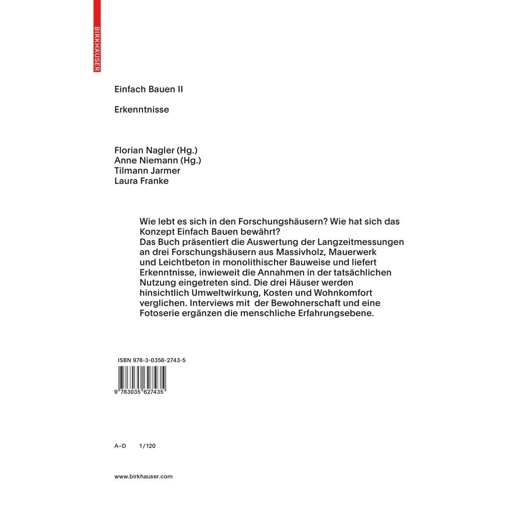 | Keyword: | Baumaterial; Dämmbeton; Einfach bauen 2; Energieeffizienz; Infra-lightweight concrete; Klimaschutz; Konstruktion; Low Tech; Massivholzbau; Wohnen; Wohnhaus; Ziegelbau; brick building; building materials; climate protection; construction; energy efficiency; housing; low-tech; timber work |