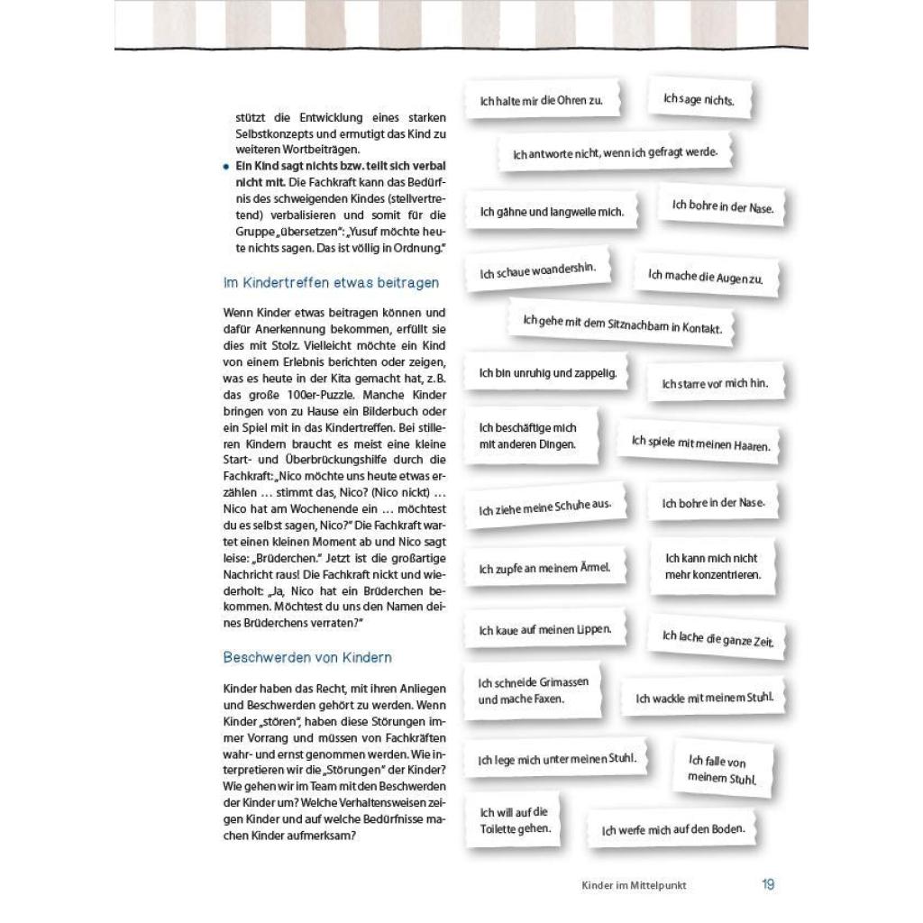 | Keyword: | Elternarbeit; Elternarbeit Kita; Inklusion Kindergarten; Inklusion Kita; Kinderschutz; Kindertreffen; Kindeswohl; Mikrotransition; Morgenkreis; Partizipation Kindergarten; Partizipation Kita |